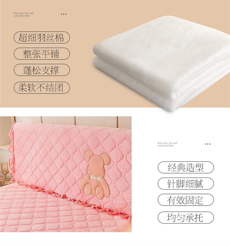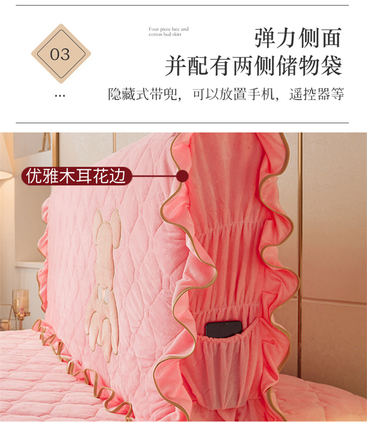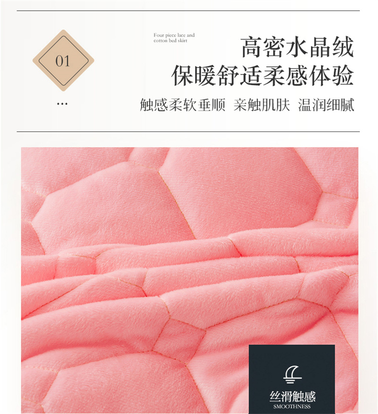 (总)屹成家纺2025新款水晶绒夹棉绗缝蕾丝床裙三件套(塞纳河畔)床裙单件起售价不低于105元,大红,豆沙,翡翠绿,粉玉,橄榄绿,蔚蓝,银灰