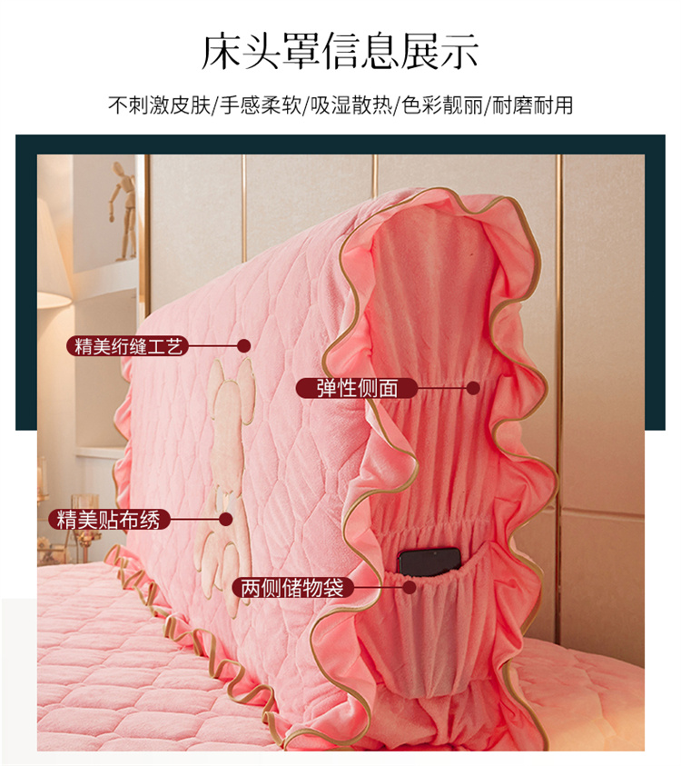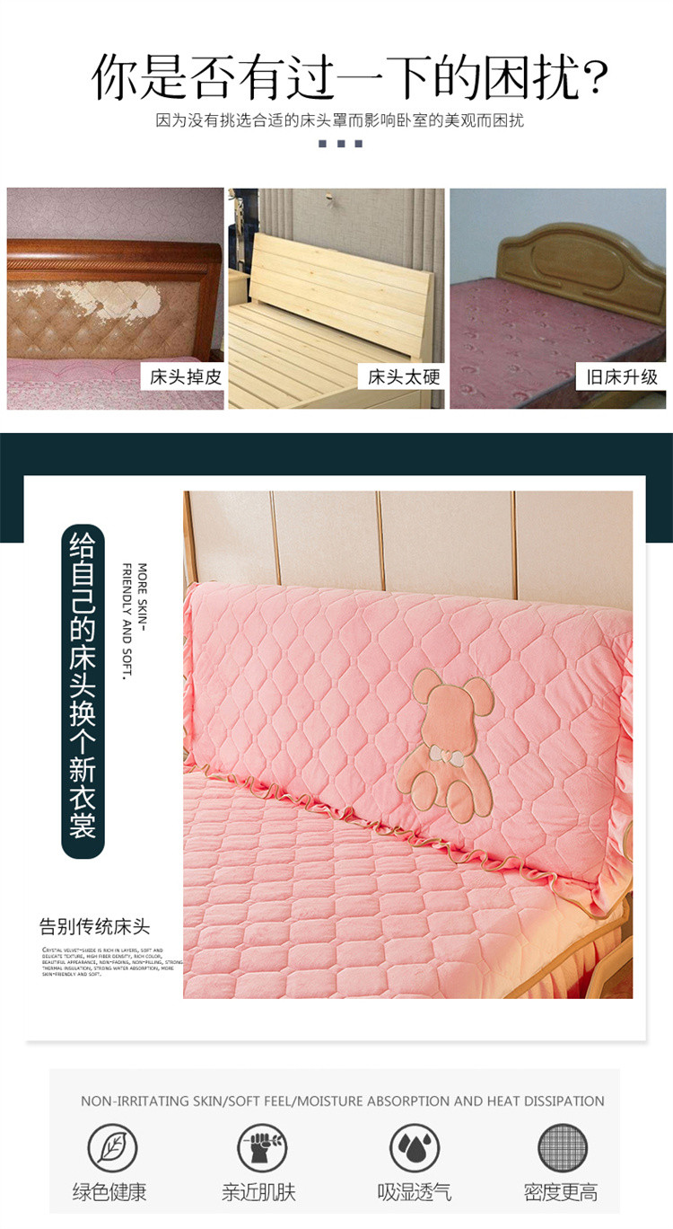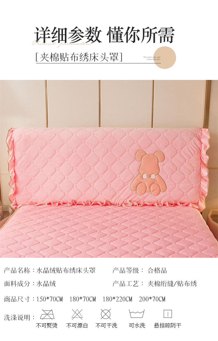 商品名称:屹成家纺 2024新款水晶绒床头罩-小熊款 粉玉