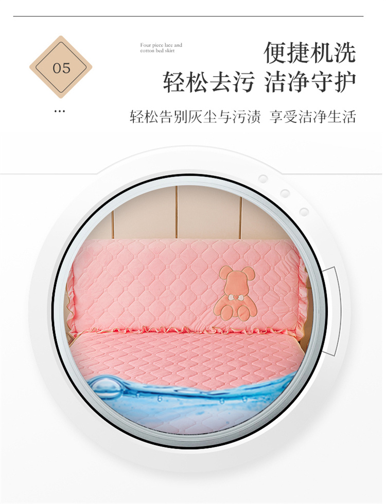 (总)屹成 2024新款水洗棉蕾丝四季款床笠床裙单品套件-床裙三件套,粉玉,豆沙,粉红,大红,橄榄绿,卡其,玫红,浅紫,水绿,天蓝,银灰