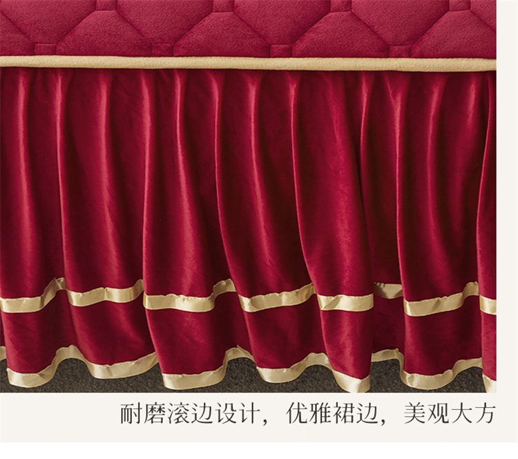 (总)屹成家纺2025新款水晶绒夹棉绗缝蕾丝床裙三件套(塞纳河畔)床裙单件起售价不低于105元,大红,豆沙,翡翠绿,粉玉,橄榄绿,蔚蓝,银灰