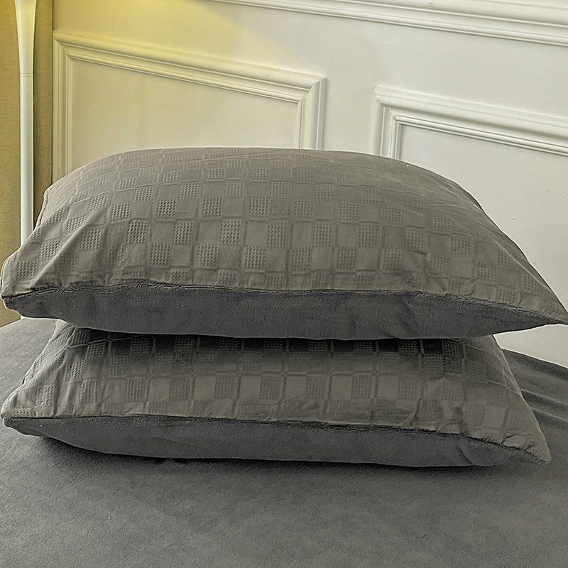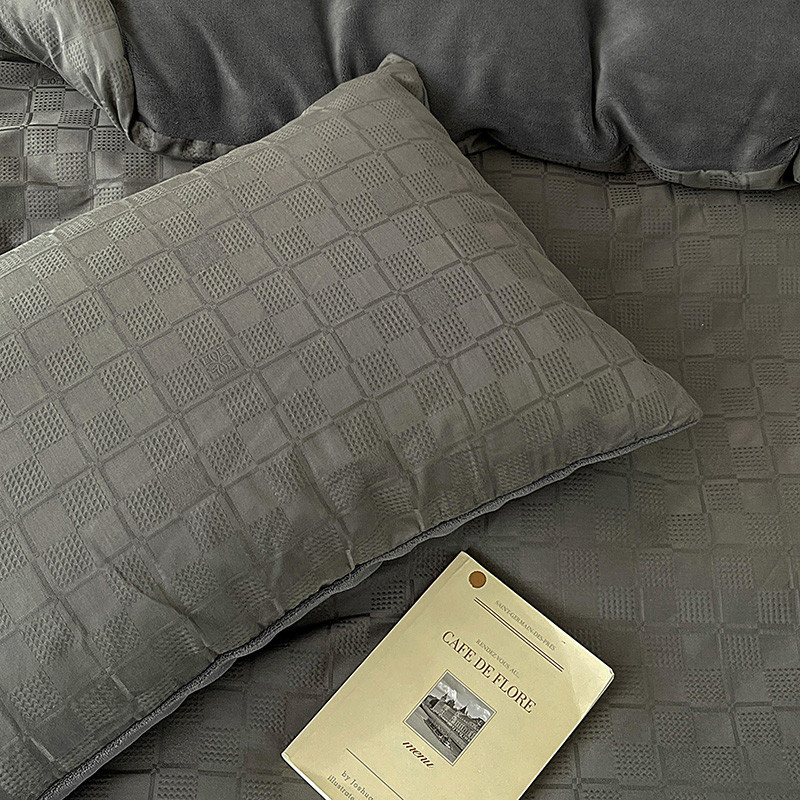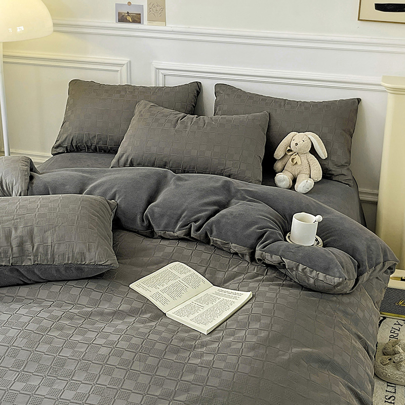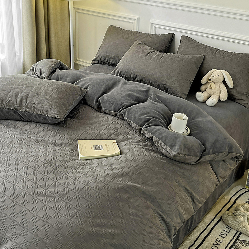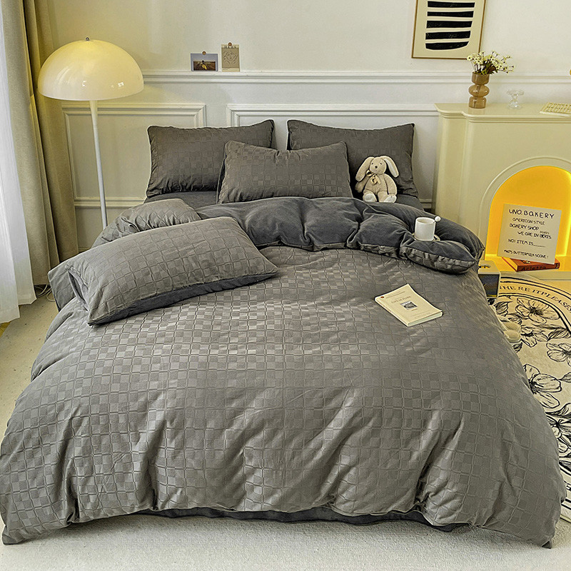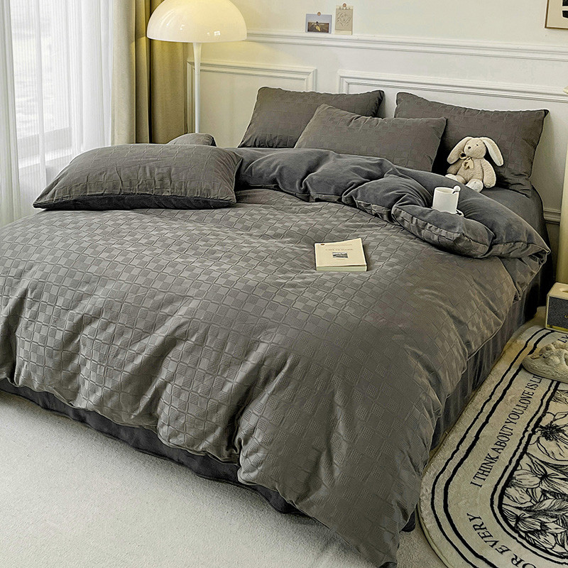 商品名称:金丝鸟 2022全棉华夫格提花加牛奶绒四件套 苏珊格灰