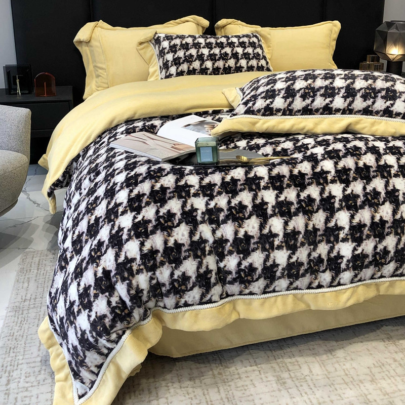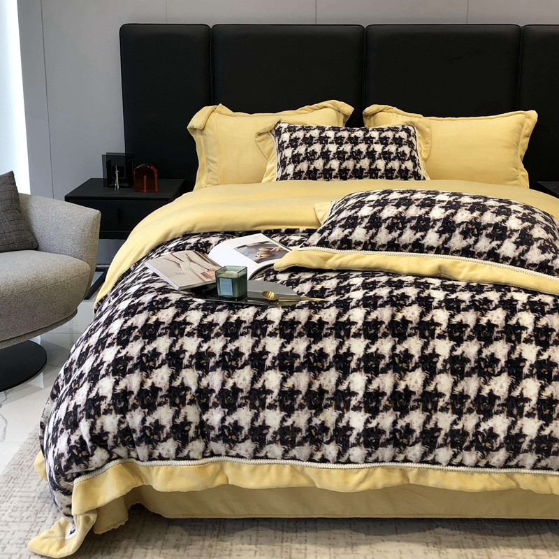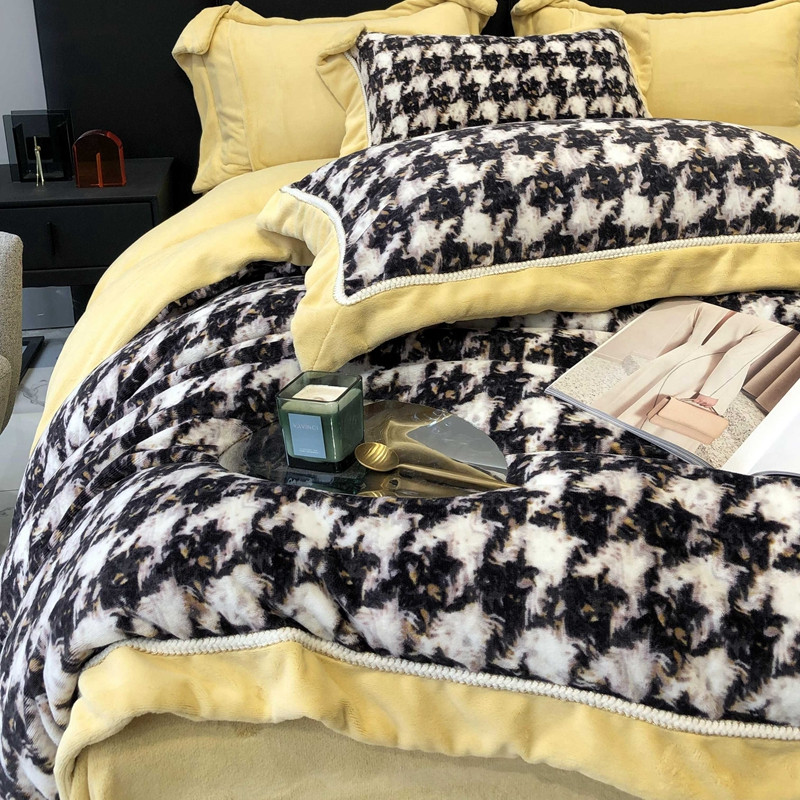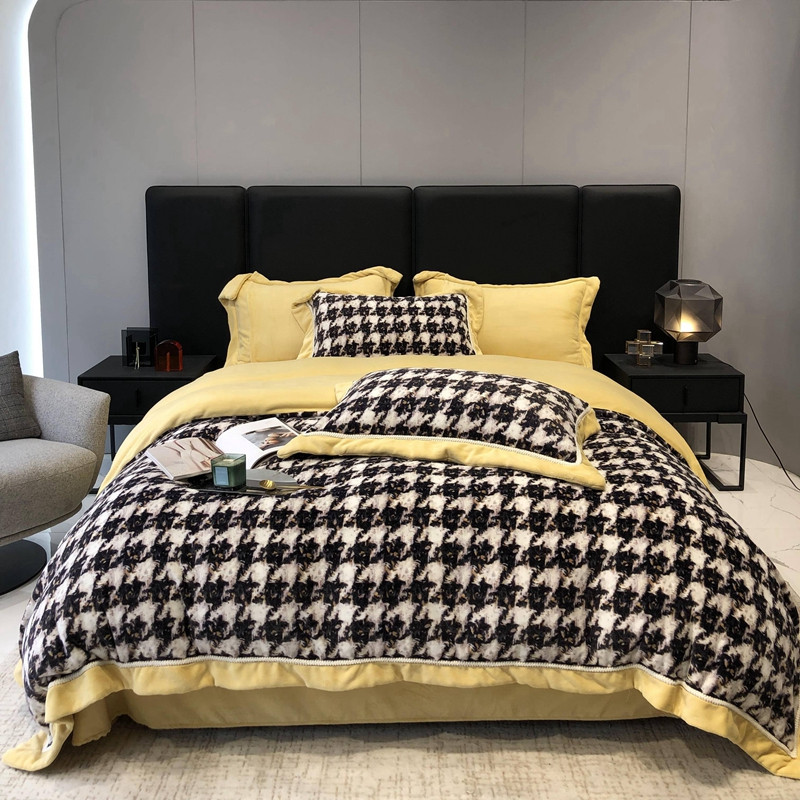 商品名称:太古汇 2022新款牛奶绒印花四件套-托特系列 托特-黄2
