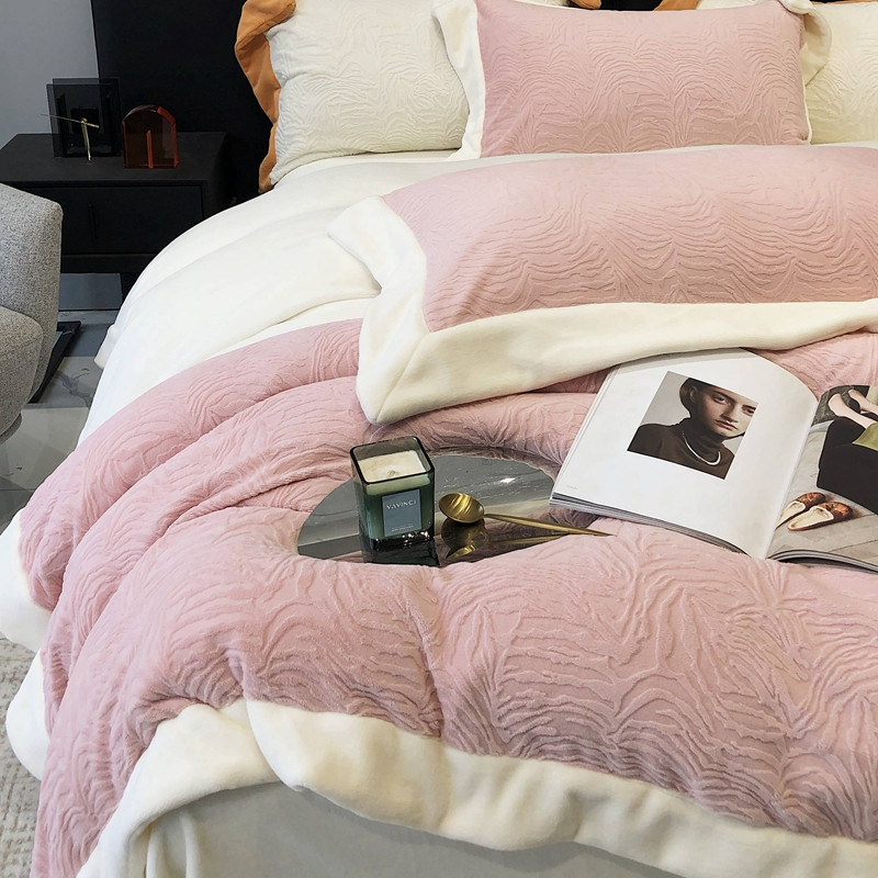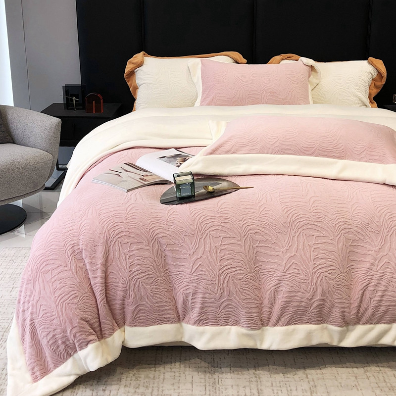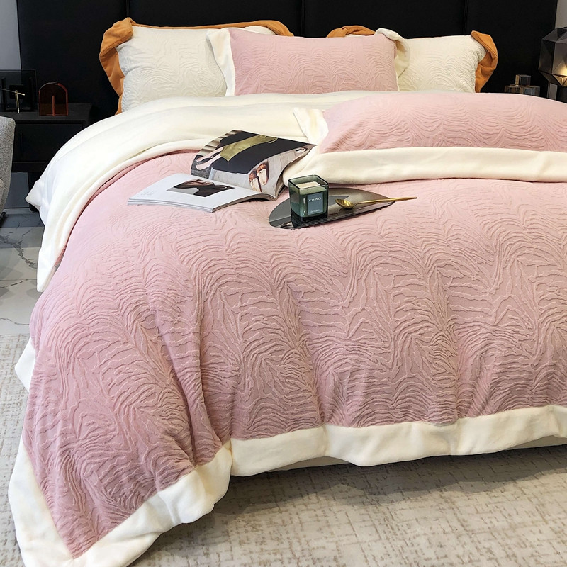 太古汇 2022新款雕花牛奶绒斑马纹双拼系列四件套 斑马纹-粉