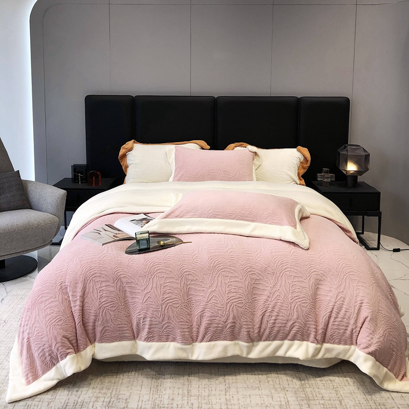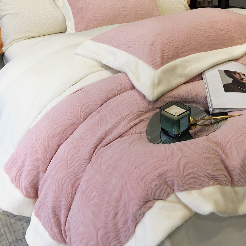 商品名称:太古汇 2022新款雕花牛奶绒斑马纹双拼系列四件套 斑马纹-粉