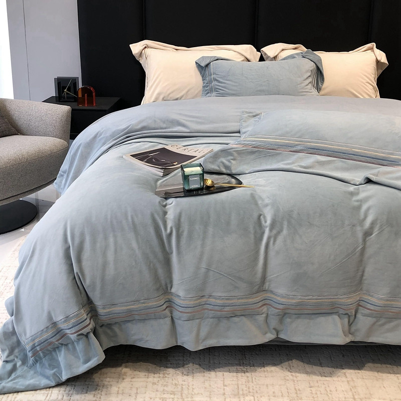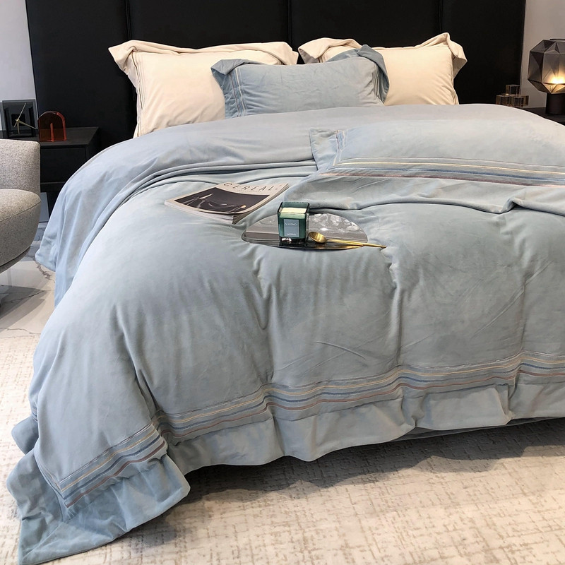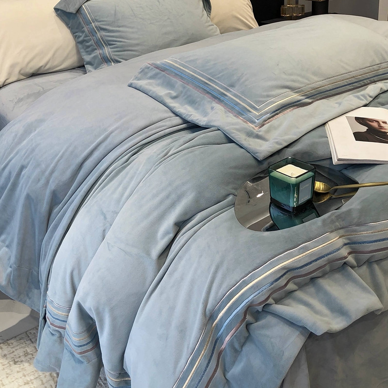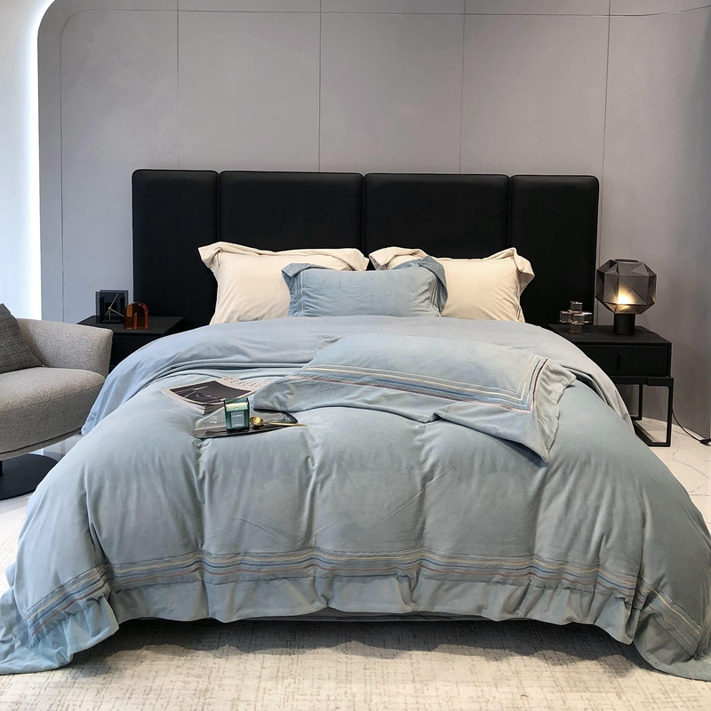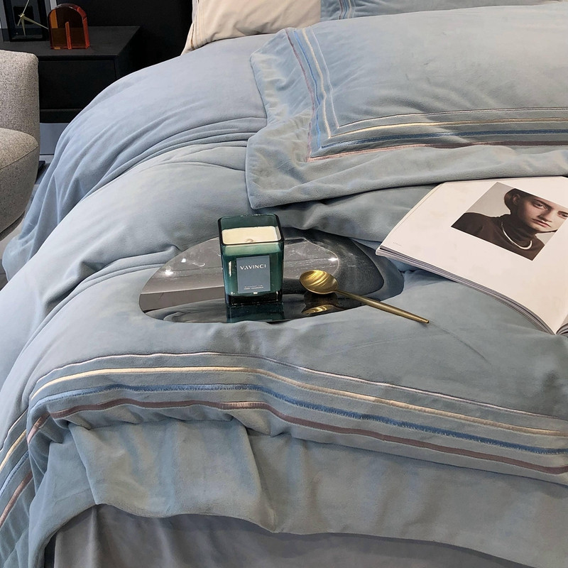 商品名称:太古汇 2022新款婴儿绒绣花四件套-米兰系列 米兰-莫格蓝