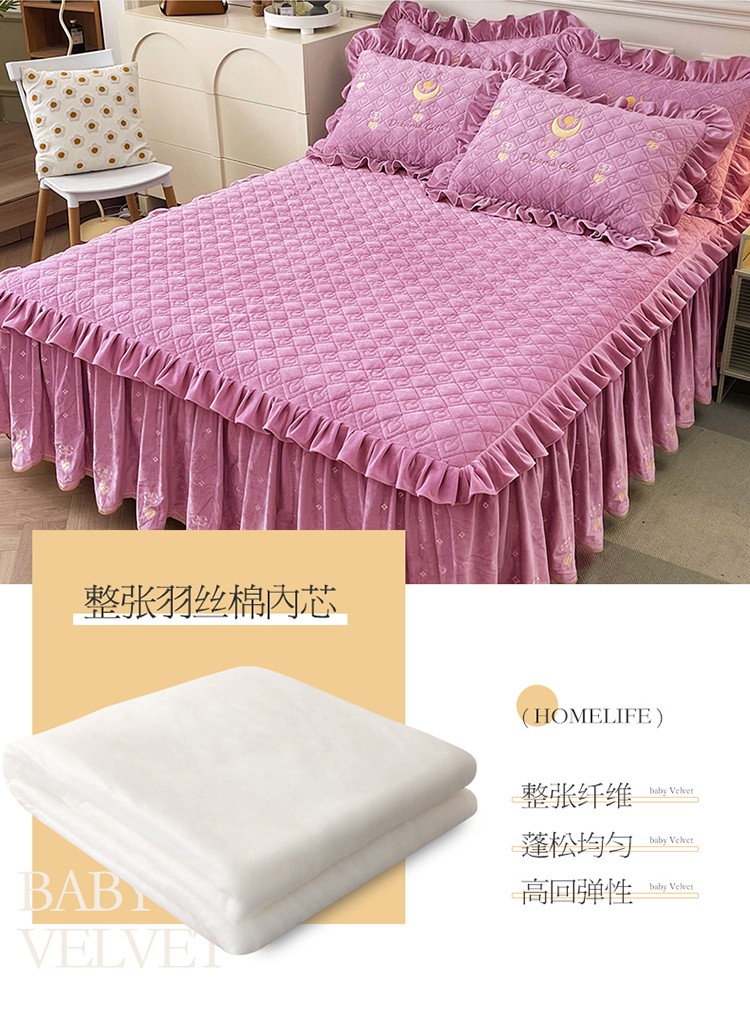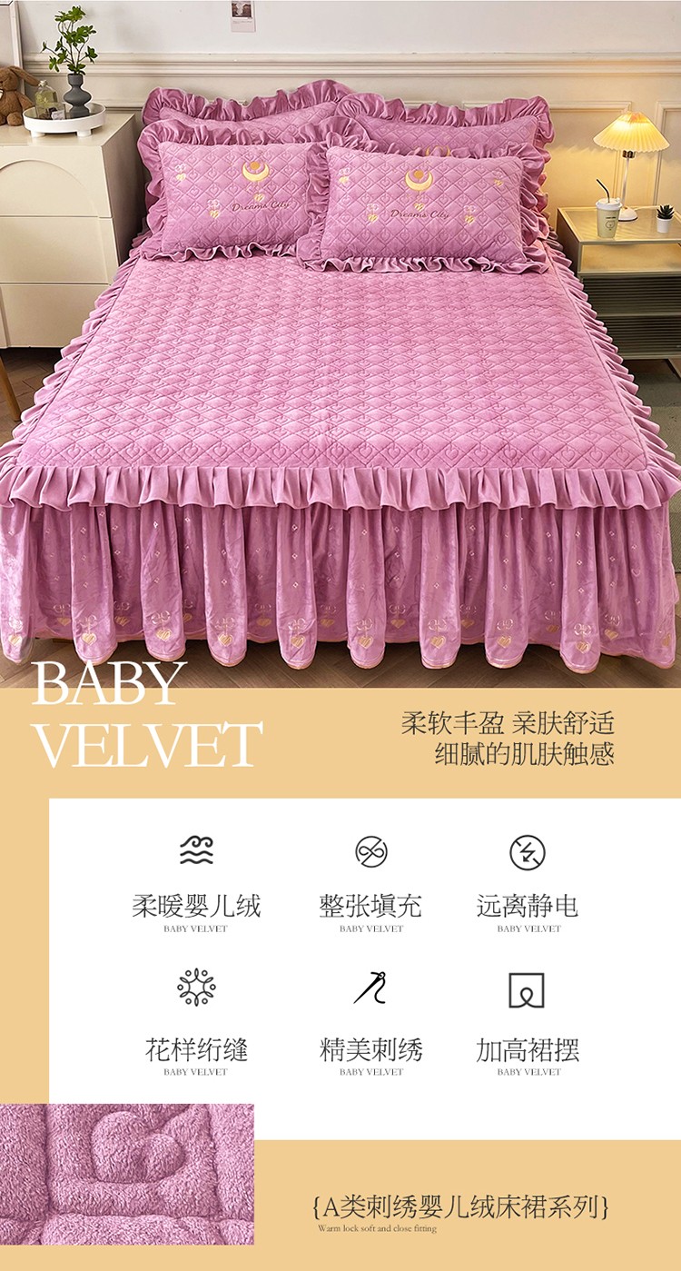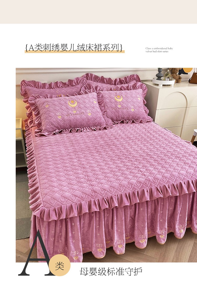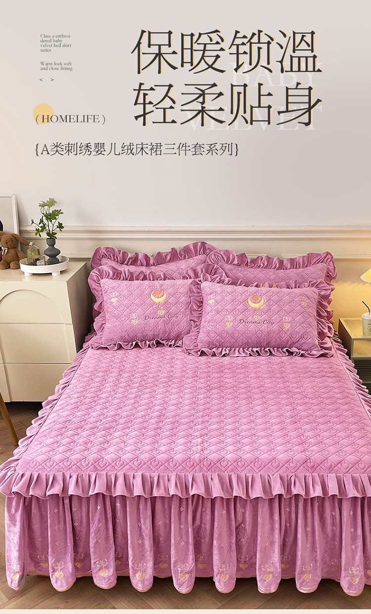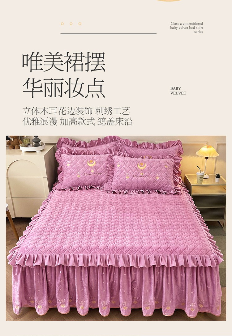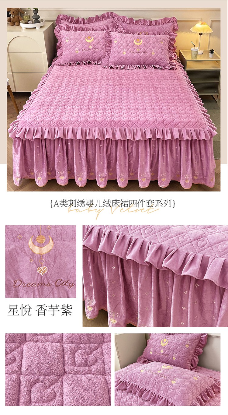 商品名称:宜凡家纺 2022新款A类婴儿绒床裙星悦系列三件套 星悦-香芋紫