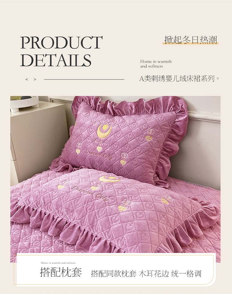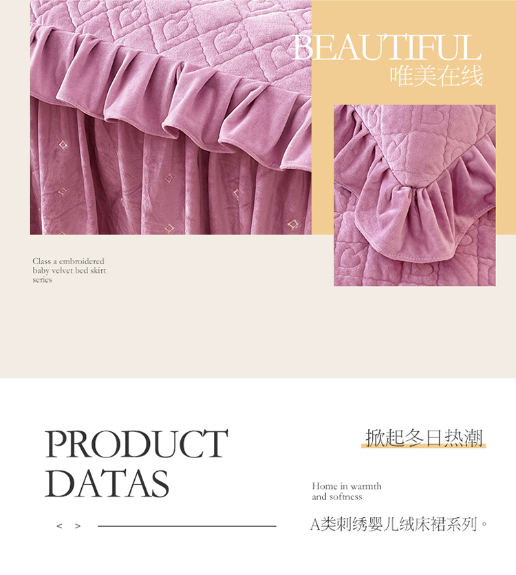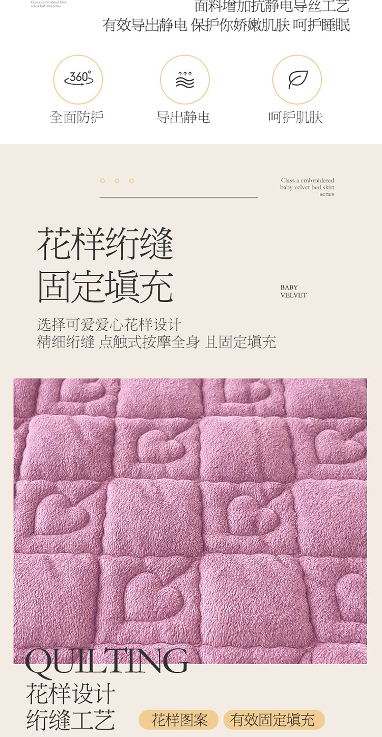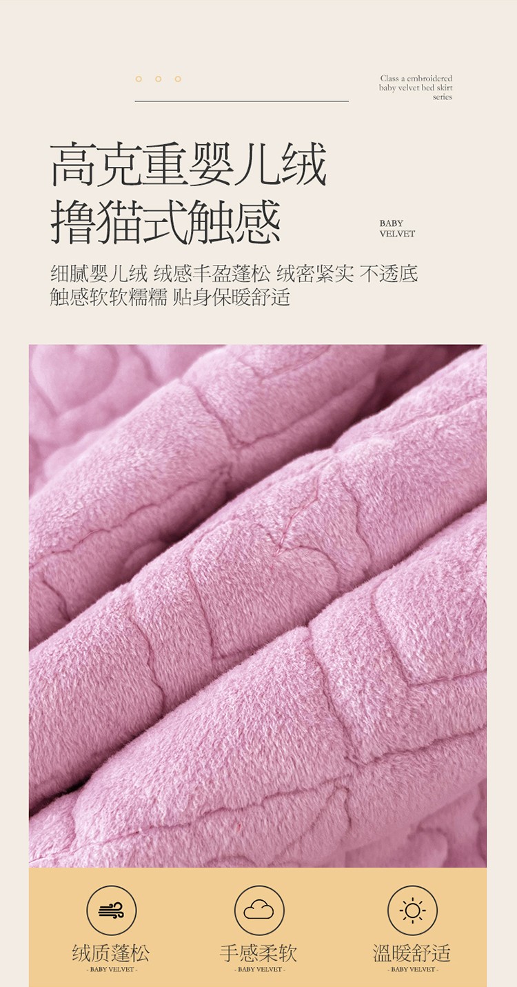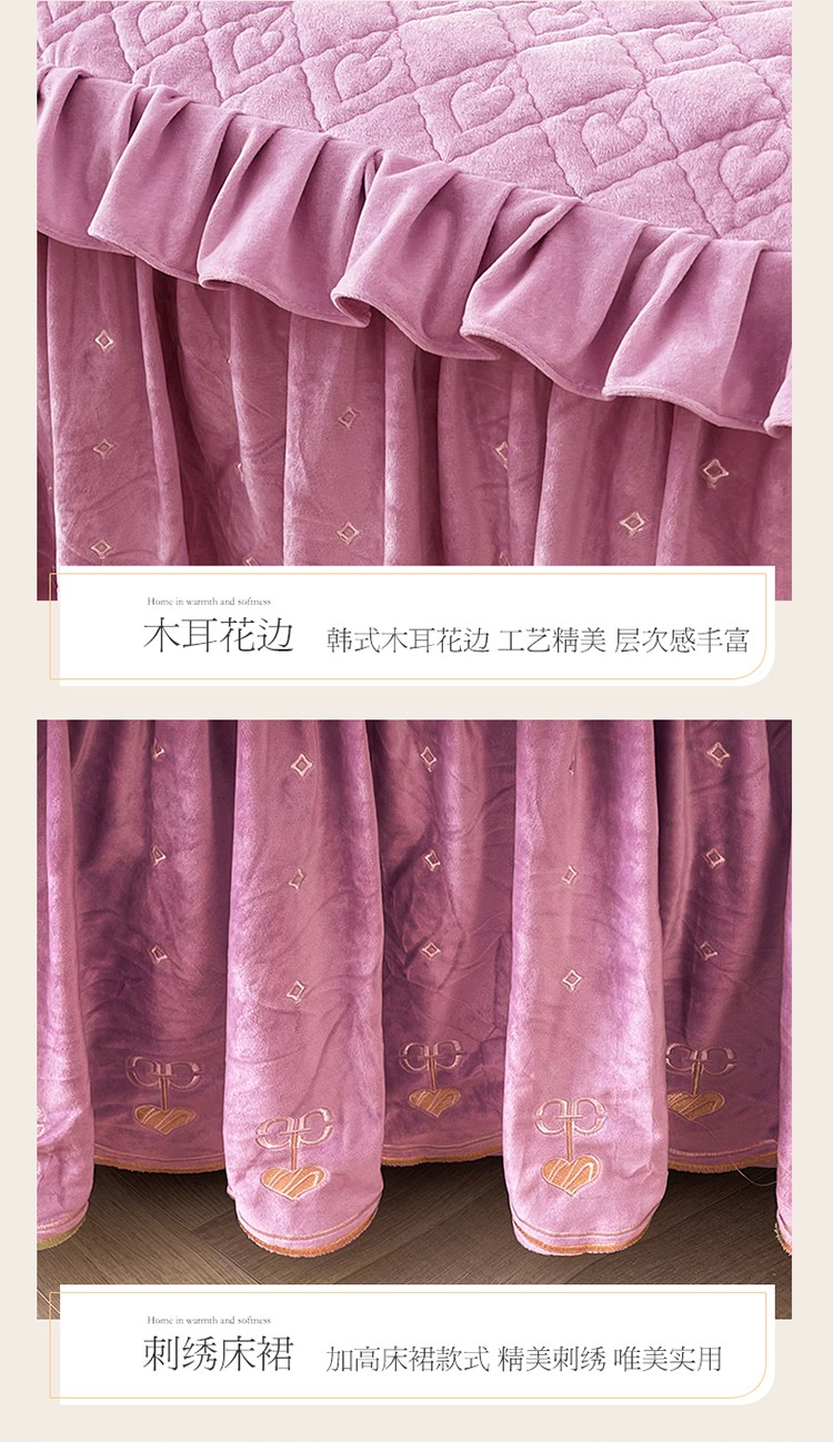 (总)宜凡家纺 2025新款兔绒提花牛奶绒夹棉床裙四件套,爱心 少女粉,爱心 粉紫,爱心 驼色,蝶舞 大红,蝶舞 米色,蝶舞 浅紫,蝶舞 玉色,简爱 苍青,简爱 豆沙紫,简爱 玉色,樱桃 苍青,樱桃 豆沙紫,樱桃 奶油白
