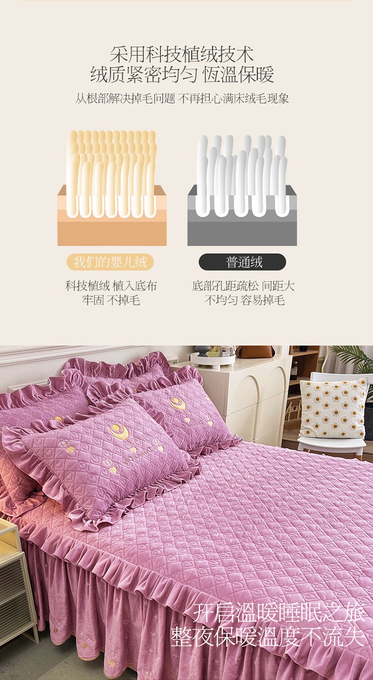 宜凡家纺 2022新款A类婴儿绒床裙星悦系列三件套 星悦-香芋紫
