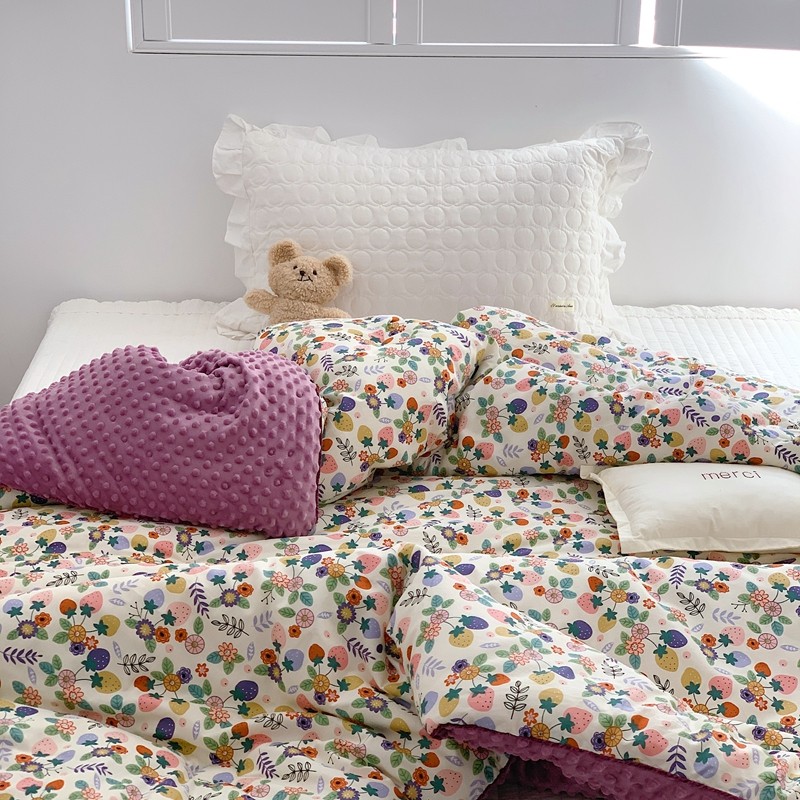 商品名称:星期八 2022新款复古碎花豆豆被冬被春秋被 花间草莓