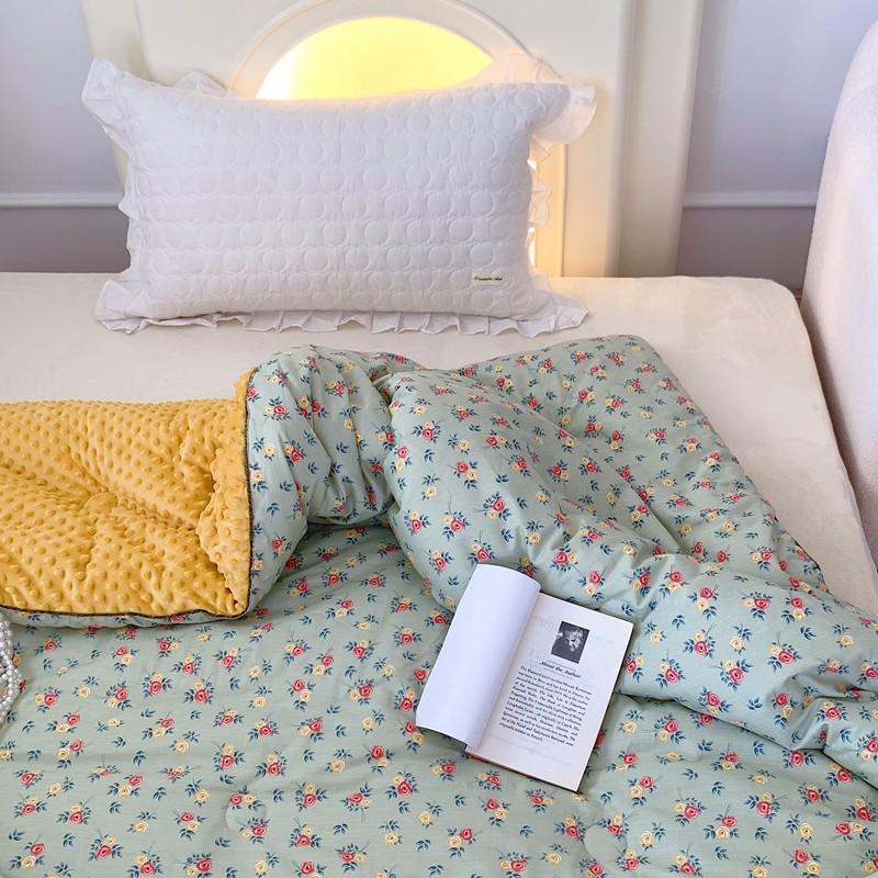 星期八 2022新款复古碎花豆豆被冬被春秋被 知雅绿