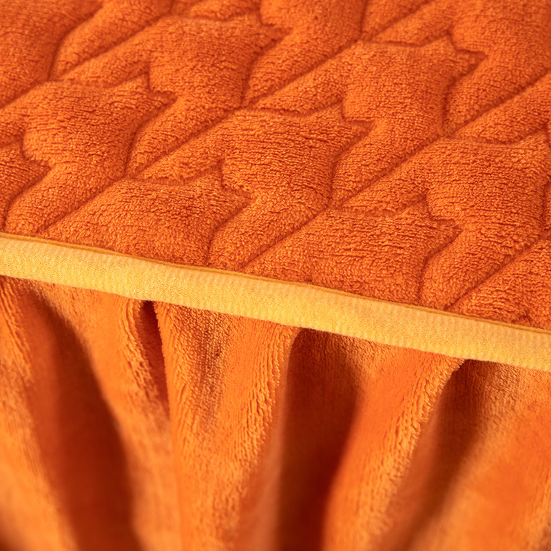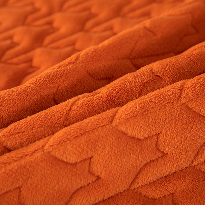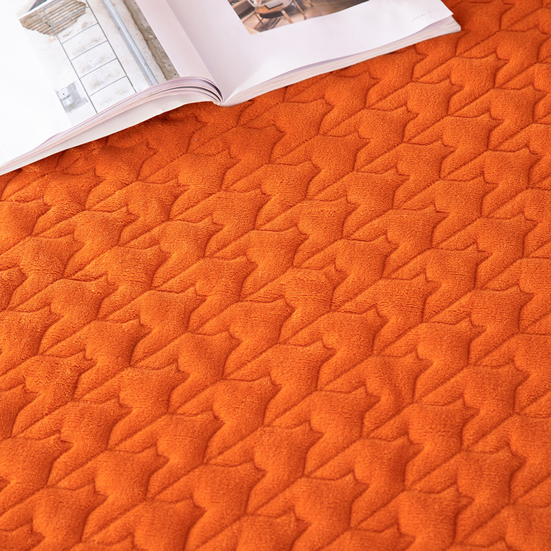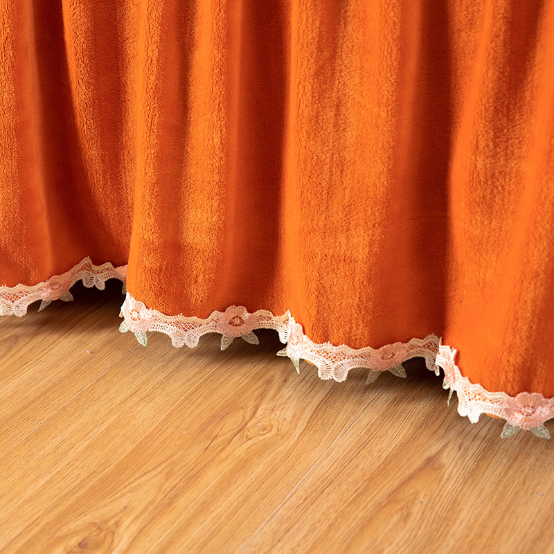 商品名称:木兰花 牛奶绒夹棉纯色床裙水晶法莱绒三件套-国色天香-深橘