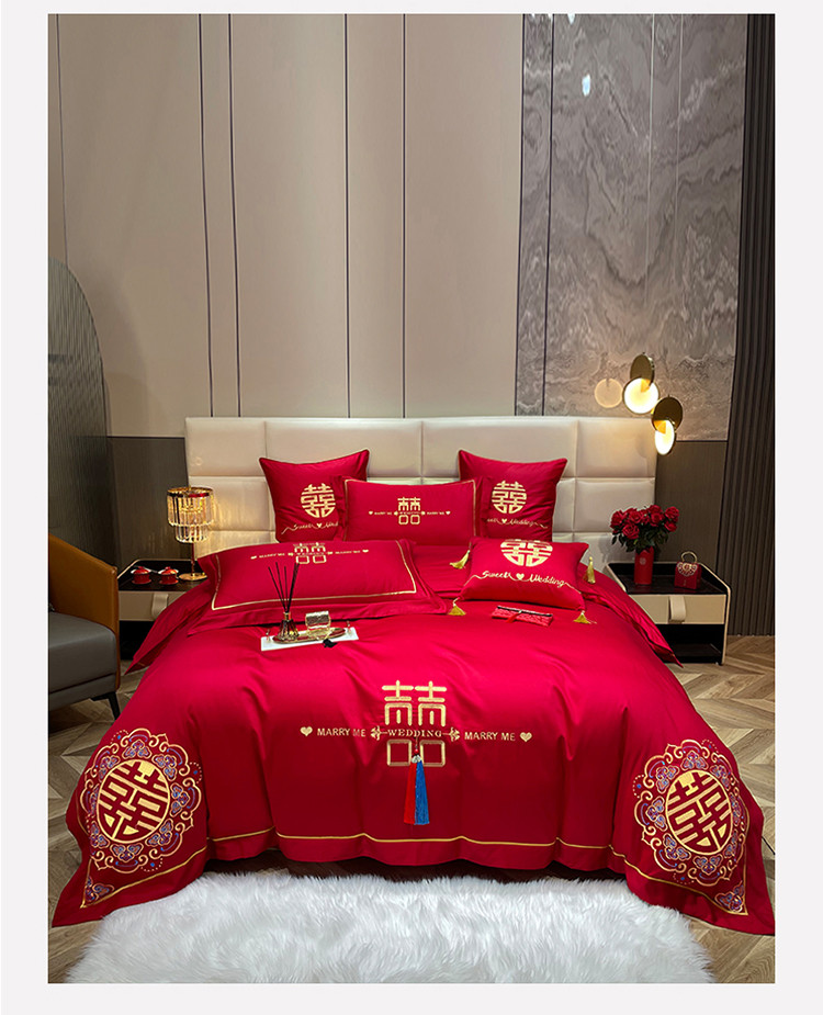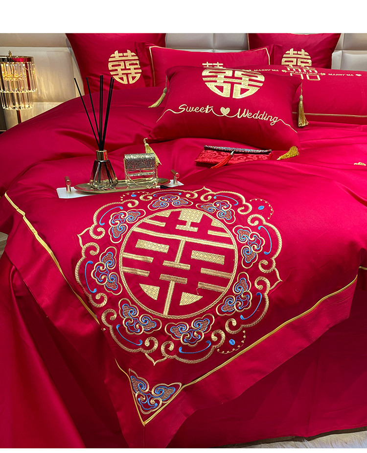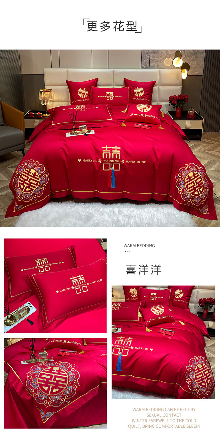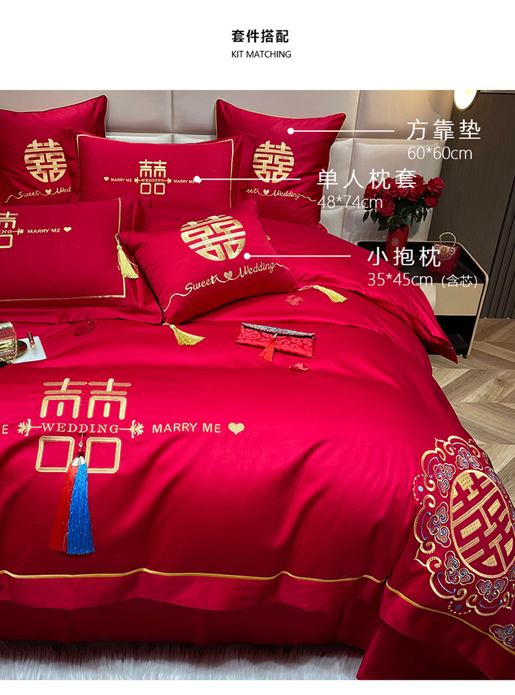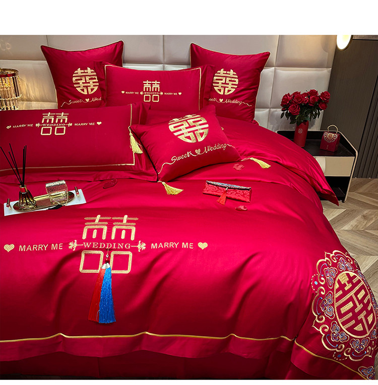 (总)甜咪咪婚庆 2025新款50支长绒棉全棉婚庆床单床盖四件套多件套刺绣工艺,洛可可,爱恋小熊,爱意久久,多子多福,花田喜事,节节高升,克拉恋人,浪漫情怀,怦然心动红,怦然心动玉,甜心玫瑰,温莎公主,伊甸园,醉红妆