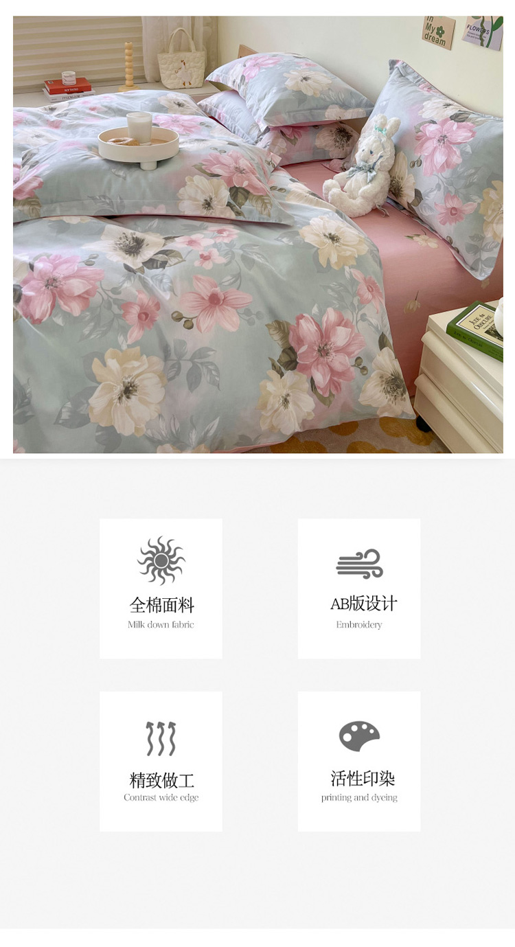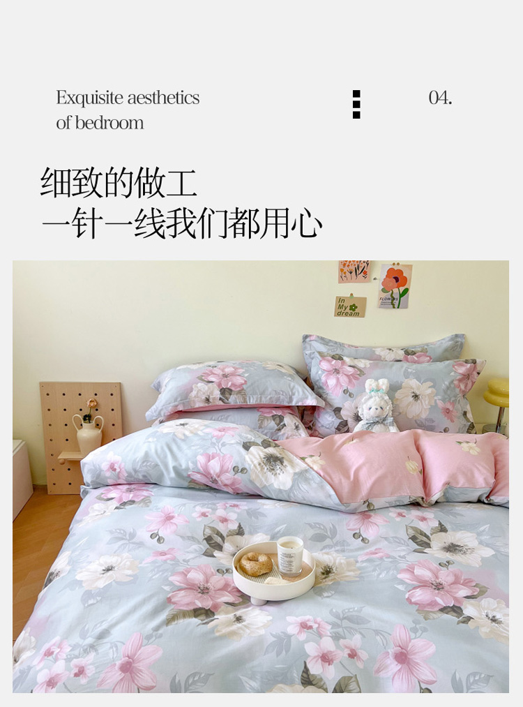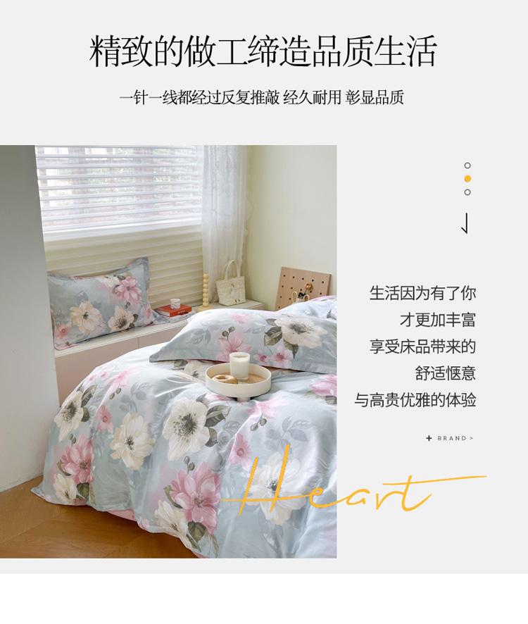 盛馨家纺 全棉ins北欧风高支高密全棉喷气小清新纯棉四件套 花开富贵