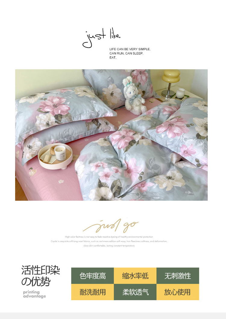 总盛馨家纺 2023新款ins北欧风高支高密全棉喷气小清新纯棉四件套,花丛兔,锦鲤,快乐小狗,梦幻,梦境小兔,入夏,若微,溪沐,叶墨新晨,樱桃兔,星球家园,草莓兔,花粉兔,花花小熊,花开富贵,花蓝兔,花胥梦粉,花韵,狂想曲蓝,萌宠乐园,蜜桃公主,莫奈花园蓝,奇妙幻想蓝,曲奇小熊,圣歌娜,诗情画意,桃桃兔,甜蜜小花,文特森 咖,小黄鸭,叶叶小花,油画草莓,丛林家园,粉色花海,可可大草莓,浪漫花朵,满庭花开,漫时光,暖阳紫,郁金香小兔