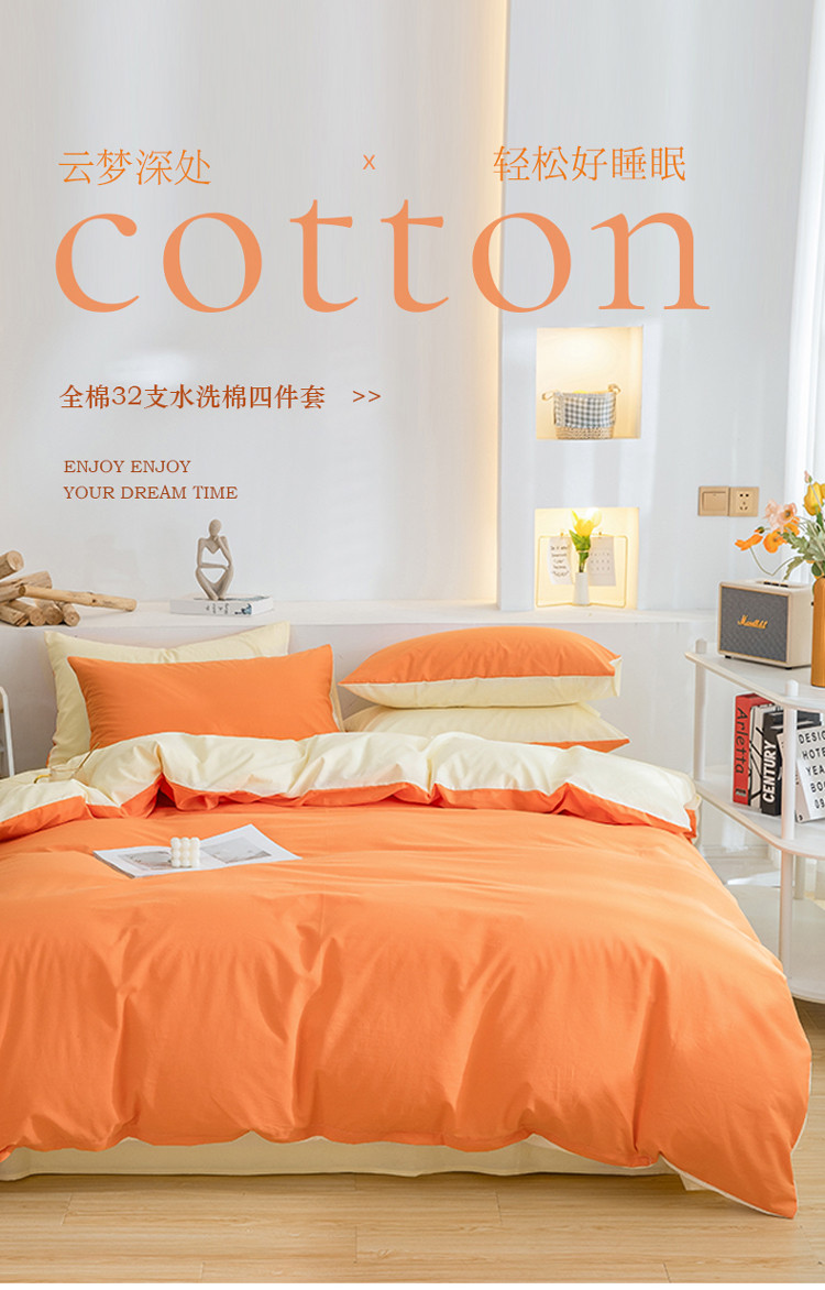 当前位置: 91家纺网 > 商品网购 > 床品套件 > 四件套 > 水洗棉四件套 > 柠萌家居 2024新款全棉双拼水洗棉四件套 双拼-桔浅米