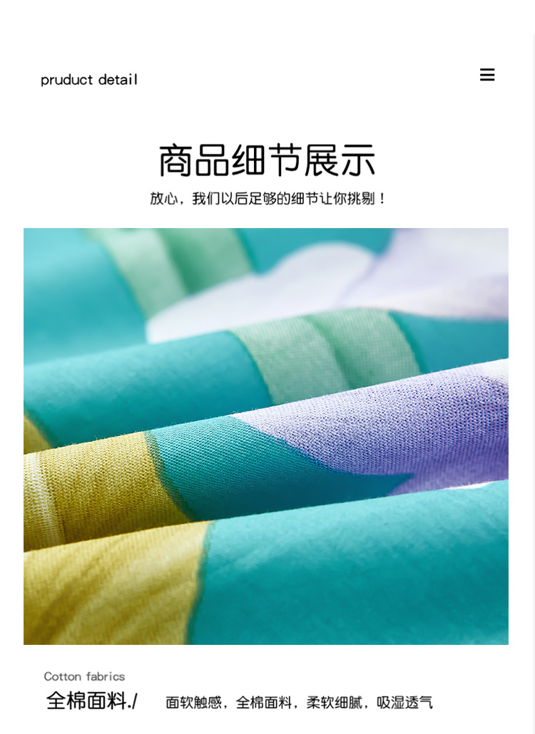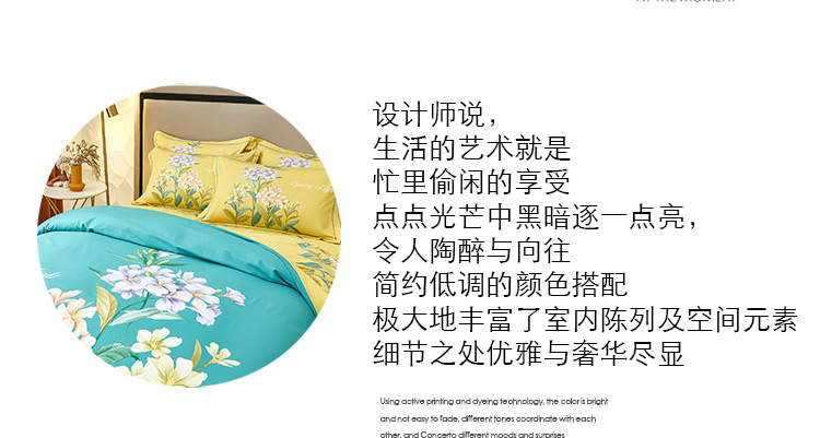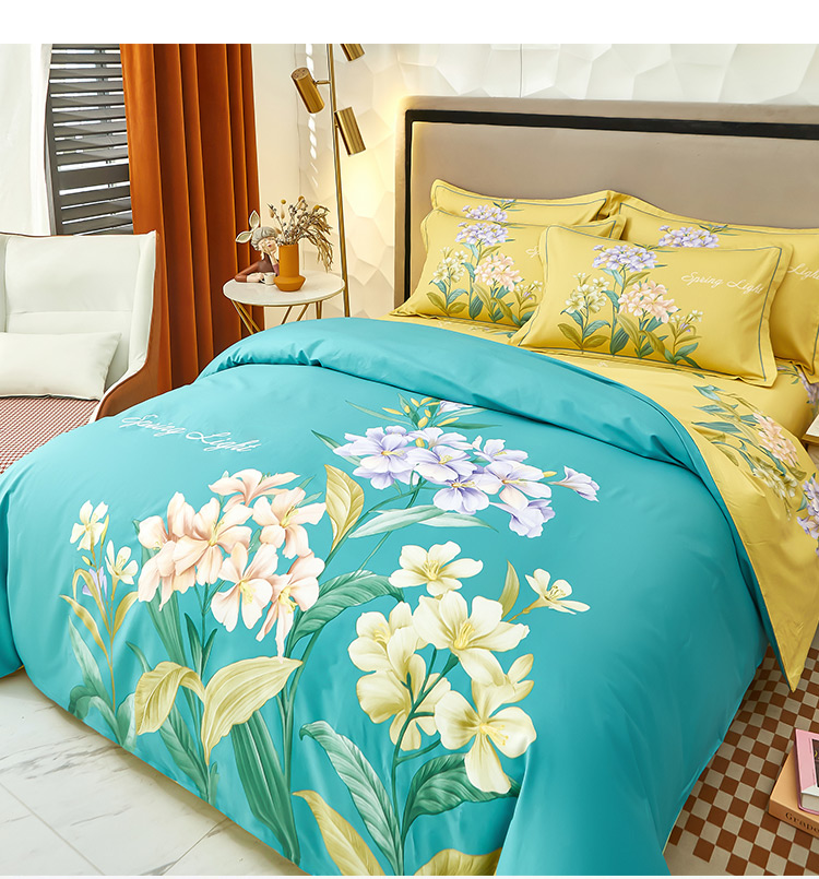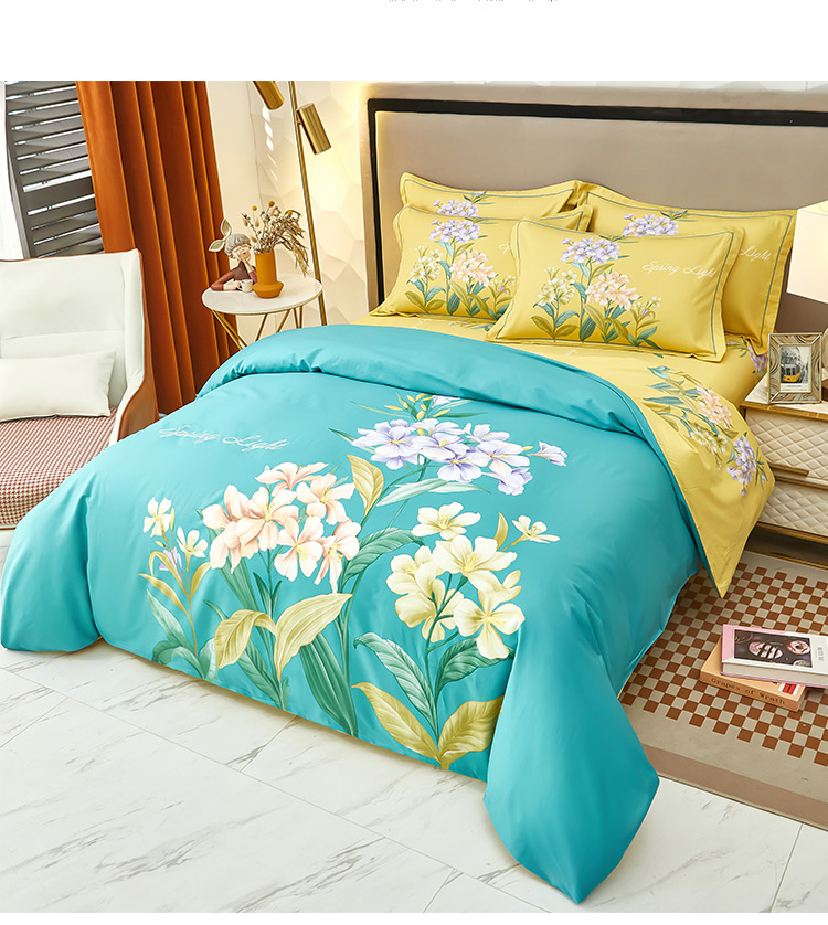 商品名称:雲归梦2023新款13372全棉活性大版印花简约居家四件套 花音蓝