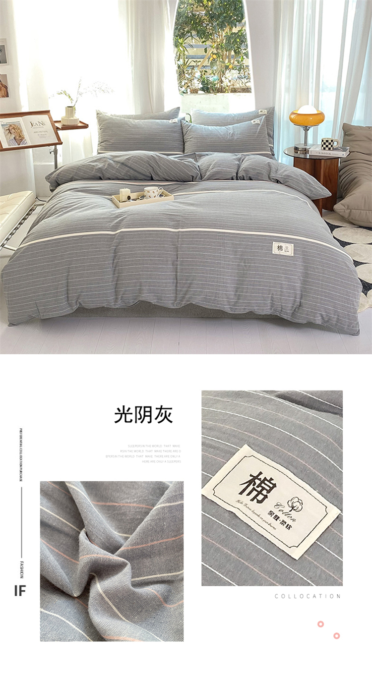 当前位置: 91家纺网 > 商品网购 > 床品套件 > 四件套 > 水洗棉四件套 > 云家2023无印风色织全棉纯棉水洗棉系列四件套纯色格子 光阴灰