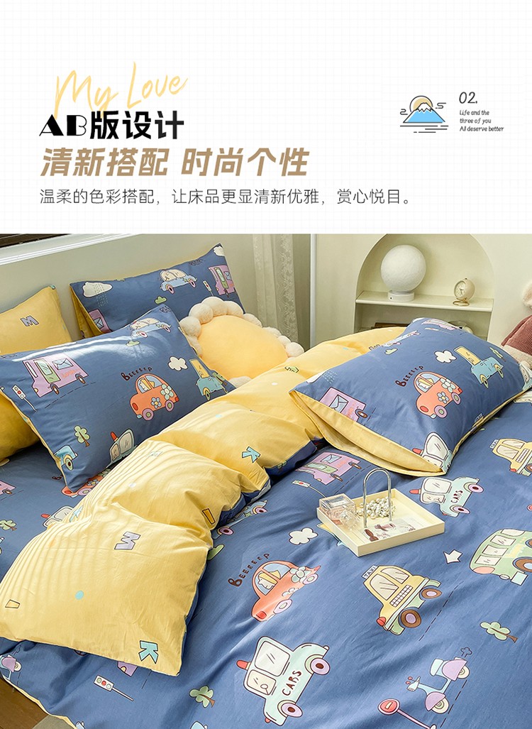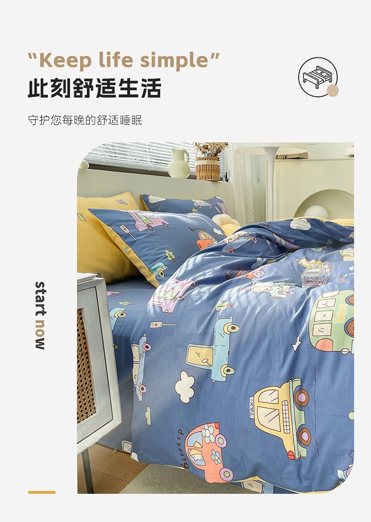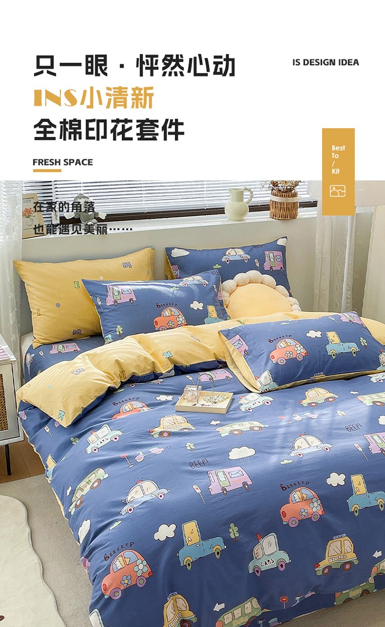 商品名称:绵庭 2023新款12868全棉ins小清新印花四件套 汽车总动员