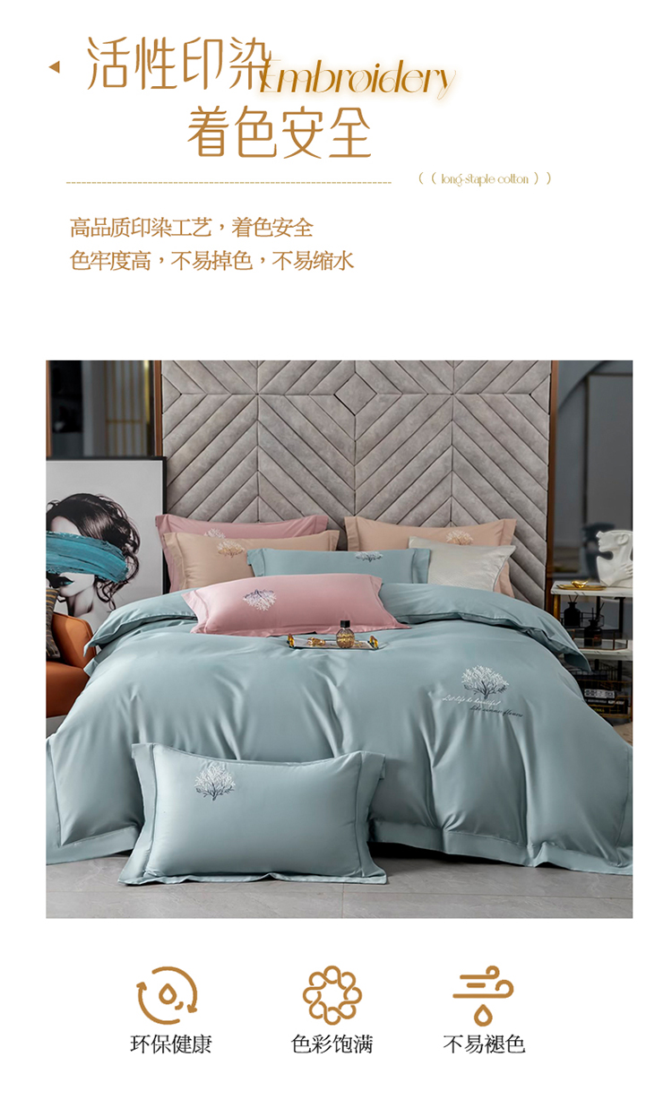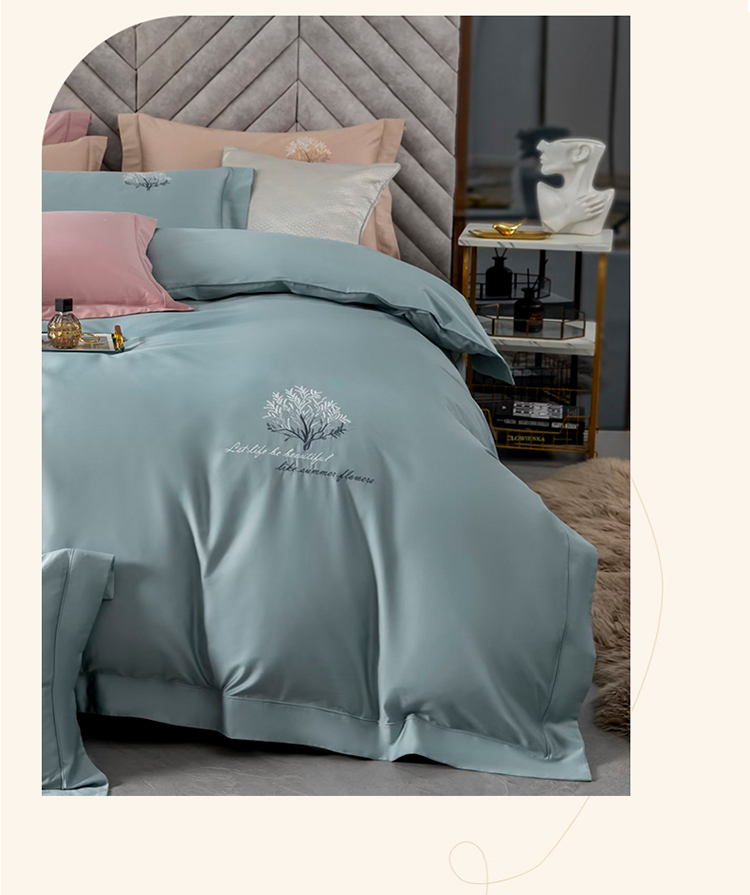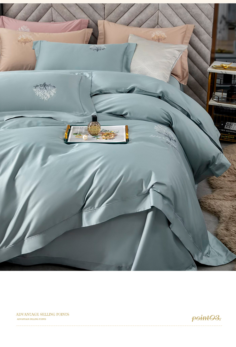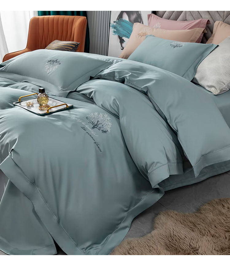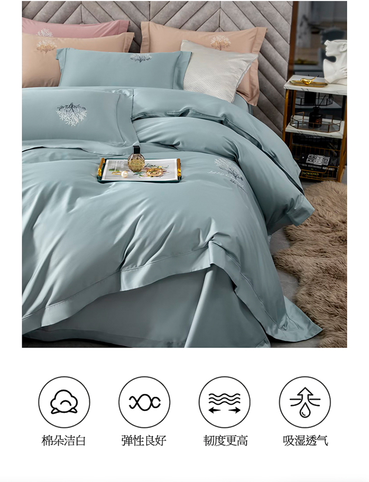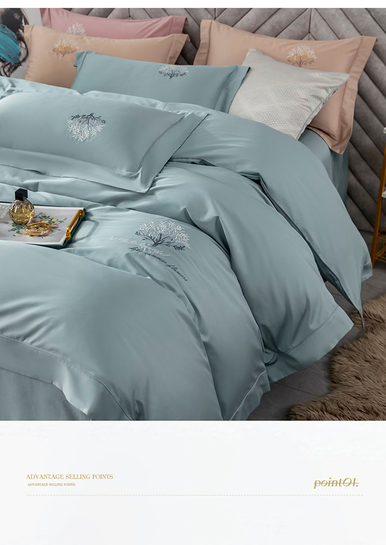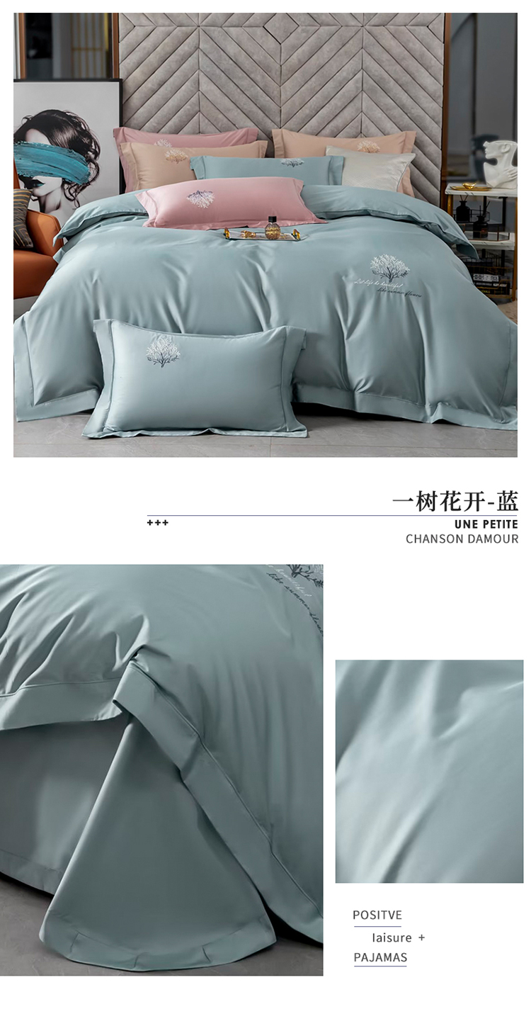 商品名称:名品优仓 2023新款高支高密长绒棉刺绣款四件套-一树花开 一树花开-蓝