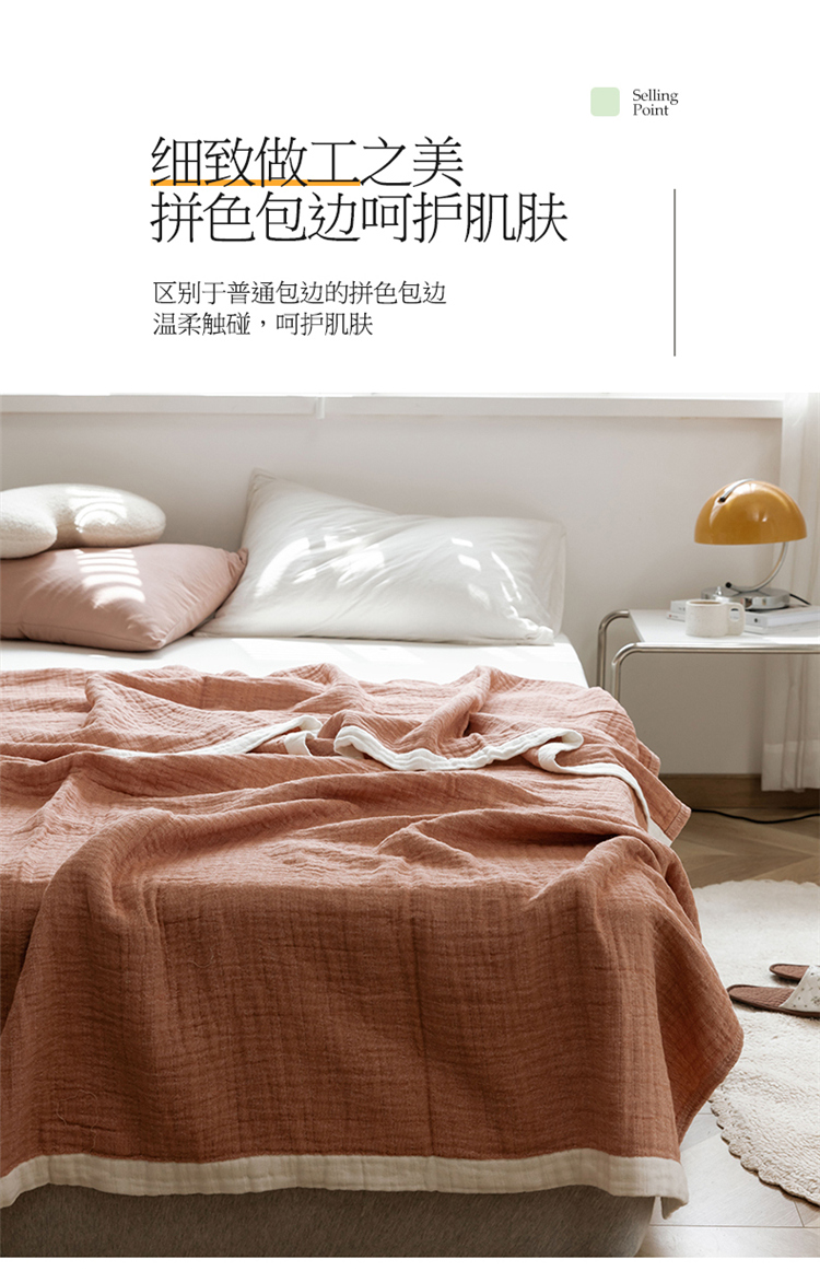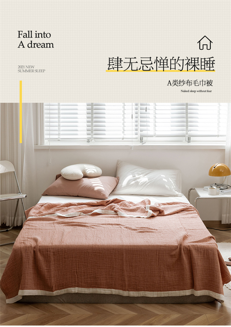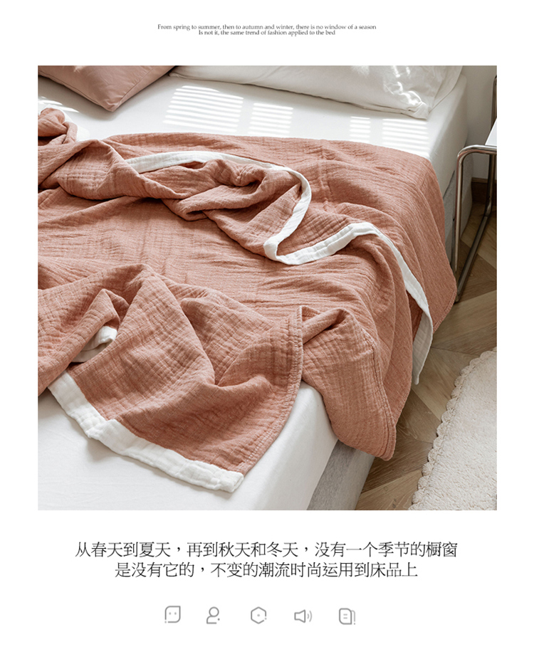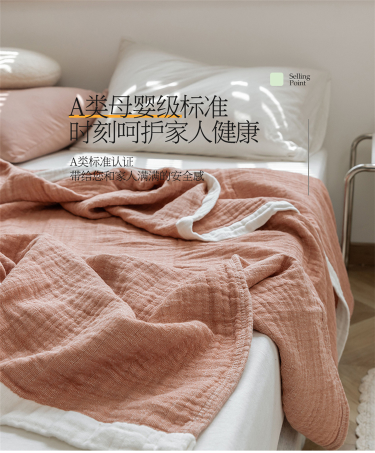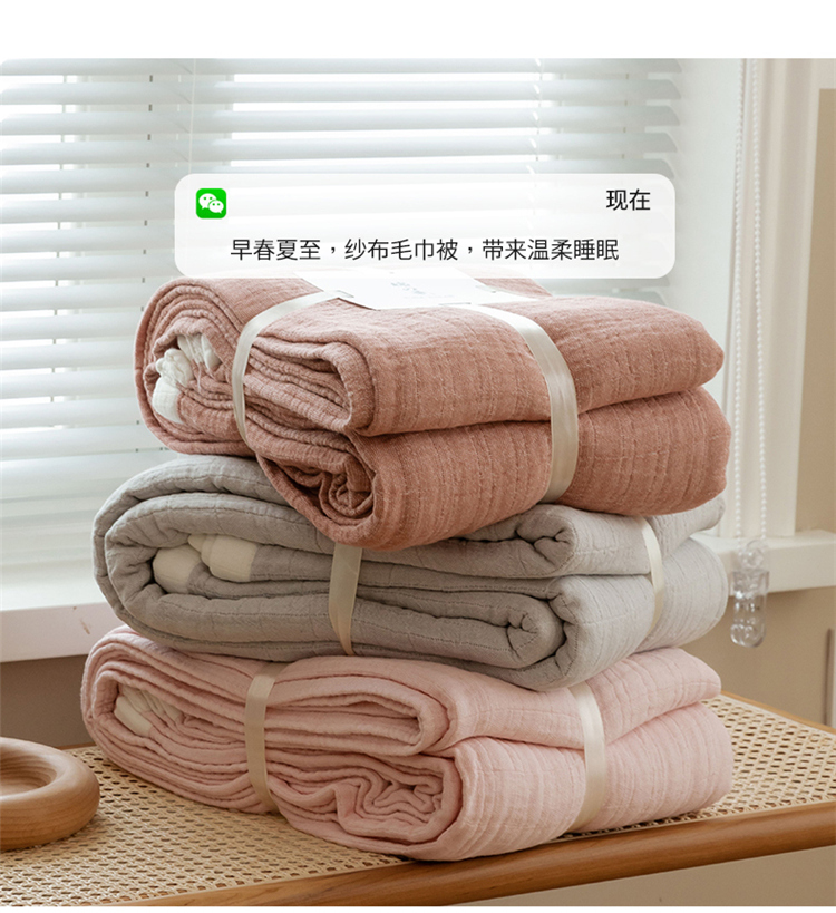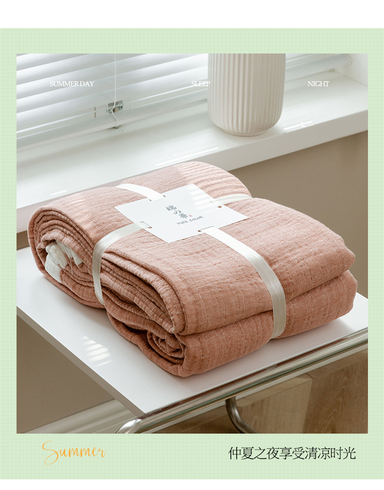 雯雨家纺2023新款A类全棉纱布毛巾被 深粉