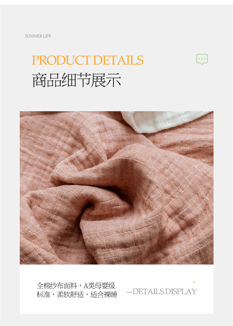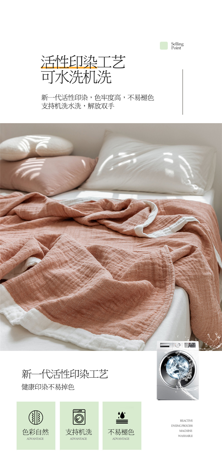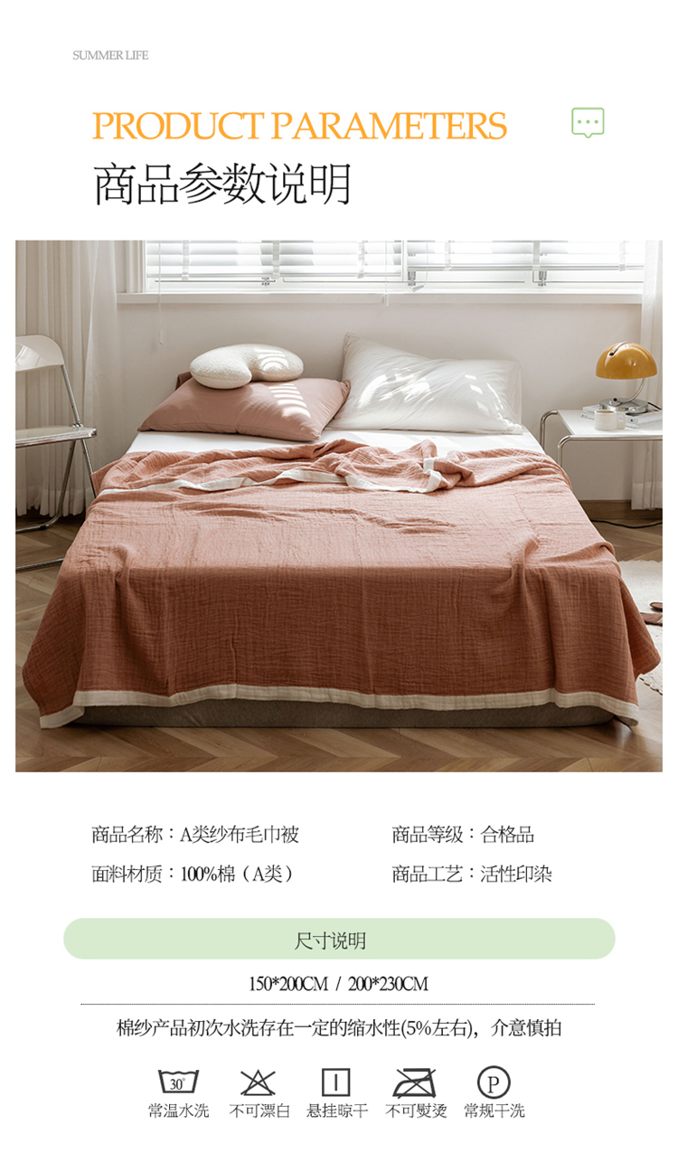 商品名称:雯雨家纺2023新款A类全棉纱布毛巾被 深粉