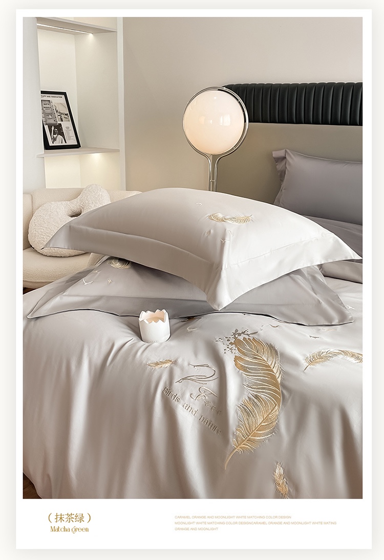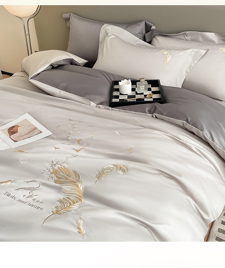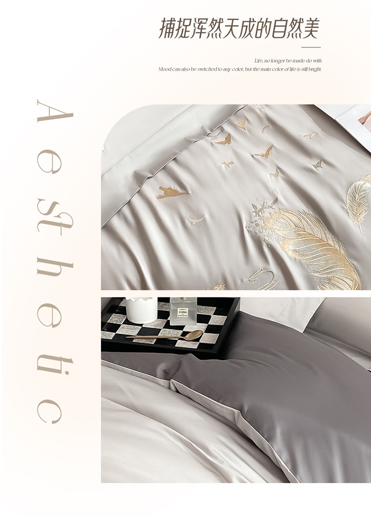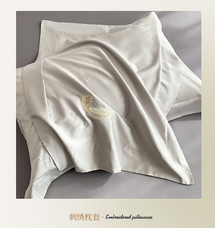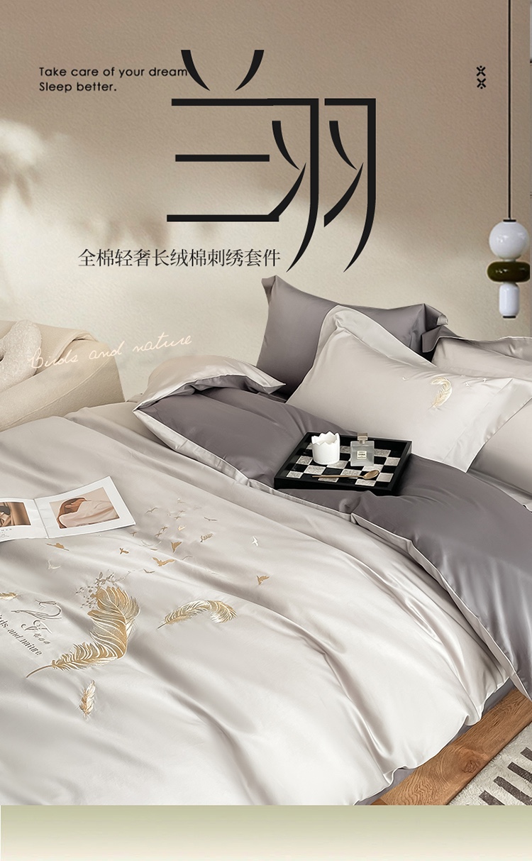 商品名称:蓝米卡夫 2024全棉高级感长绒棉刺绣兰羽系列-单被套 兰羽-山灰雅士