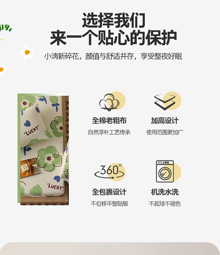 商品名称:蓝巢家纺 2023新款A类母婴级四季可用全棉老粗布单品系列单床笠 简笔画