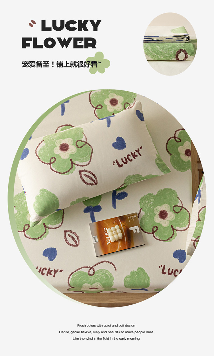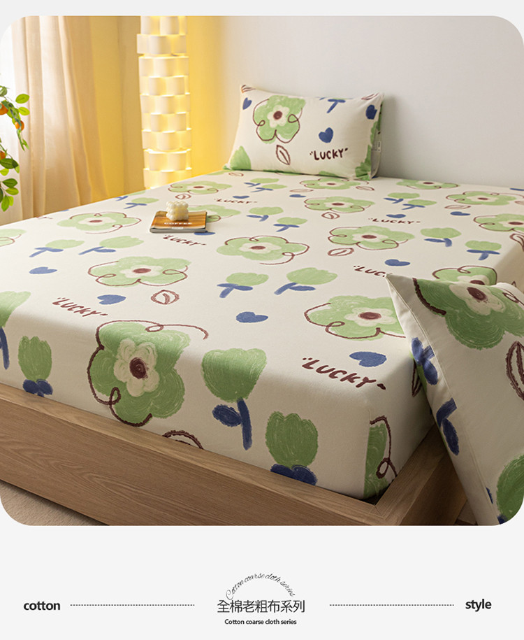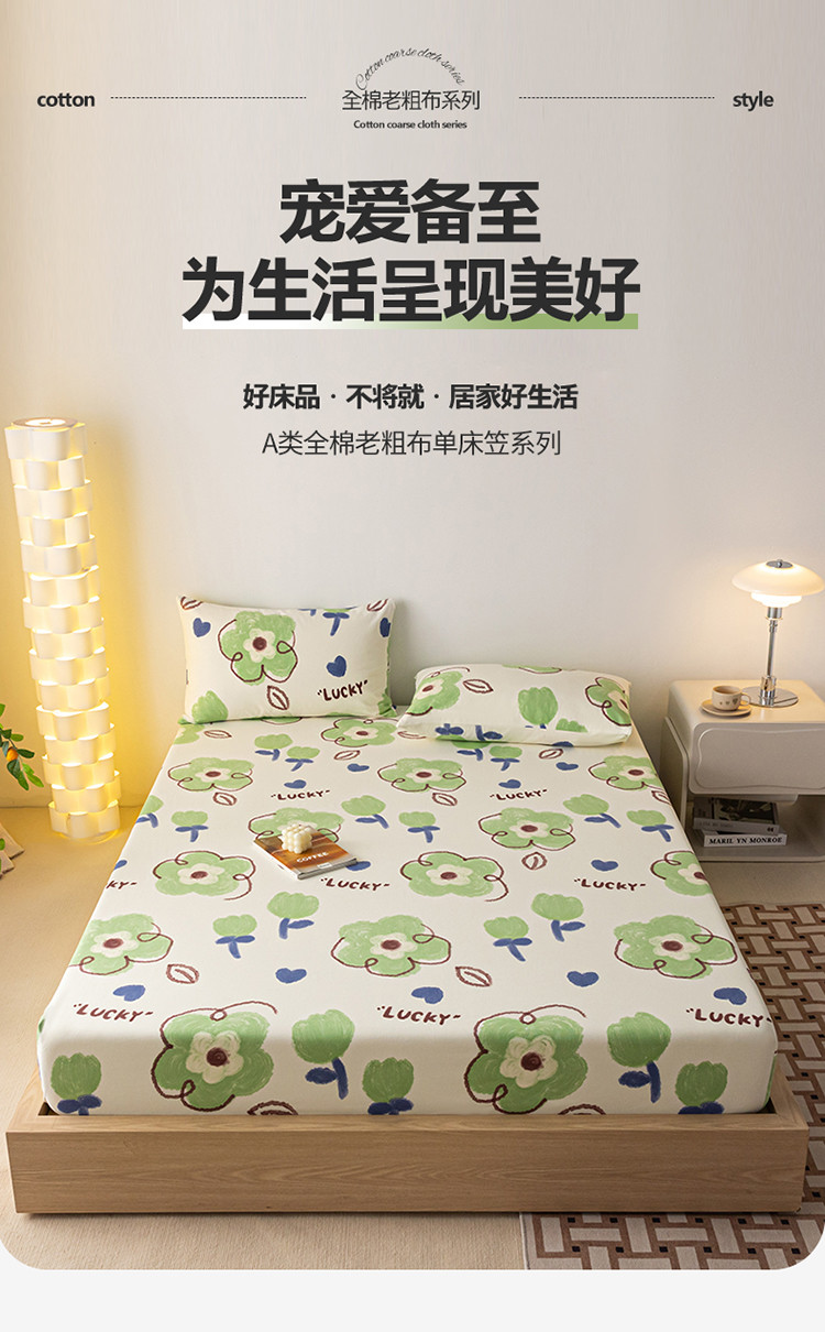 蓝巢家纺 2023新款A类母婴级四季可用全棉老粗布单品系列单床笠 简笔画