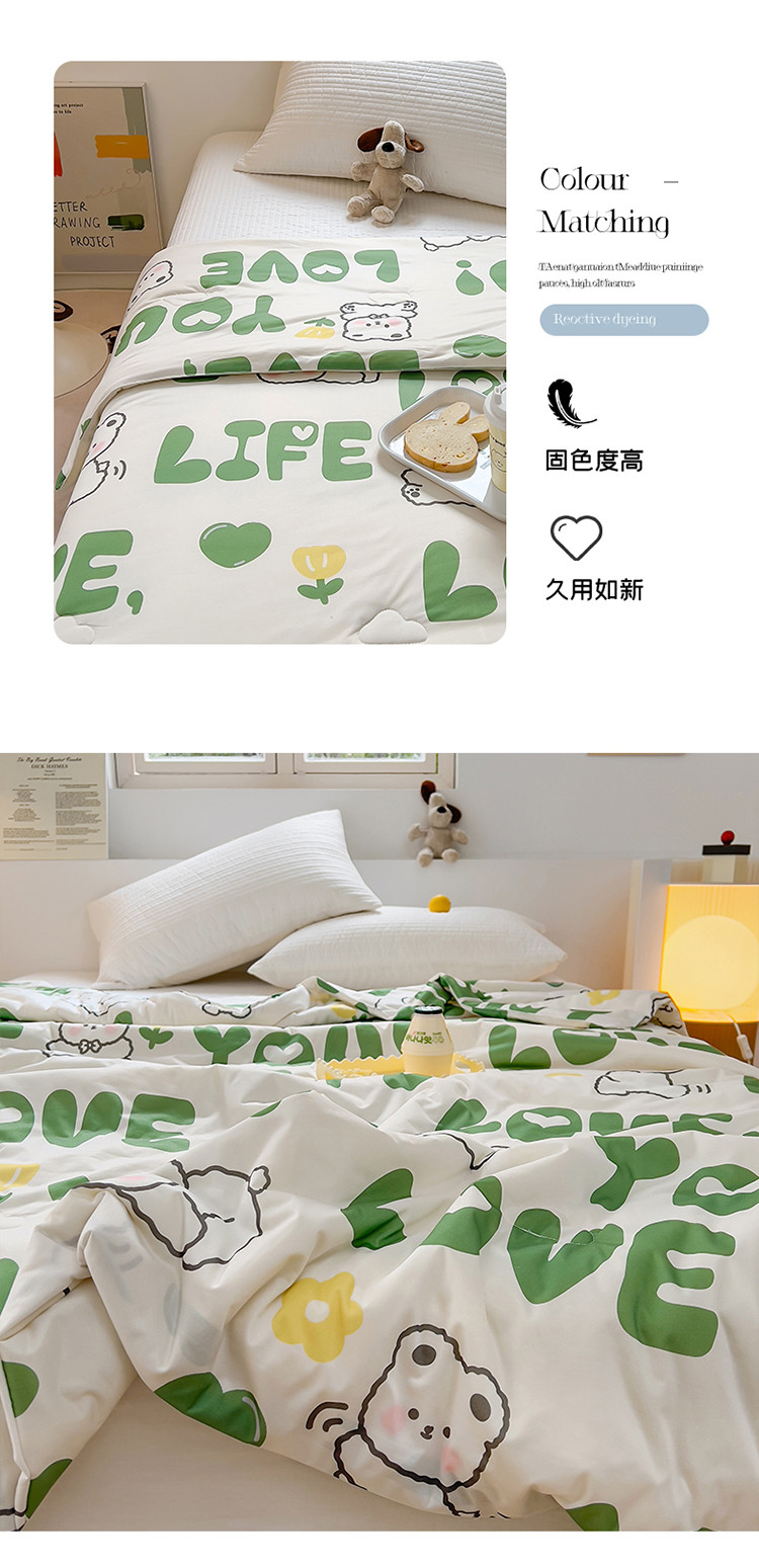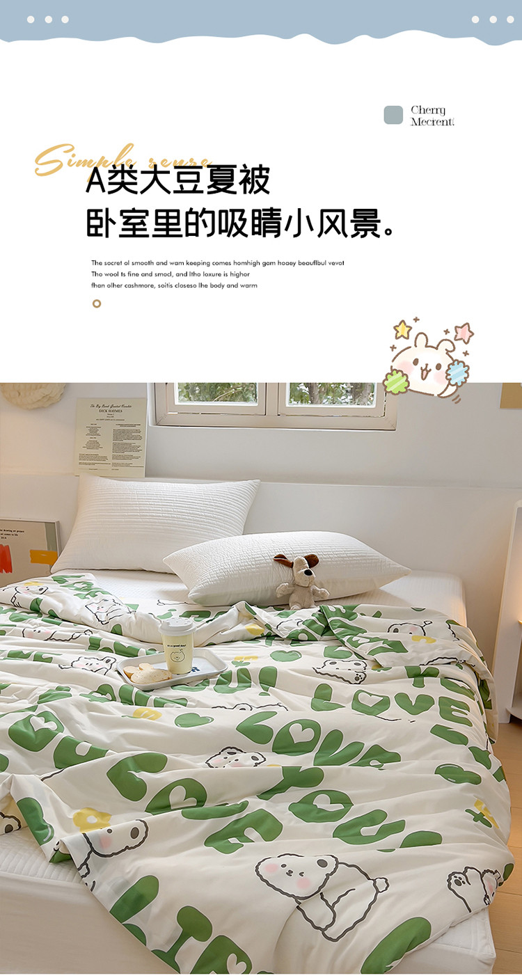 (总)木堇家居 25年春夏卡通小清新针织棉10%大豆夏被(长期款),茶杯犬--25年专版花型色,蛋糕小熊--25年专版花型,狗狗家族--25年专版花型,咖啡天使熊--25年专版花型,蓝格奶酪熊--25年专版花型,猫咪日记--25年专版花型,天使猫咪--25年专版花型,玩具熊仔--25年专版花型,休闲皮皮--25年专版花型,草莓点点,城堡,动物运动会-绿,粉色顽皮兔,格子绅士熊-夏,花朵熊宝,花藤草莓兔-夏,快乐星球,腊肠狗,绿恐龙,萌萌犬熊,梦幻蝴蝶,圣诞狂欢节,五彩海星,小伙伴,小桔子,熊猫宝宝-绿,音乐猫咪,英伦草莓熊,baby兔-专版,斑点狗狗-专版,彩虹小兔,蝴蝶兔兔-专版,蓝格子熊-专版,蜜罐熊-专版,蘑菇小兔,魔方小熊,奶油兔,森林派对,兔融融,熊猫派派-专版,樱桃草莓兔-专版,樱桃小兔-专版,竹叶熊猫-专版