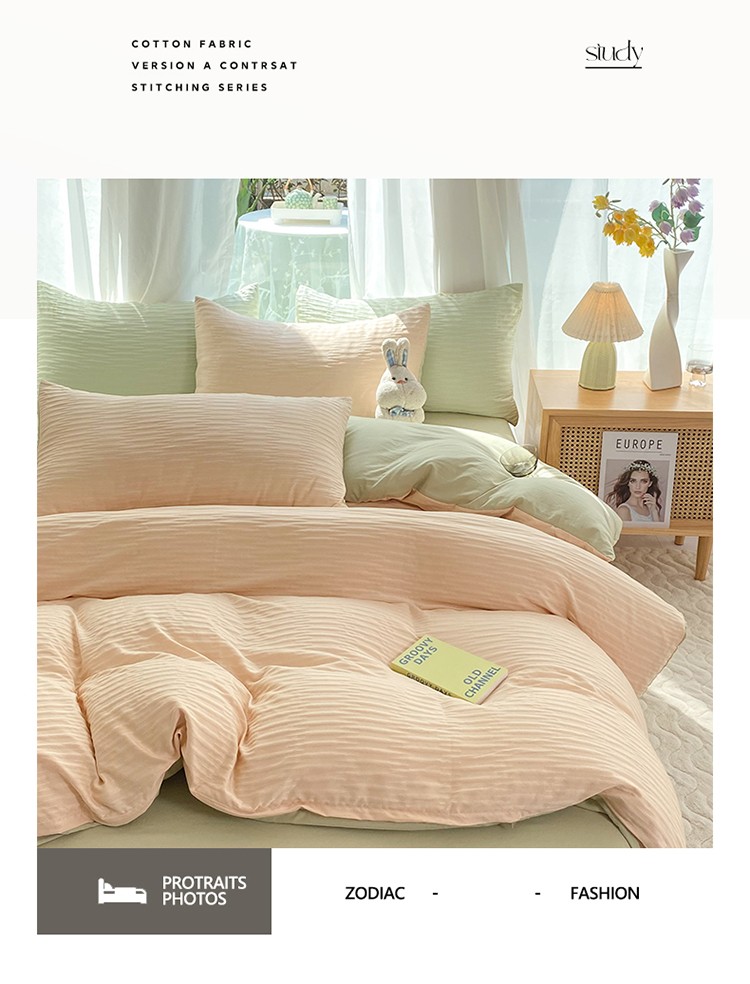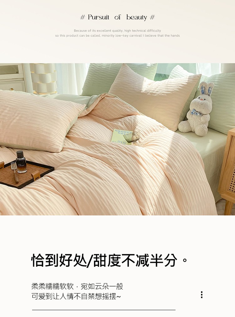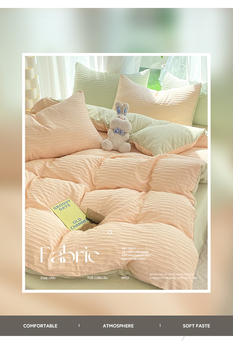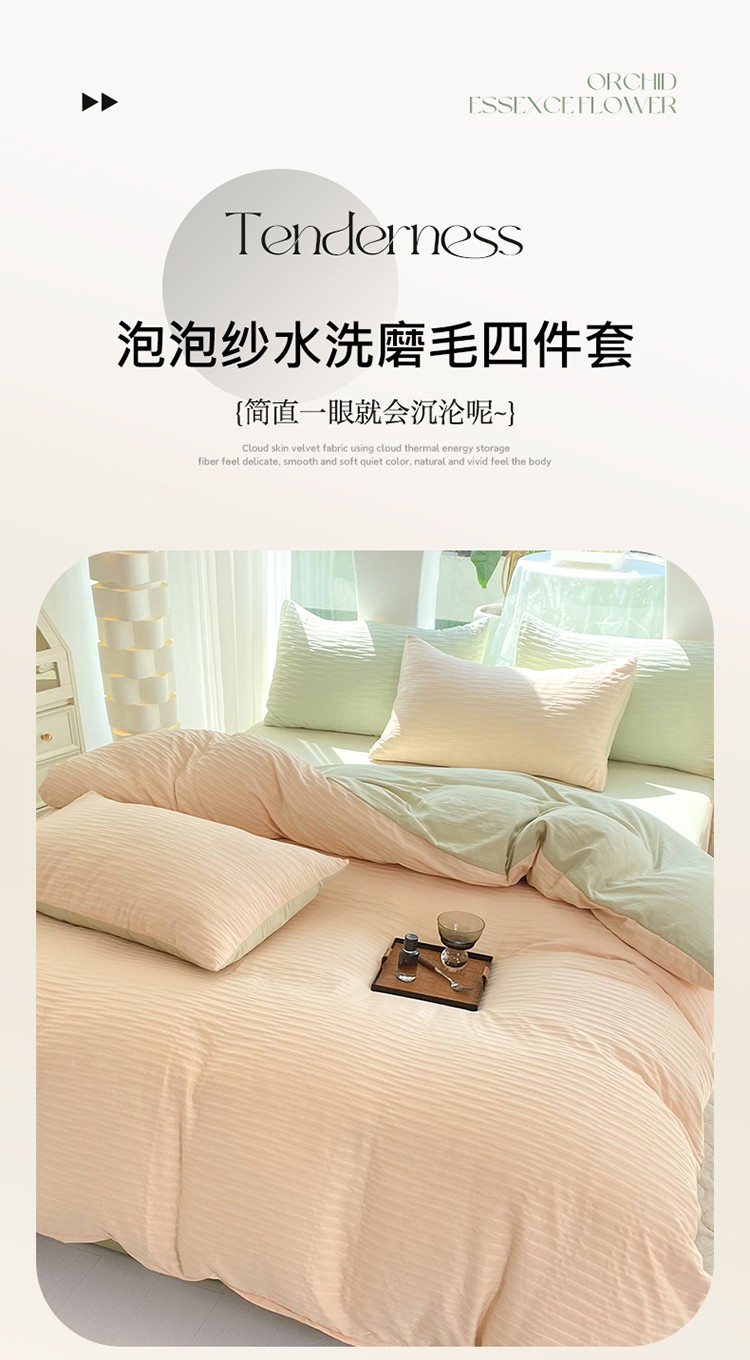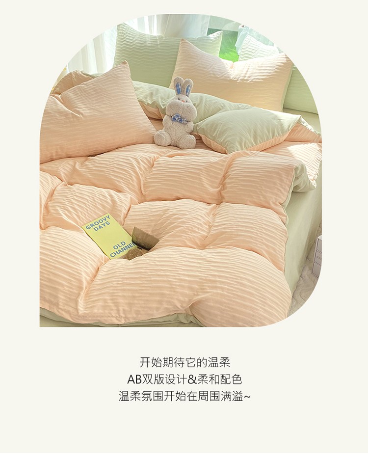 当前位置: 91家纺网 > 商品网购 > 床品套件 > 四件套 > 化纤普通四件套 > 逸尚阁 2023新款 波浪泡泡纱四件套 波浪-粉绿