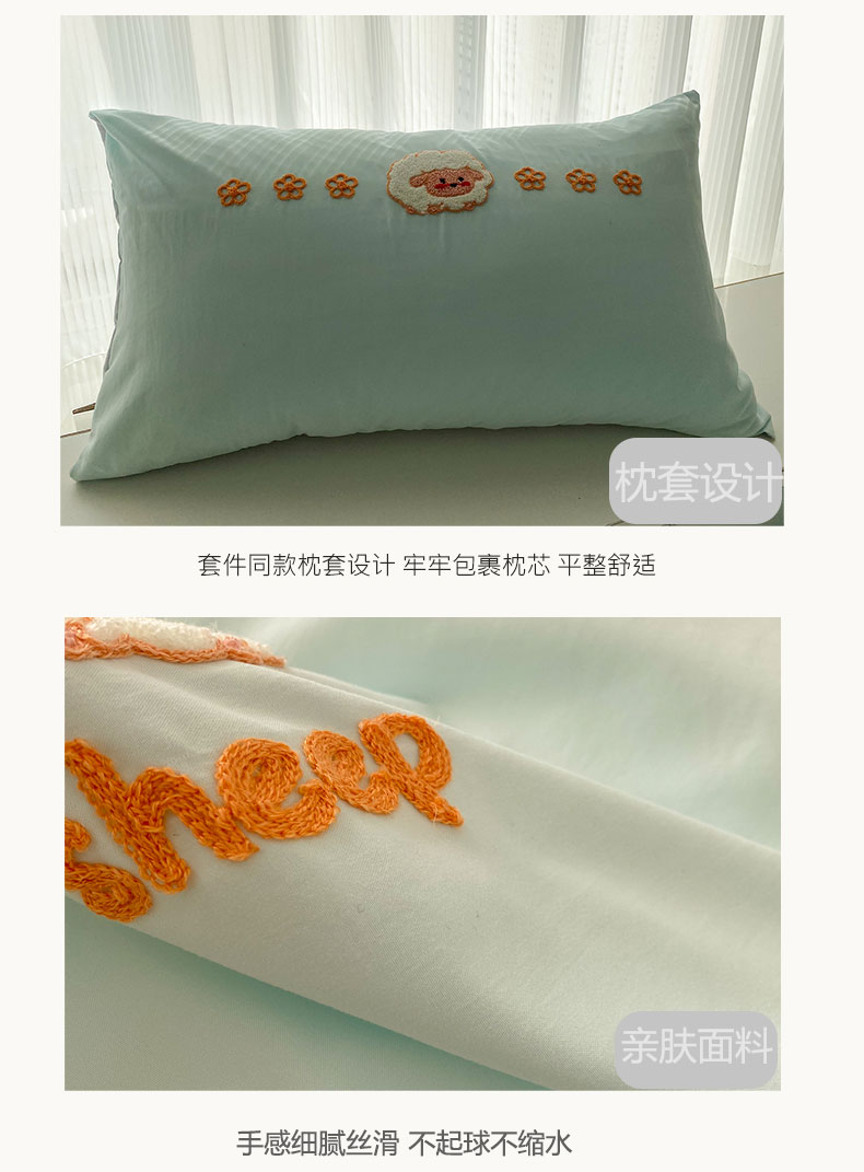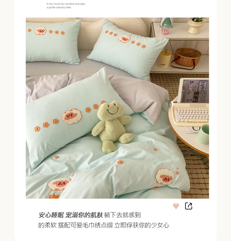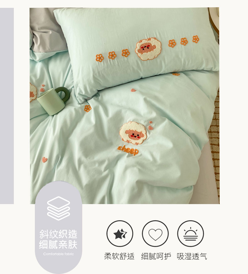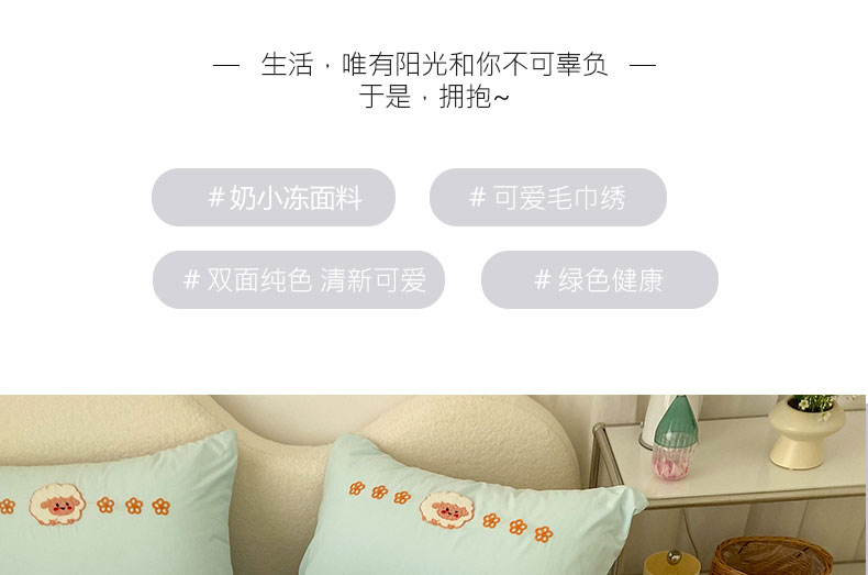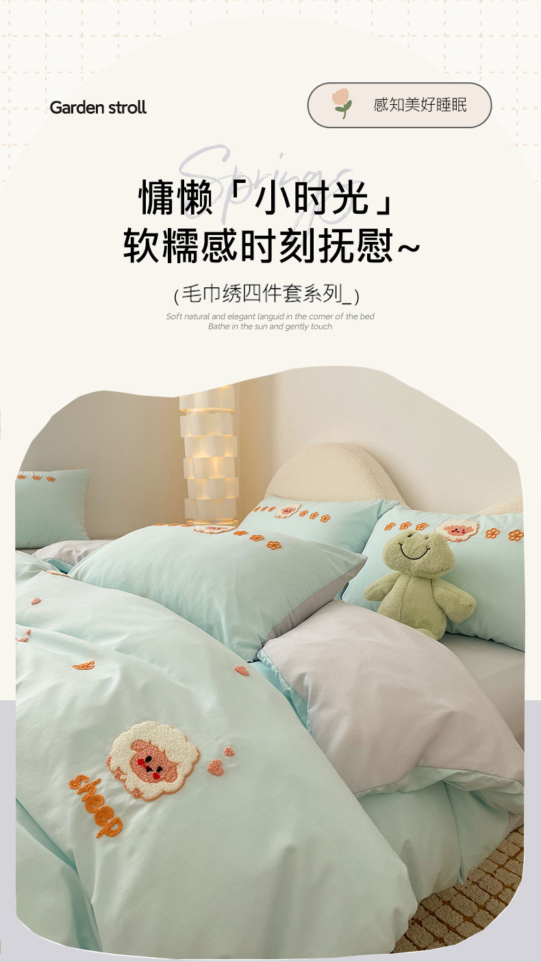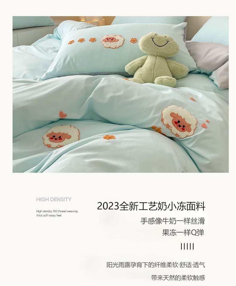 商品名称:潮邦 2025全新升级面料【奶小冻】春夏毛巾绣四件套 羊咩咩