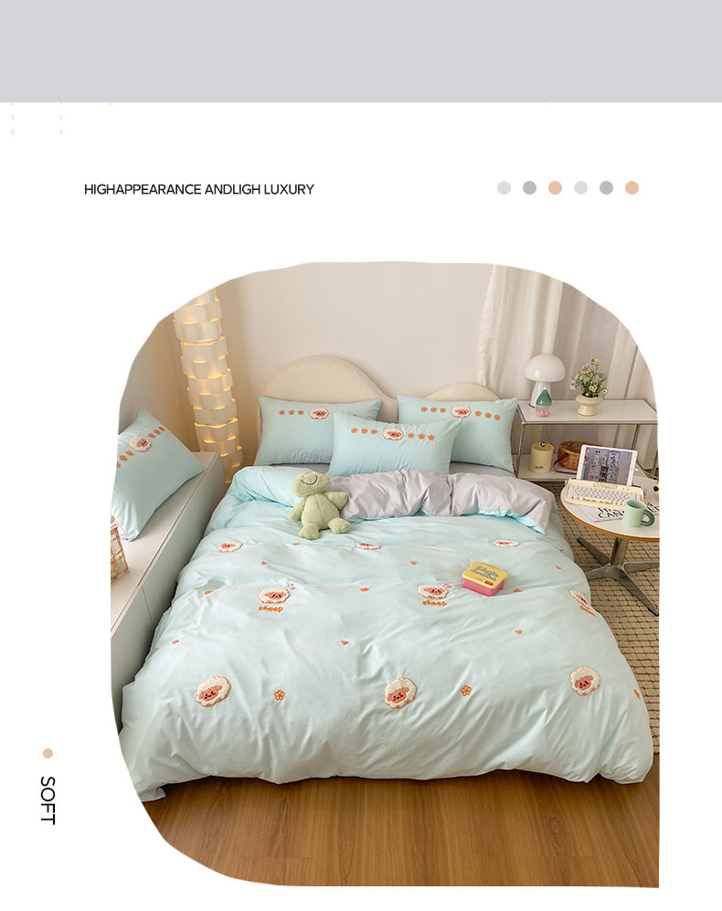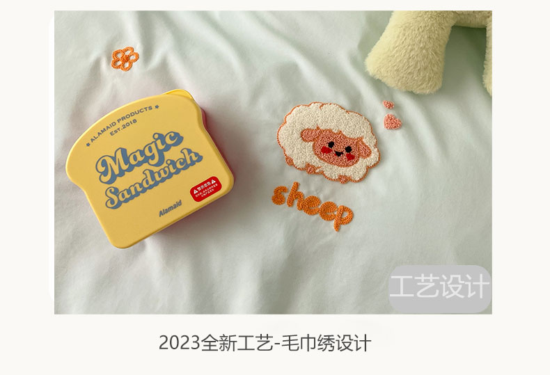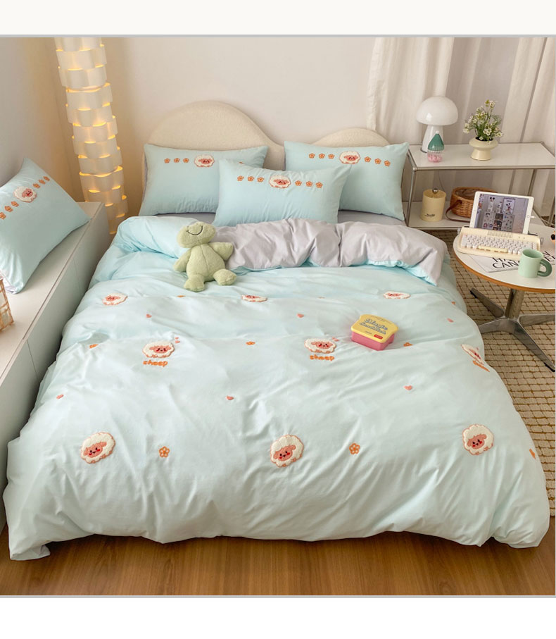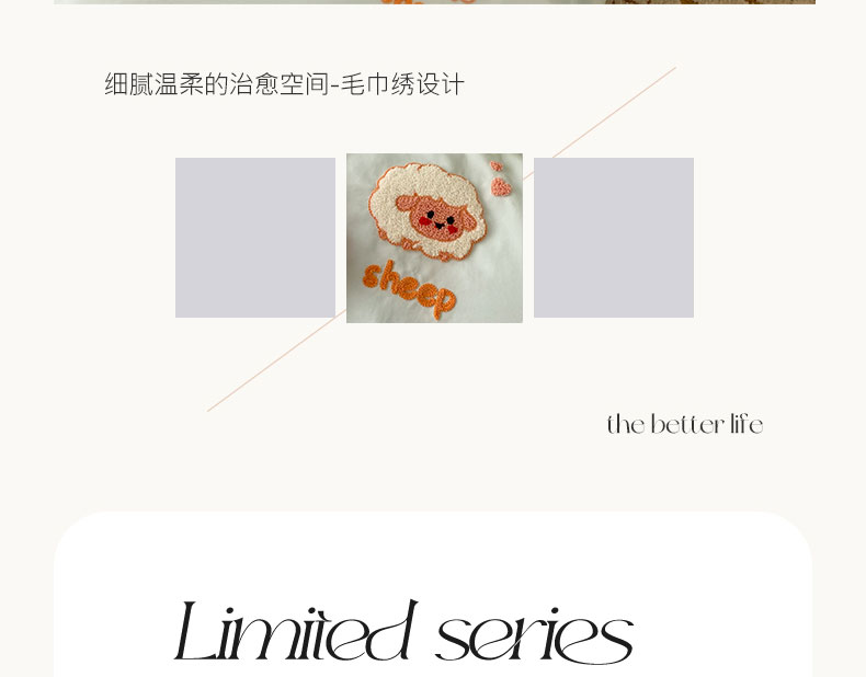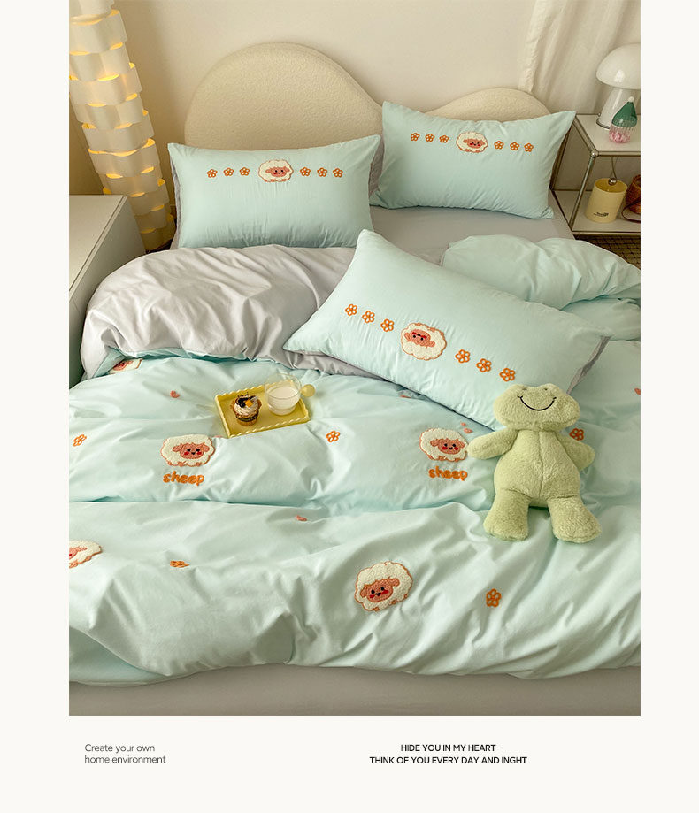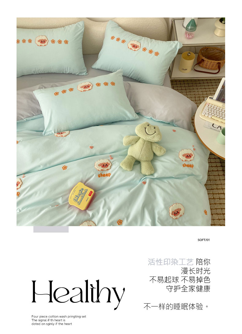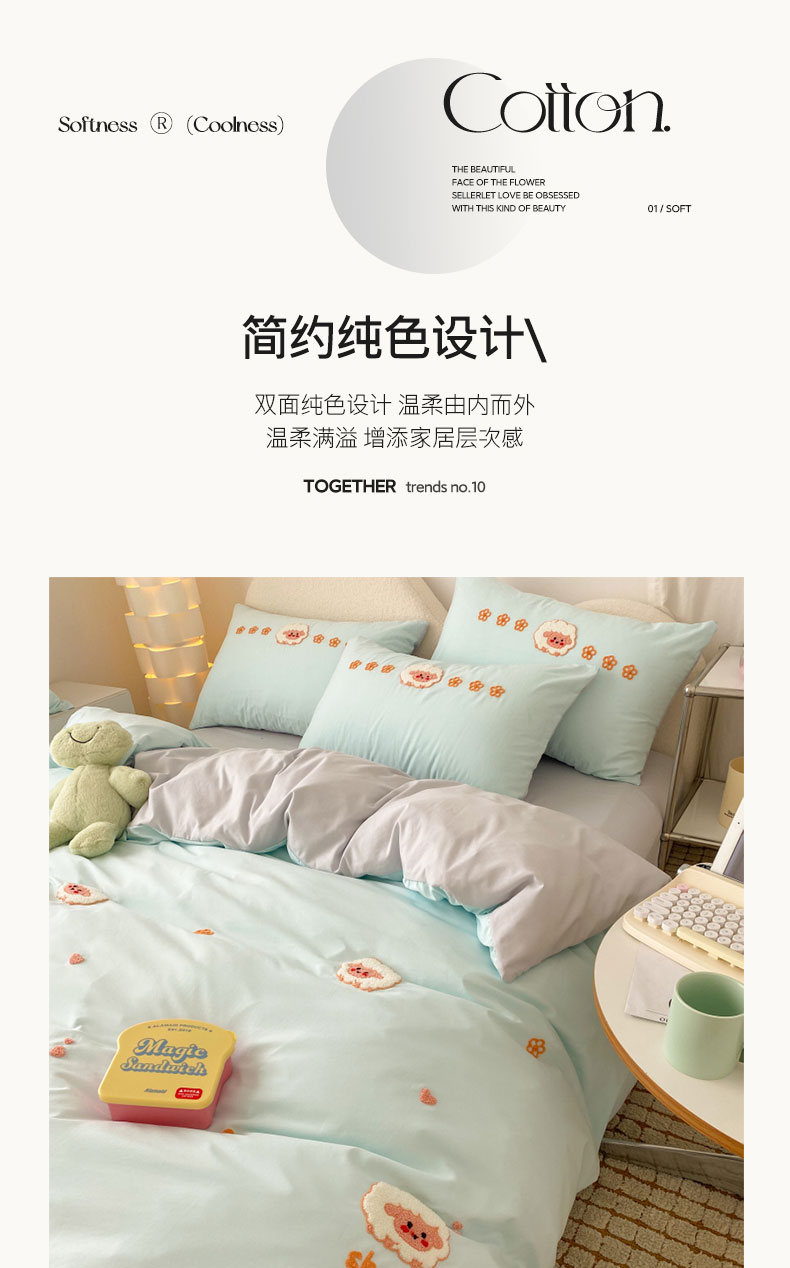 商品名称:潮邦 2025全新升级面料【奶小冻】春夏毛巾绣四件套 羊咩咩