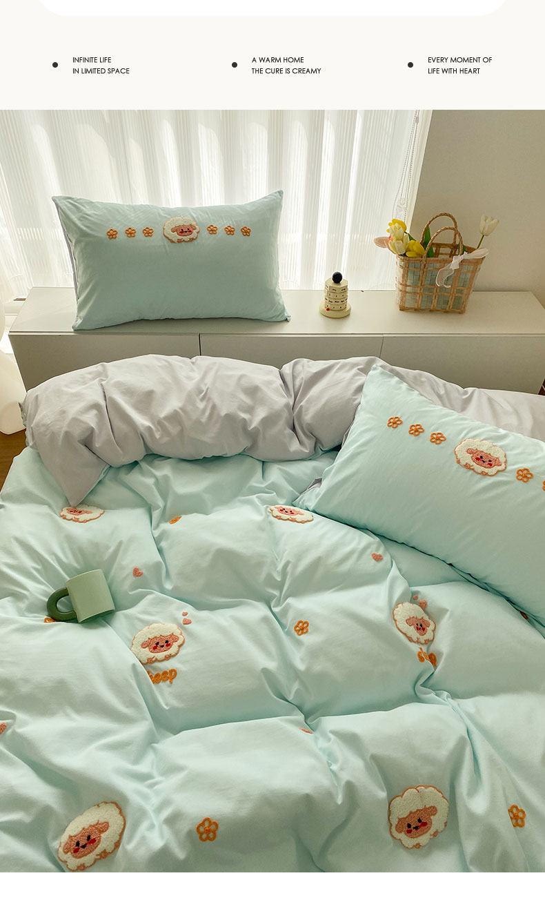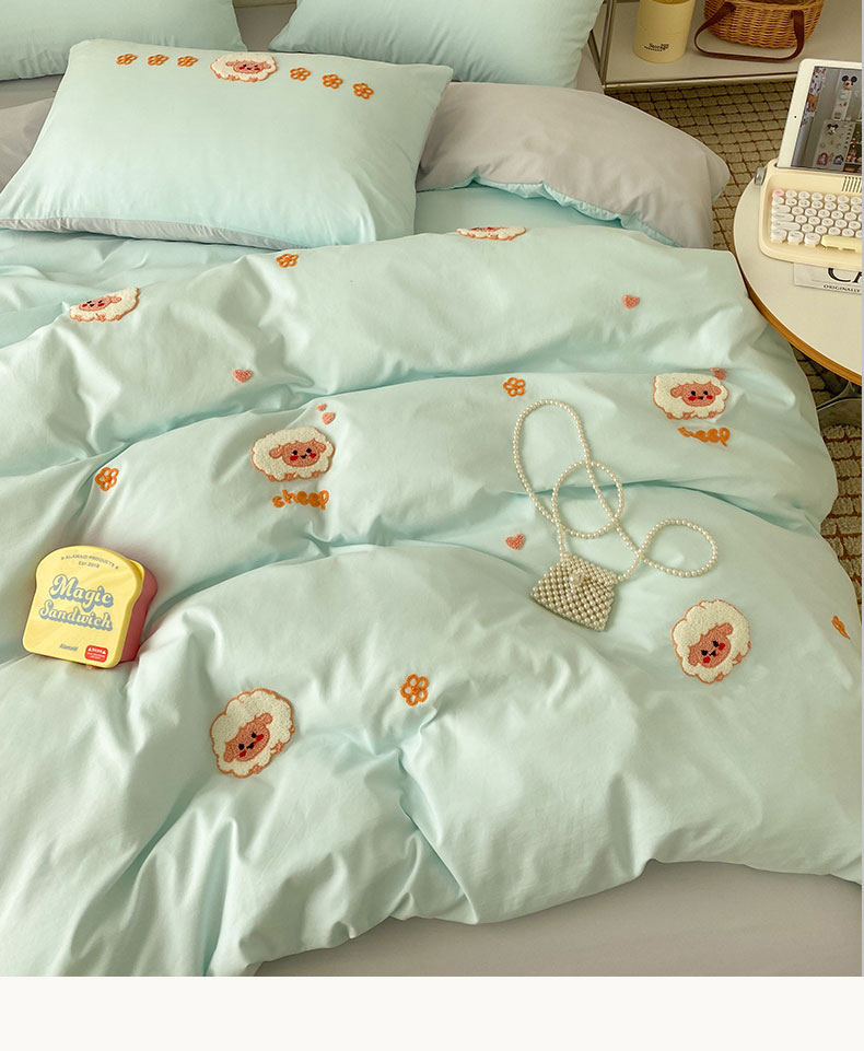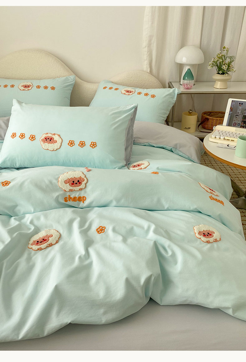 潮邦 2025全新升级面料【奶小冻】春夏毛巾绣四件套 羊咩咩