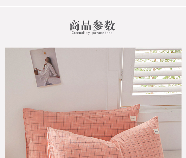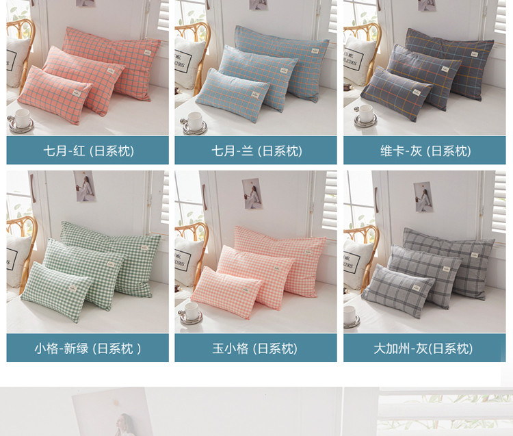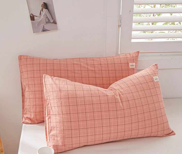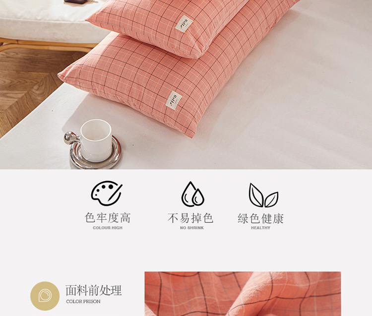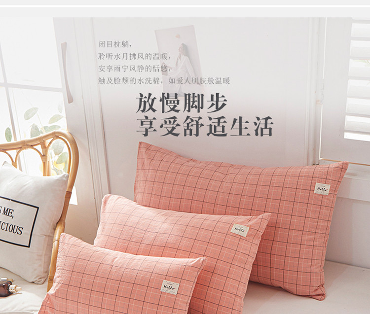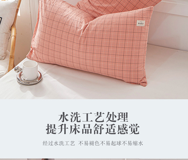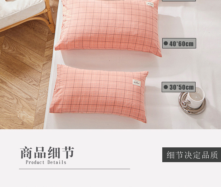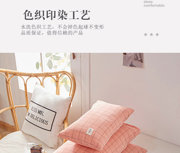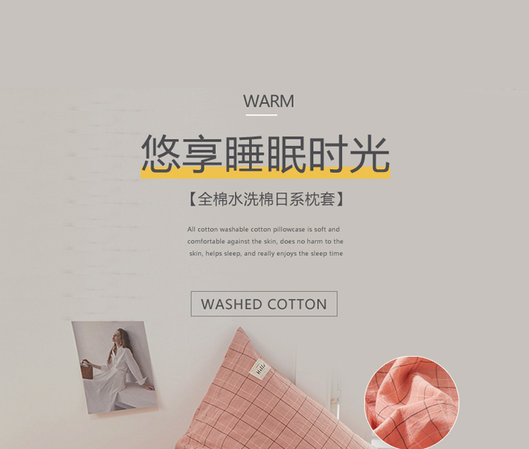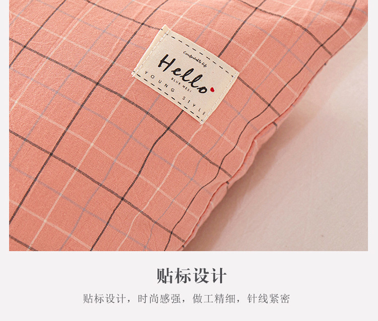 商品名称:眠优居 全棉色织水洗棉日系枕套【口袋枕】 格里-粉(日系枕)