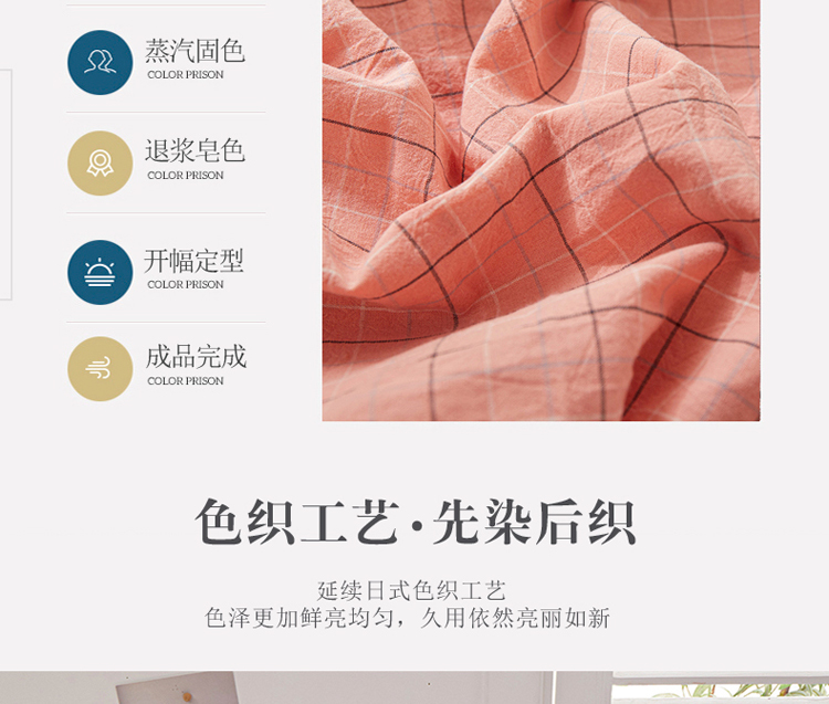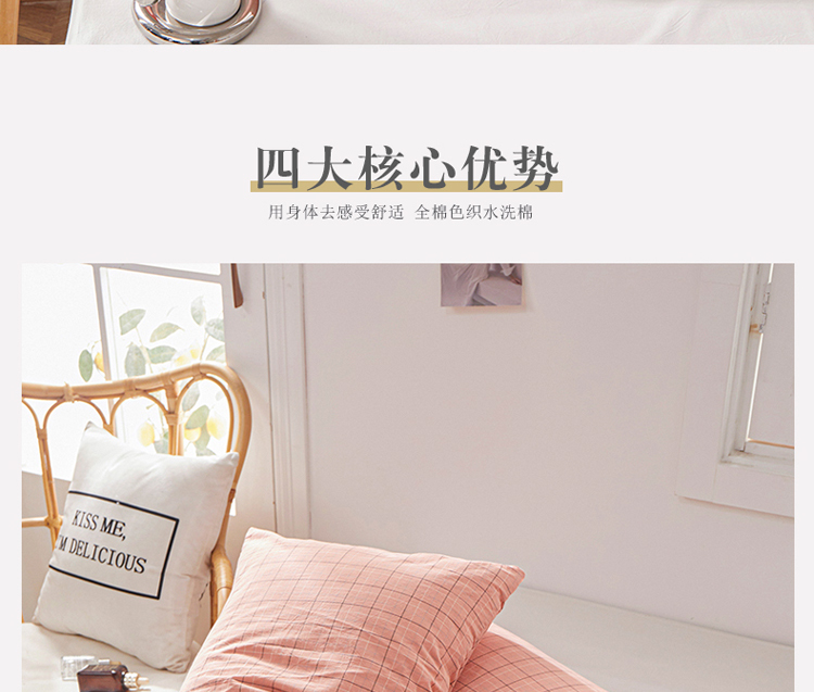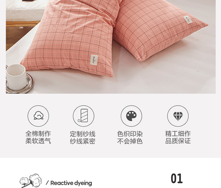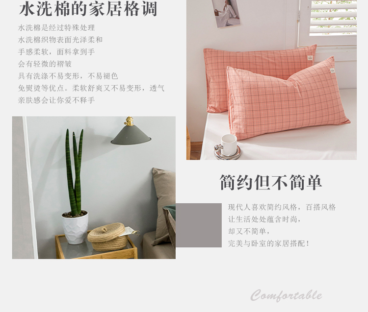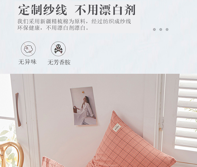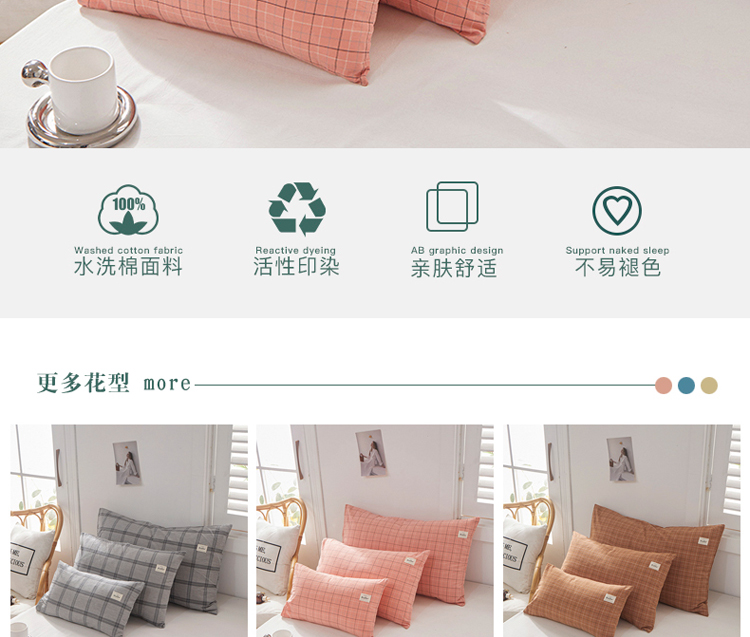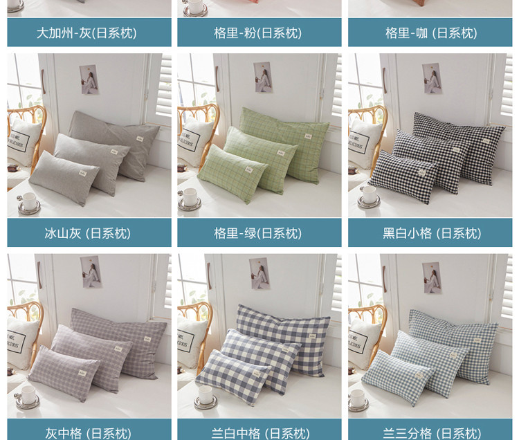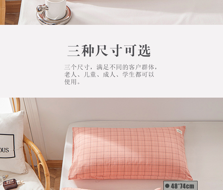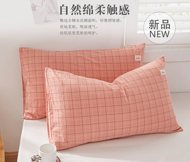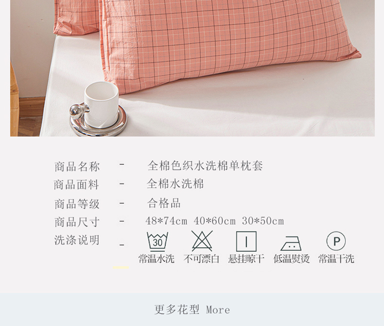 商品名称:眠优居 全棉色织水洗棉日系枕套【口袋枕】 格里-粉(日系枕)