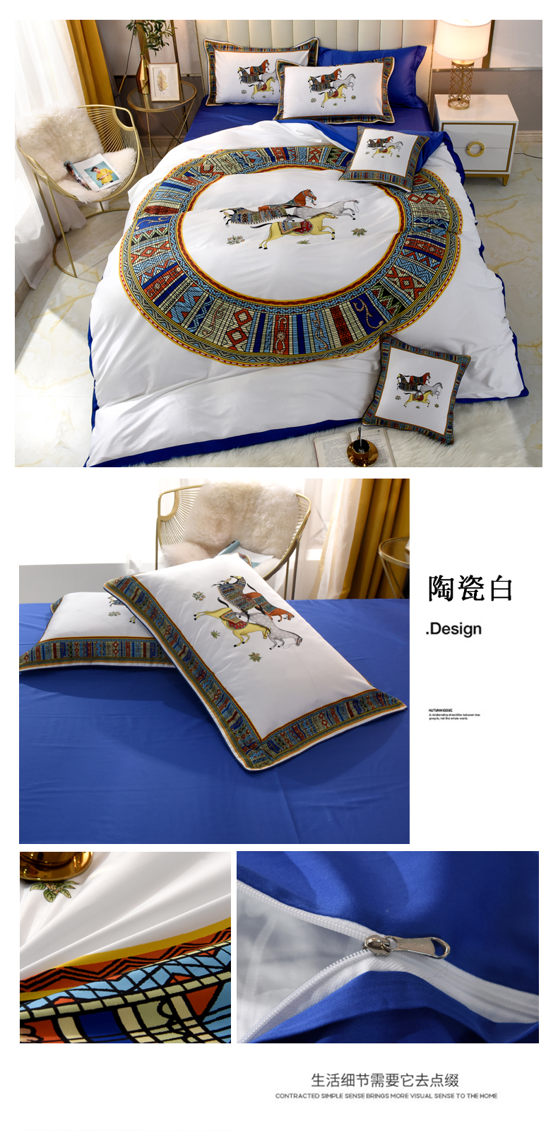 (总)爵仕2023高端60支埃及长绒棉四件套,H,宝蓝,贵族蓝,皇家,爵士黄,玲珑白,绅士黄,陶瓷白