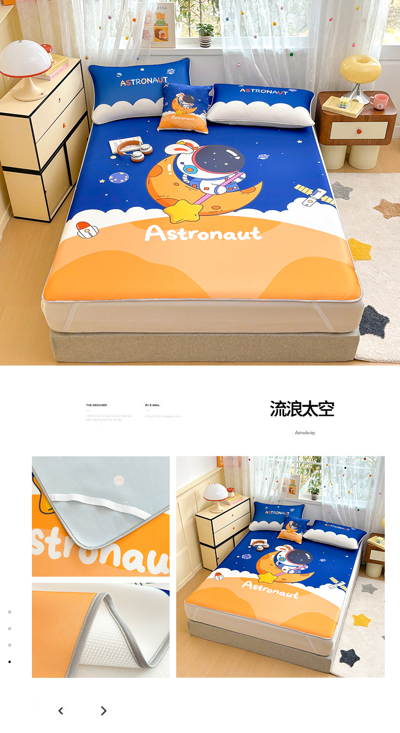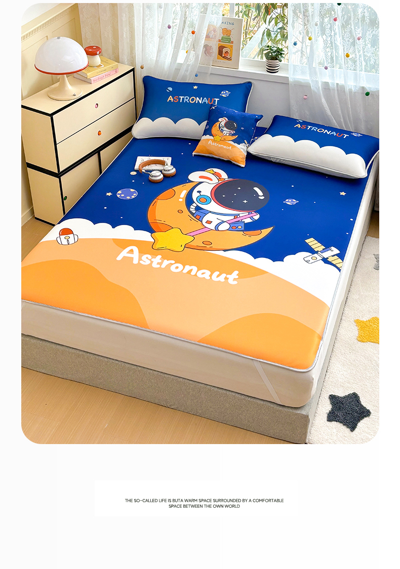 (总)ds生活馆 2025新款儿童纯棉精梳棉系列单床笠,森林巴士,草莓生活,海底世界,花朵小鸭,滑板巴拉,水果恐龙,太空库洛米,玩具玉桂狗,小狗熊猫,星星恐龙白,星星恐龙蓝,星星恐龙绿