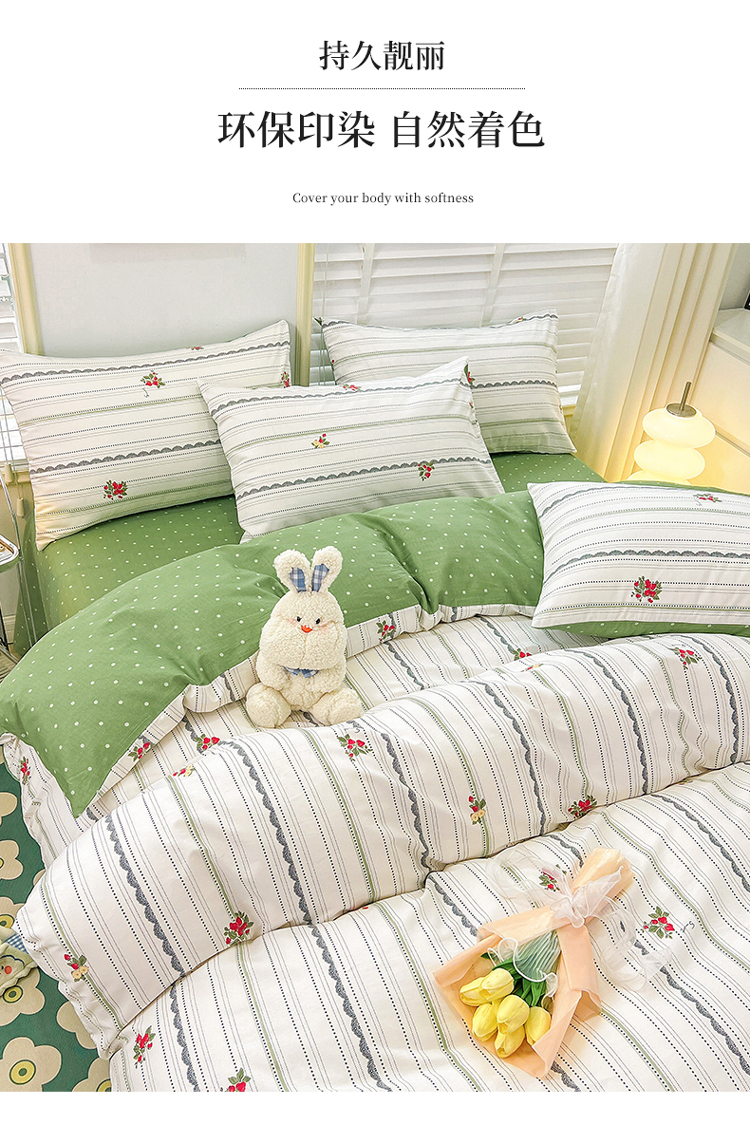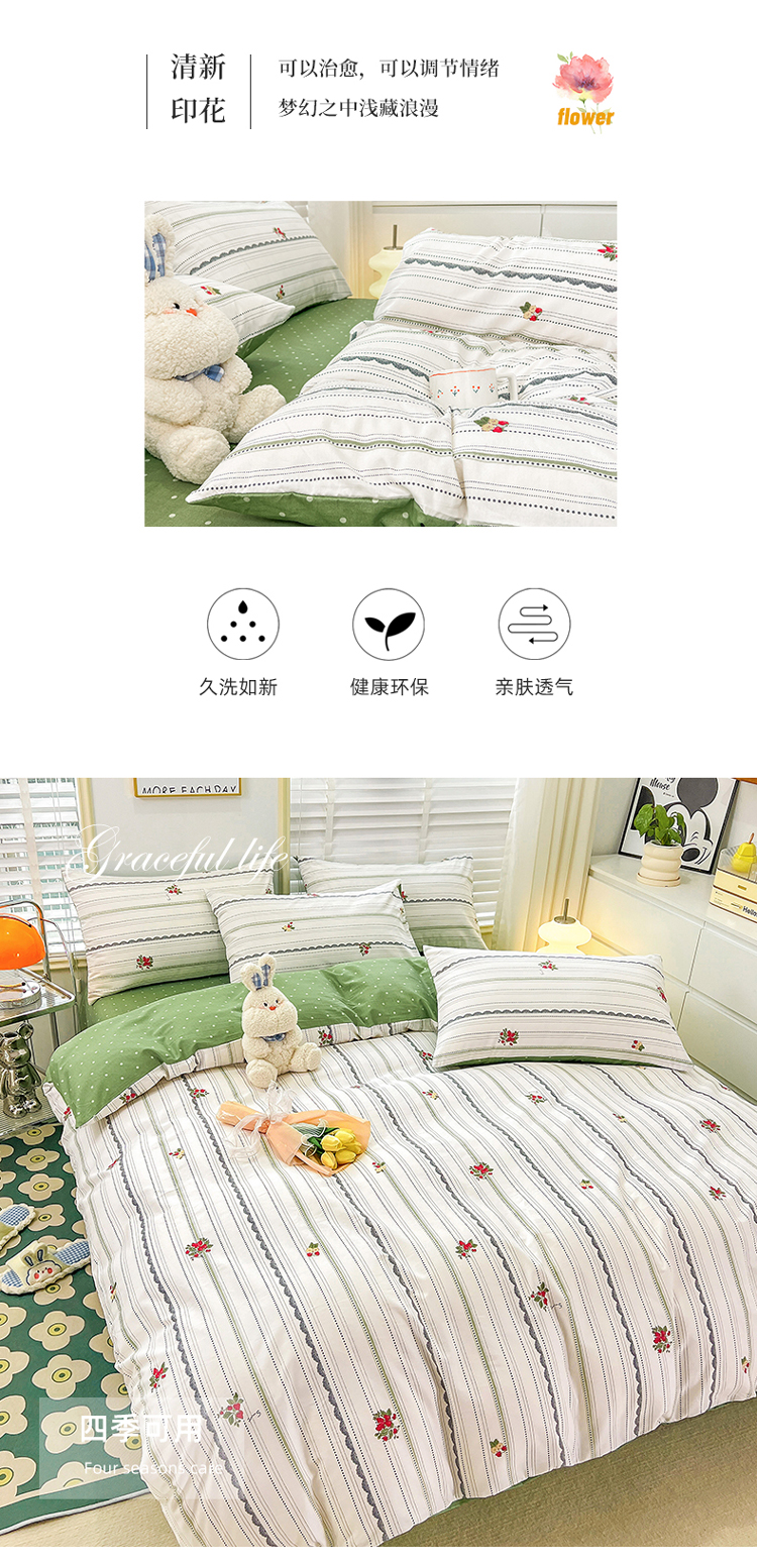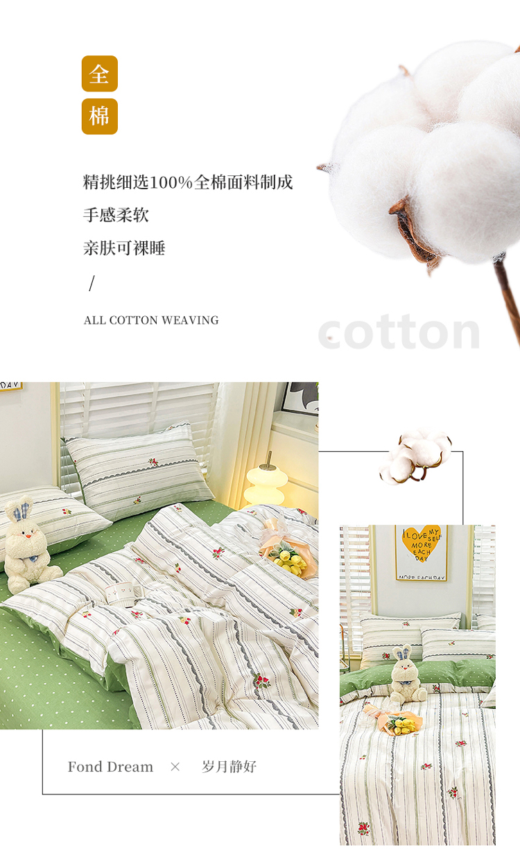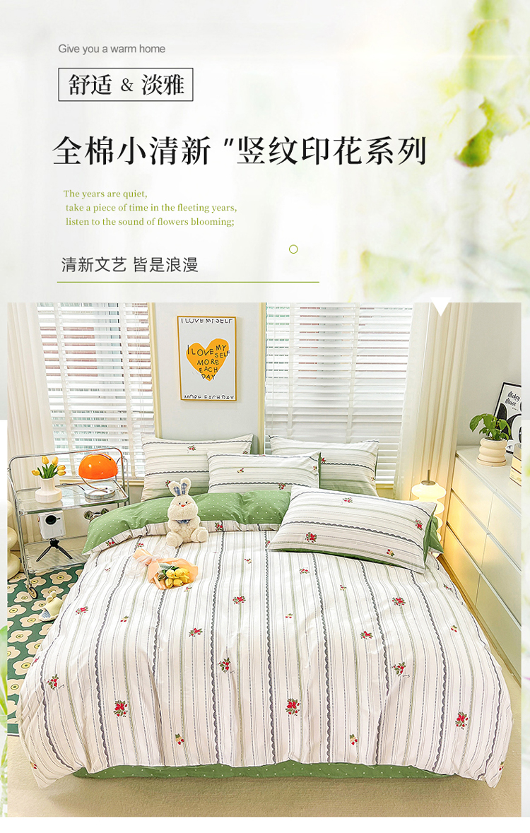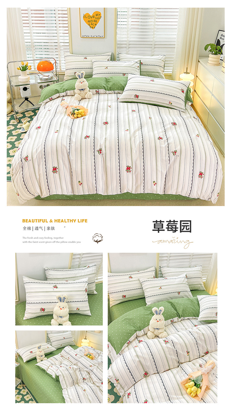 商品名称:捌月 2023新款13372全棉四件套竖纹印花系列 草莓园