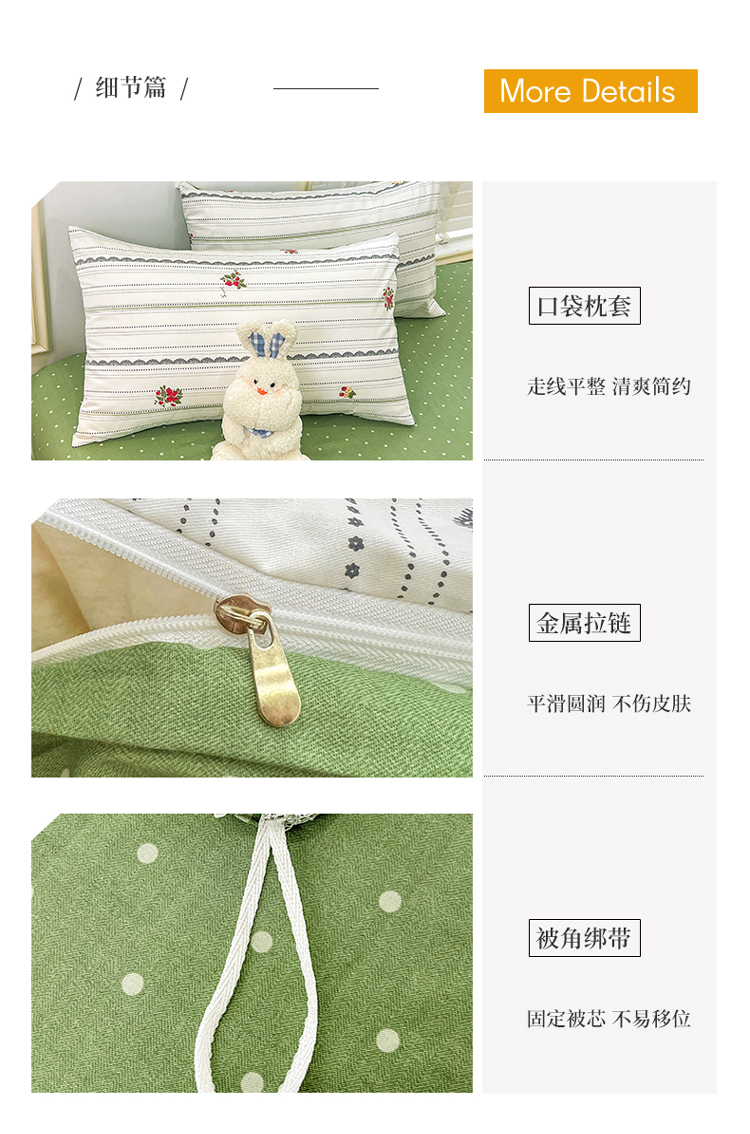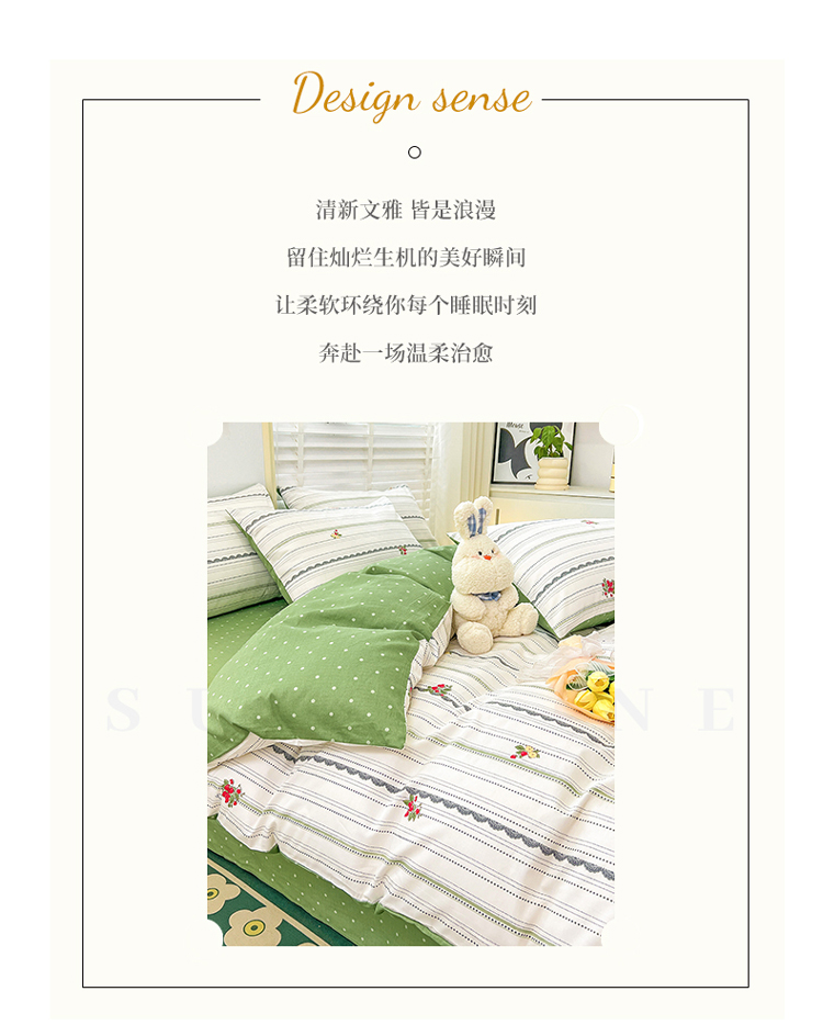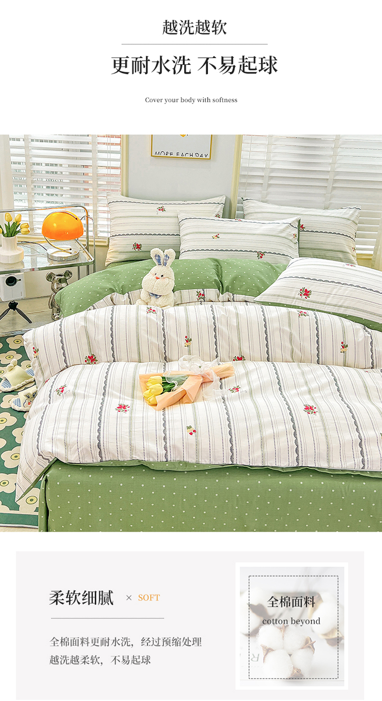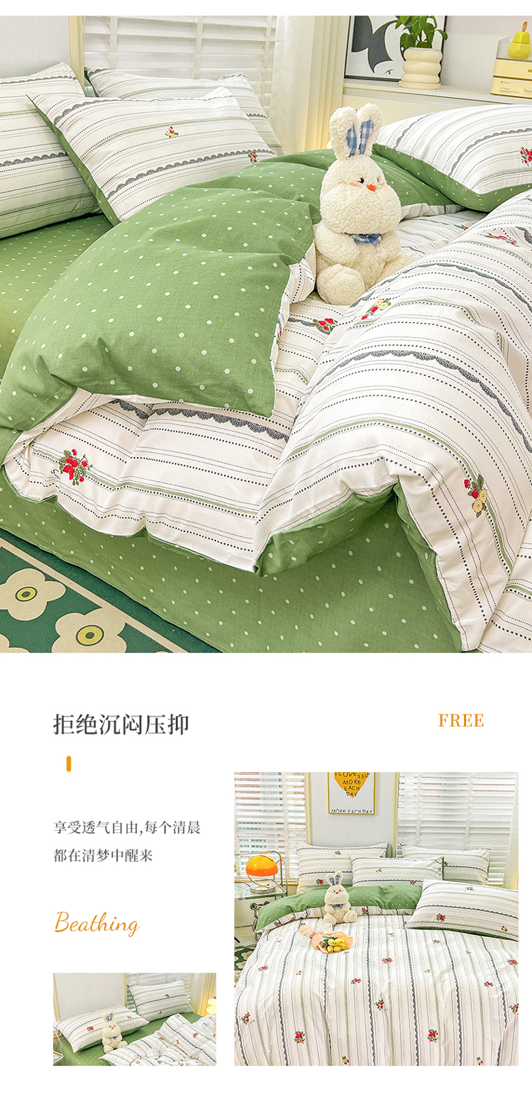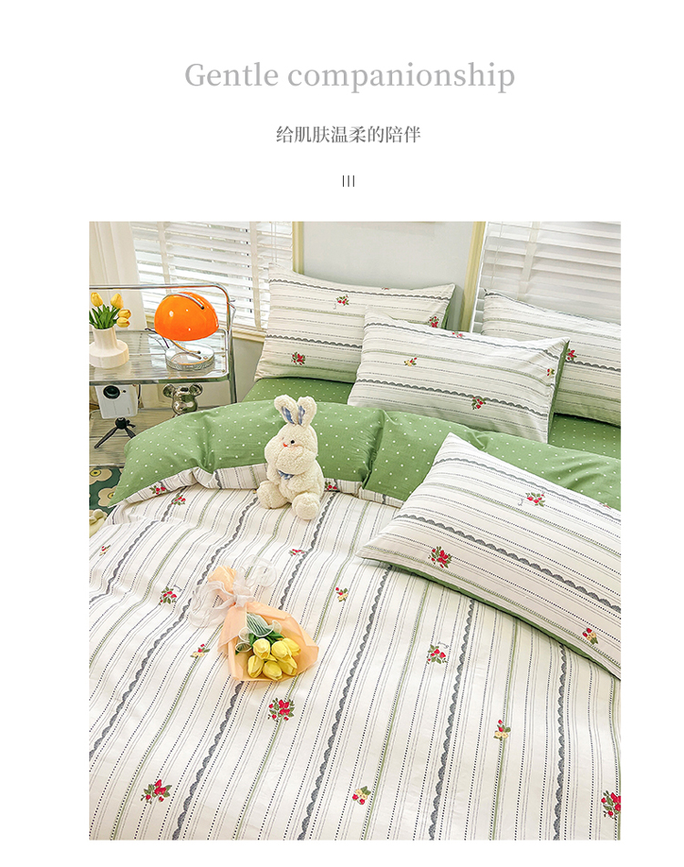 商品名称:捌月 2023新款13372全棉四件套竖纹印花系列 草莓园