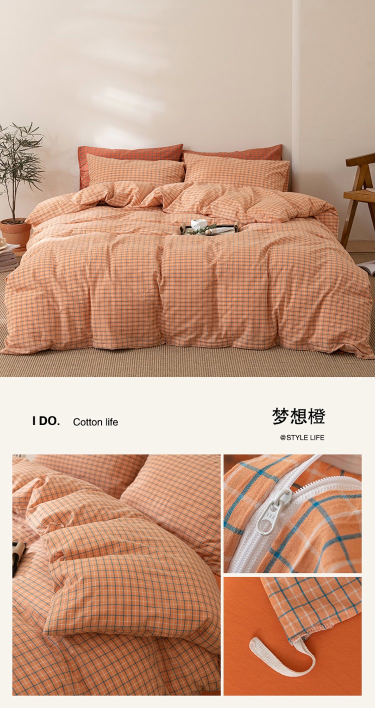 (总)棉邦 2023新款A类全棉色织水洗棉四件套,灰密条,极黑细条,橘红小格,洛桑粉,洛桑桔,梦想橙,梦想桔,米密条,雅思粉,雅思灰,雅思桔,中古卡其