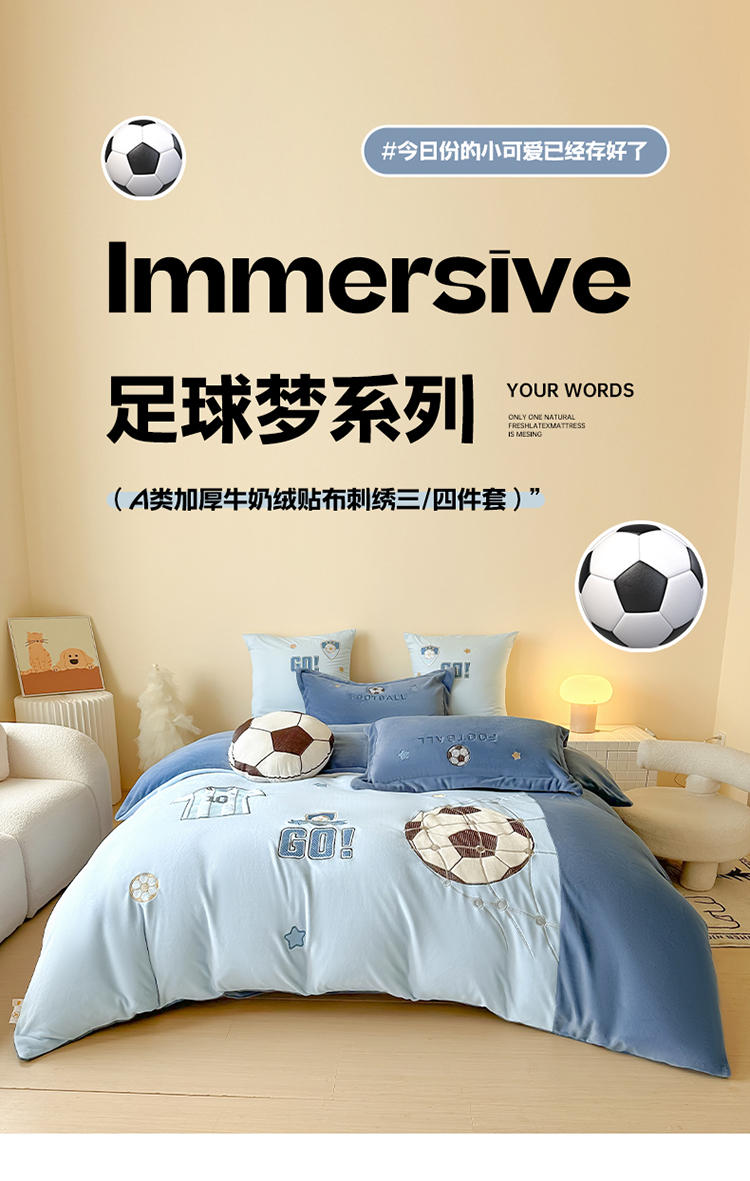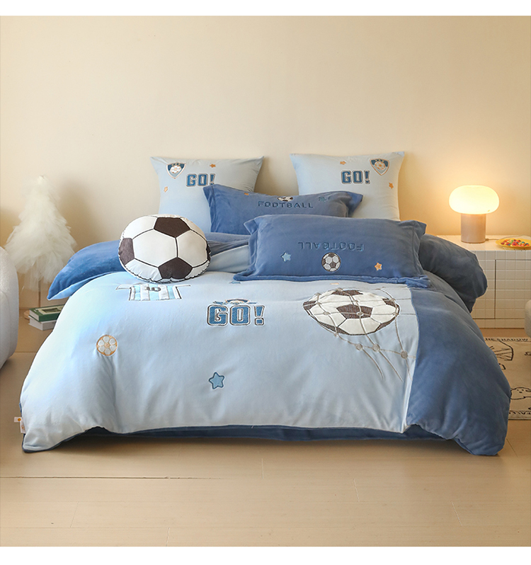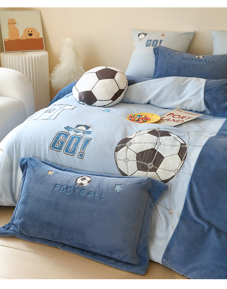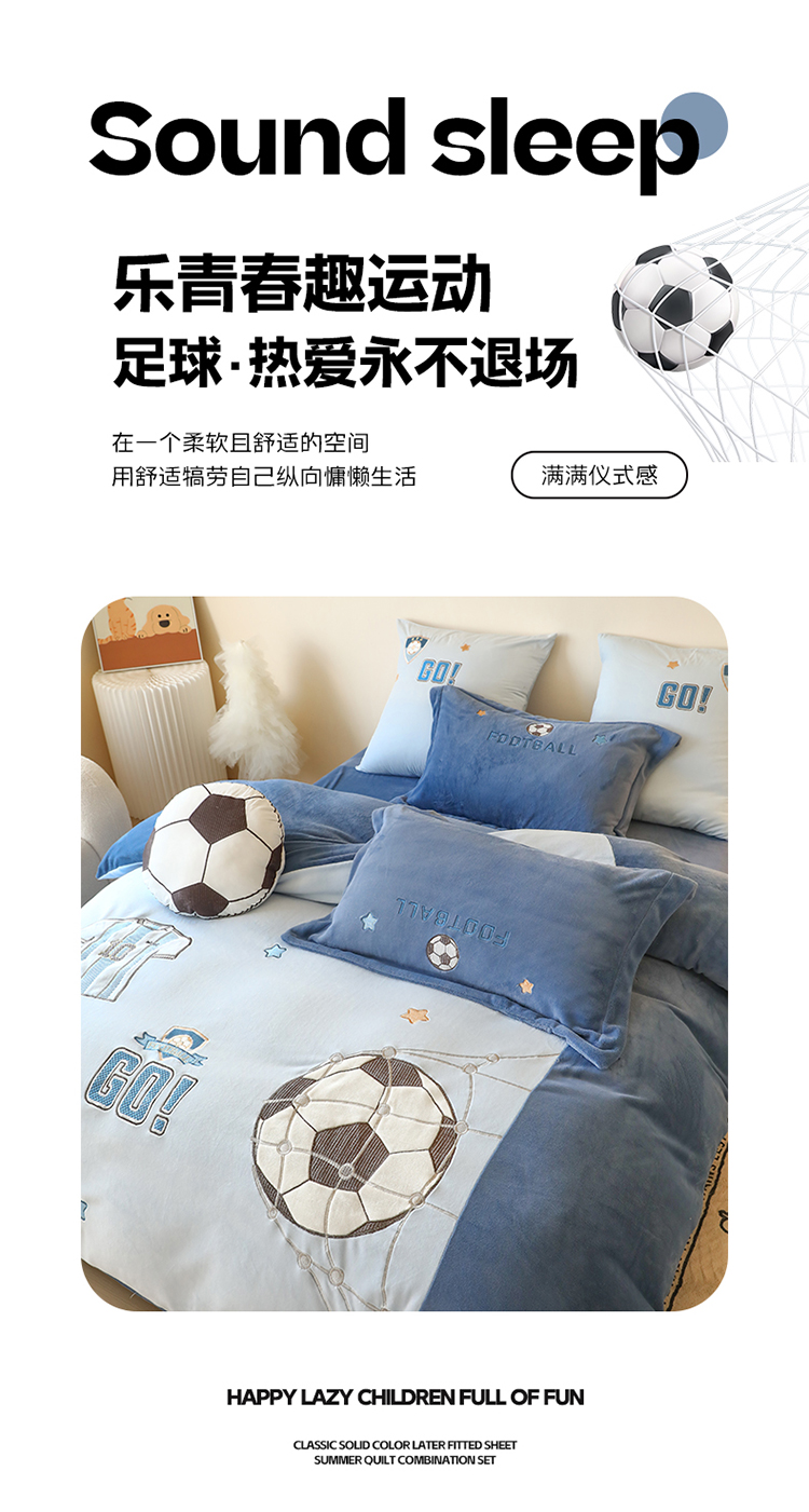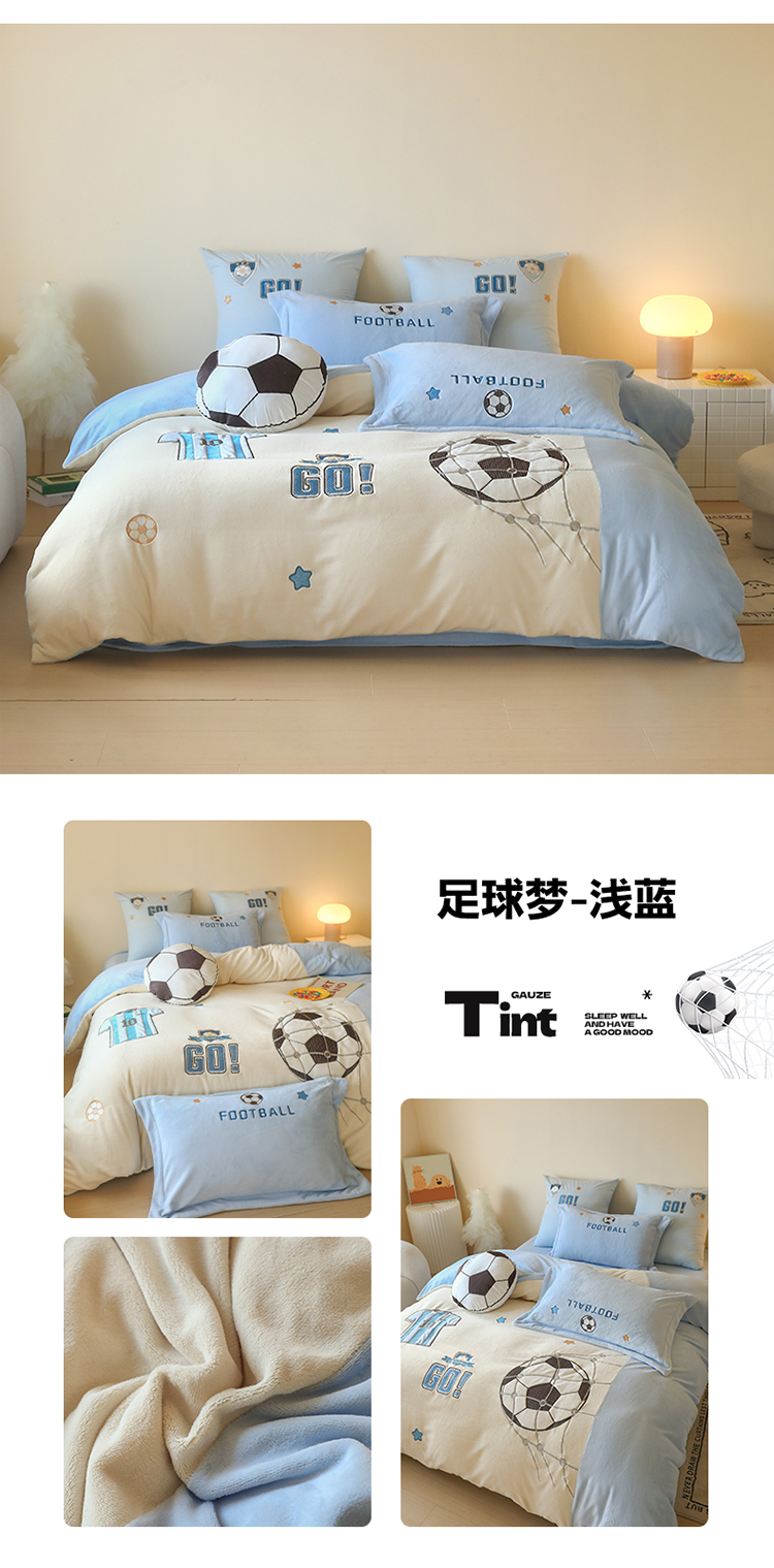 (总)2025新款A类加厚足球篮球卡通贴布绣牛奶绒四件套冬季儿童三件套床单床笠保暖套件,足球梦-英伦蓝,足球梦-浅蓝,挚爱篮球-浅蓝,挚爱篮球-英伦蓝,挚爱篮球-米色
