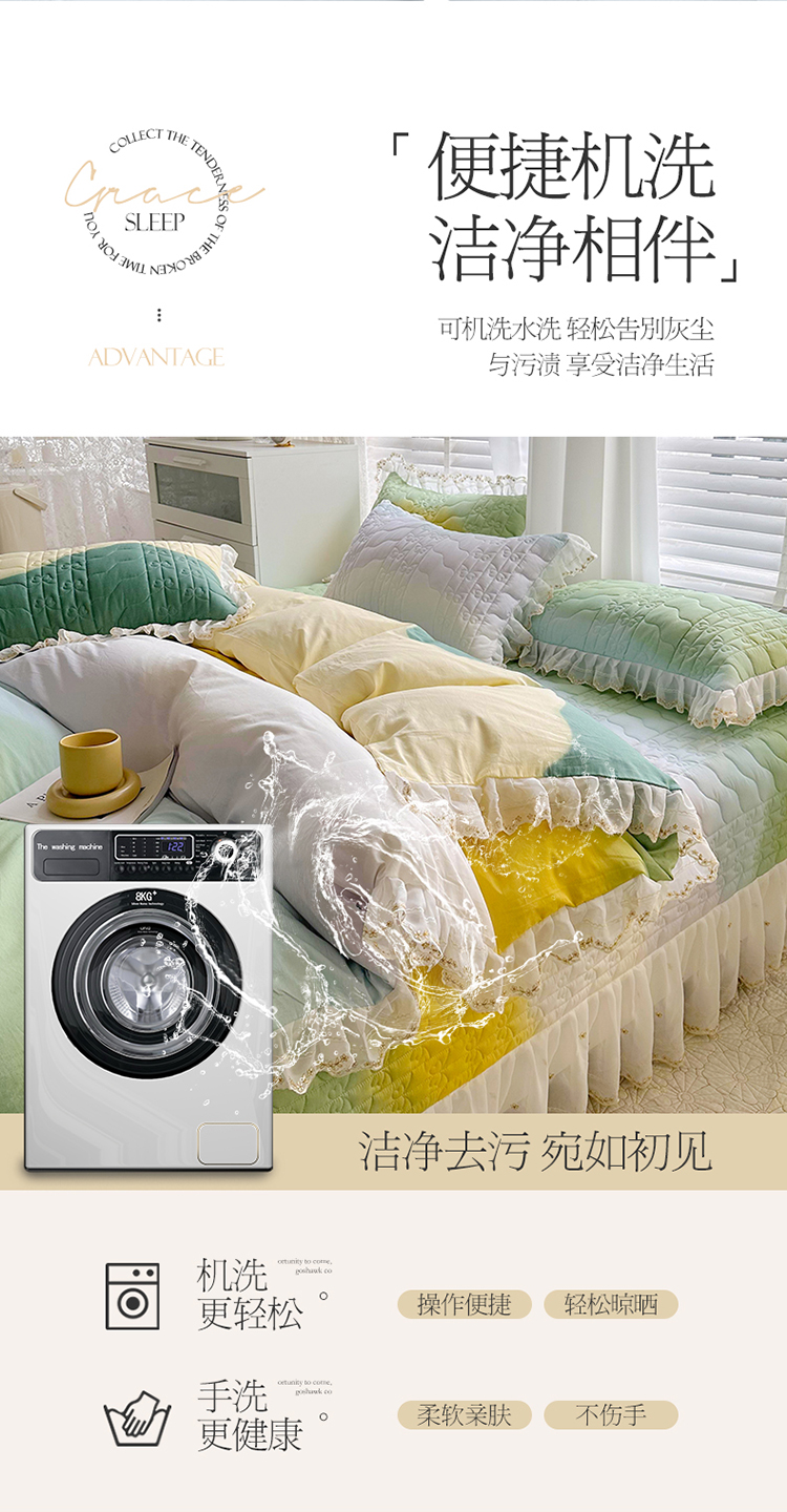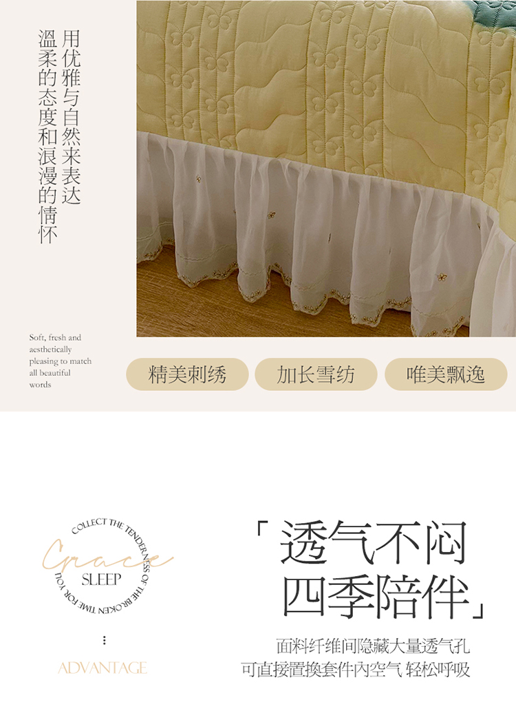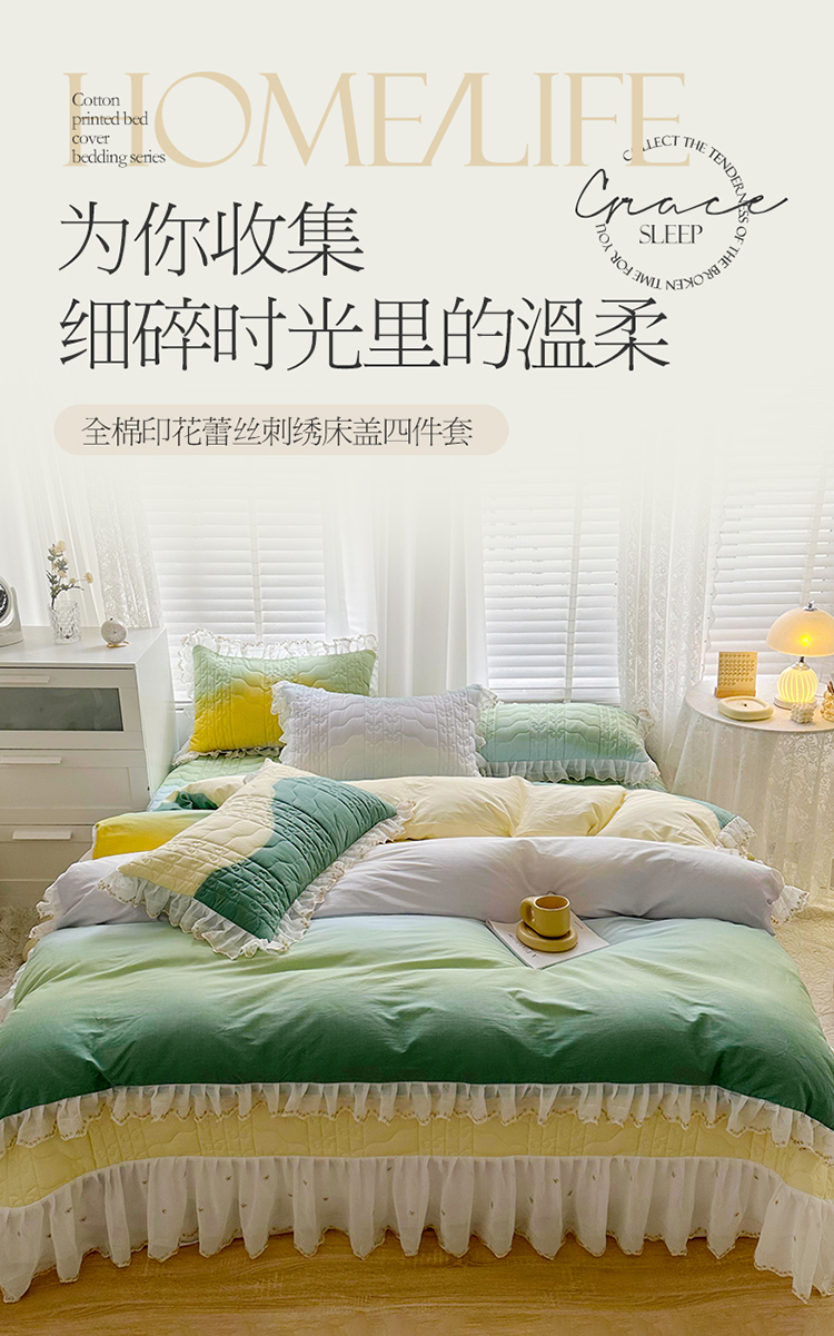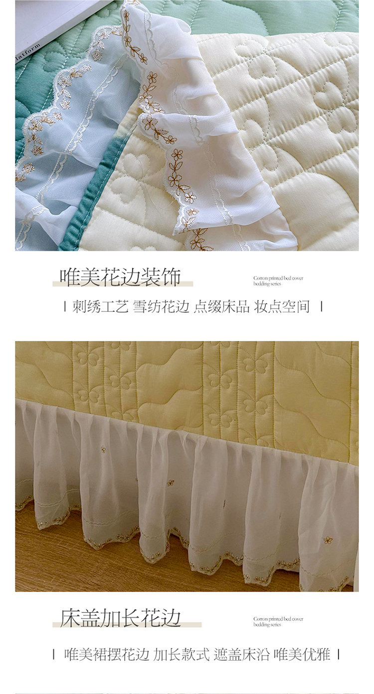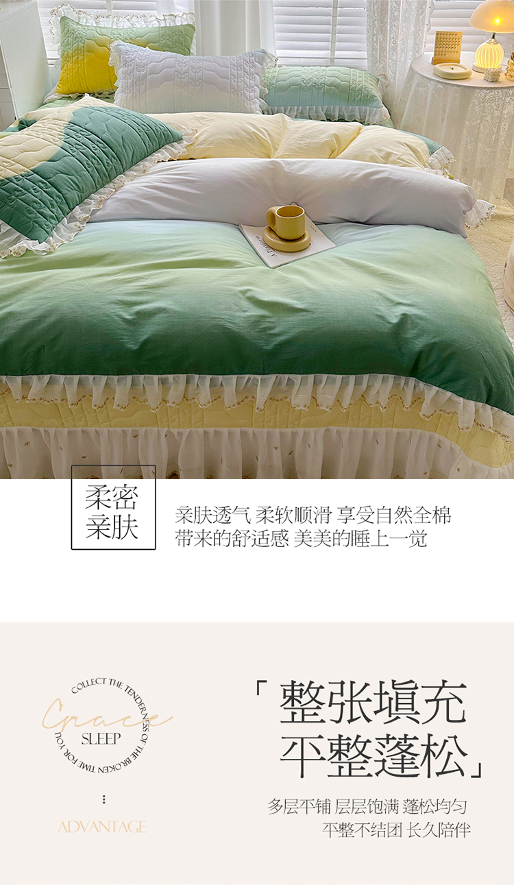 • 91家纺网 家纺一手货源 找家纺 宜凡 2023新款全棉蕾丝刺绣床盖四件套(单层被套) 黄绿