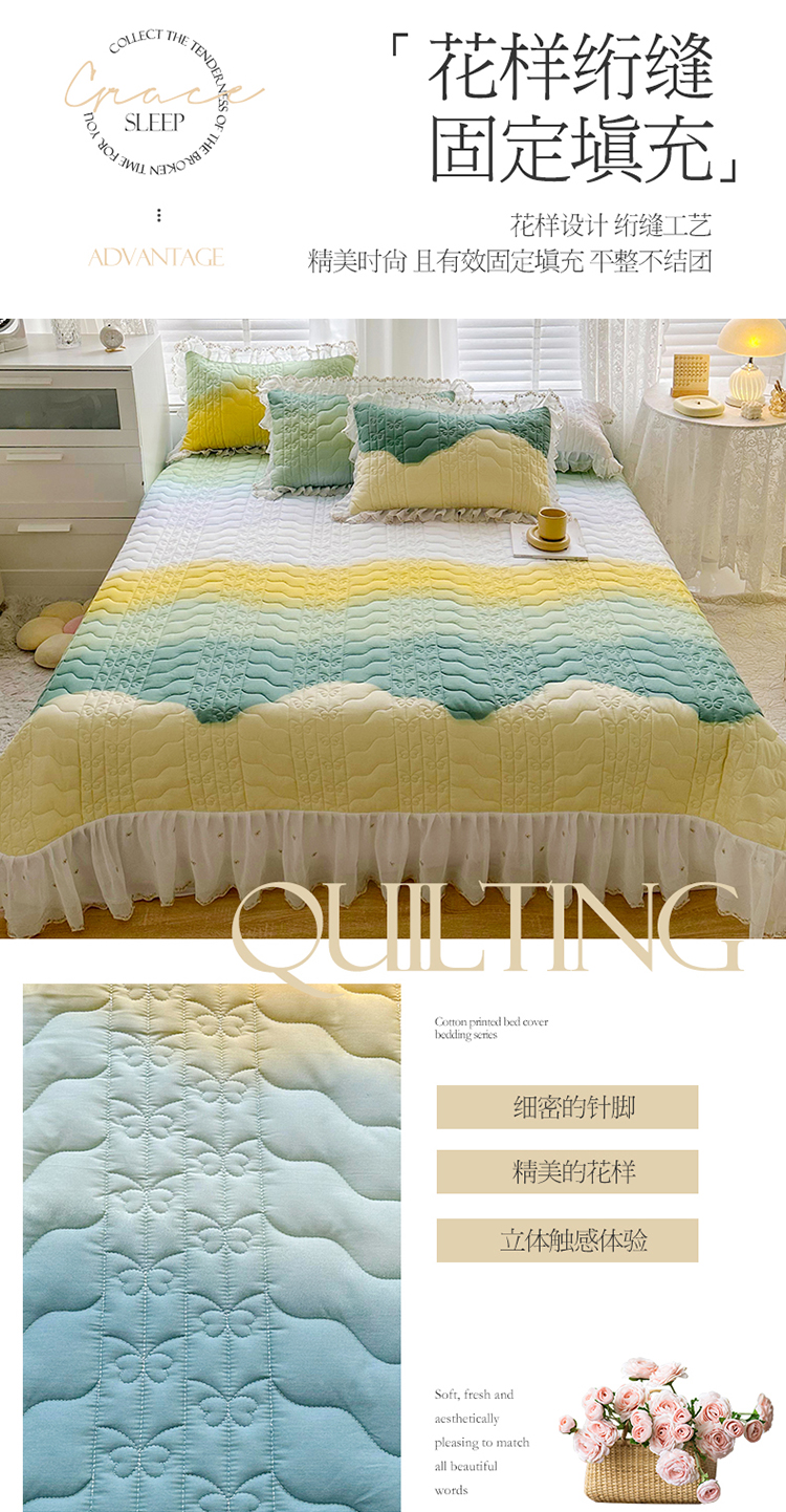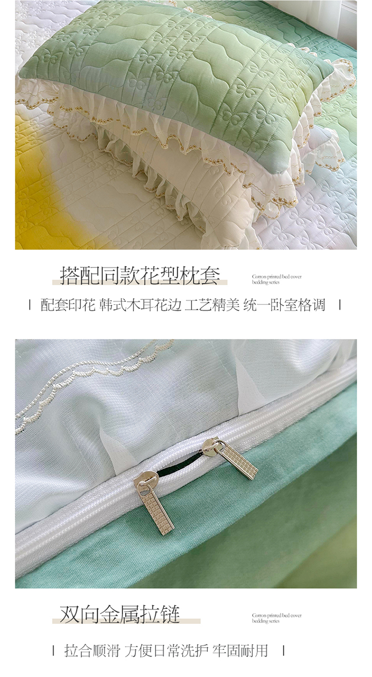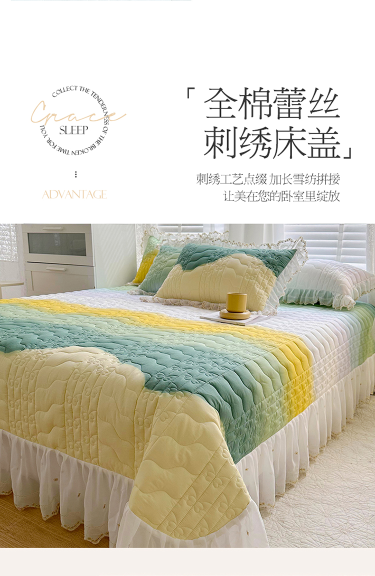 宜凡 2023新款全棉蕾丝刺绣床盖四件套(单层被套) 黄绿