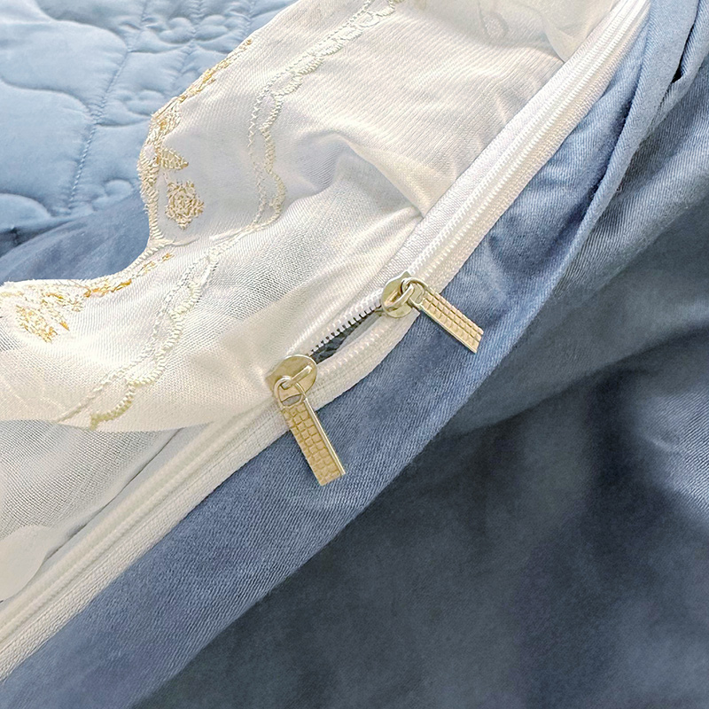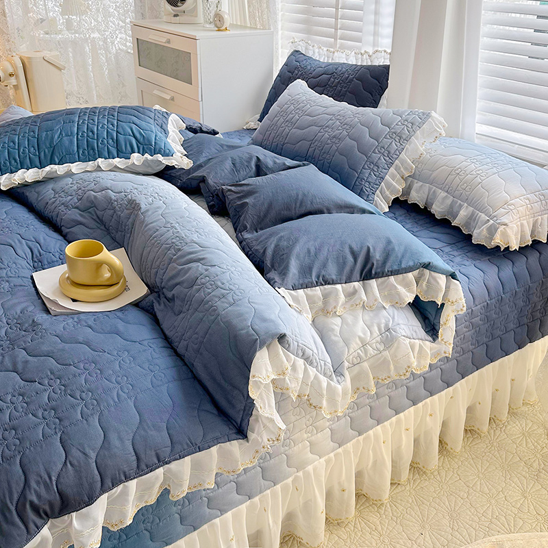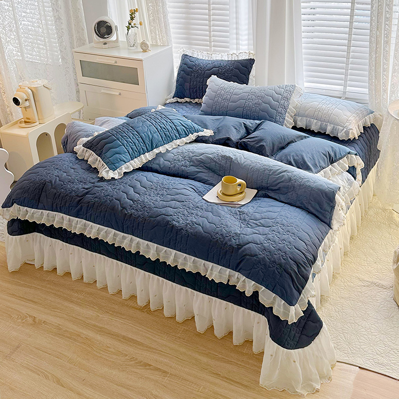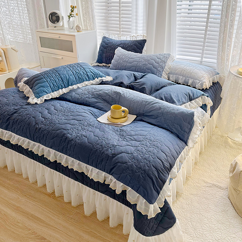 • 91家纺网 家纺一手货源 找家纺  2023新款全棉蕾丝刺绣床盖四件套(夹棉被套) 藏蓝