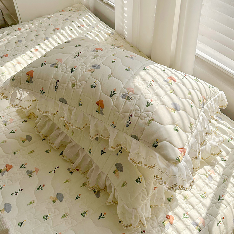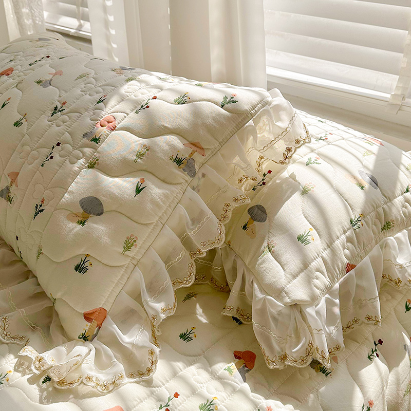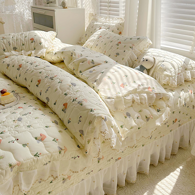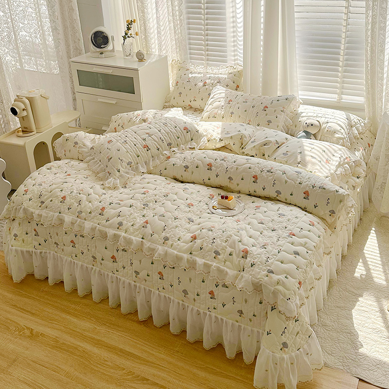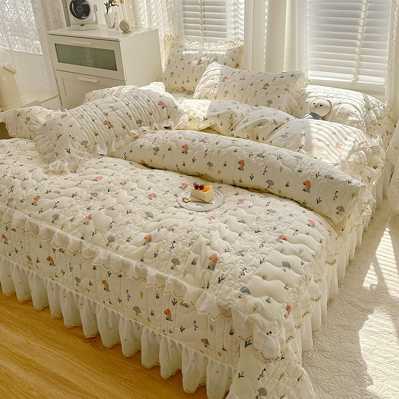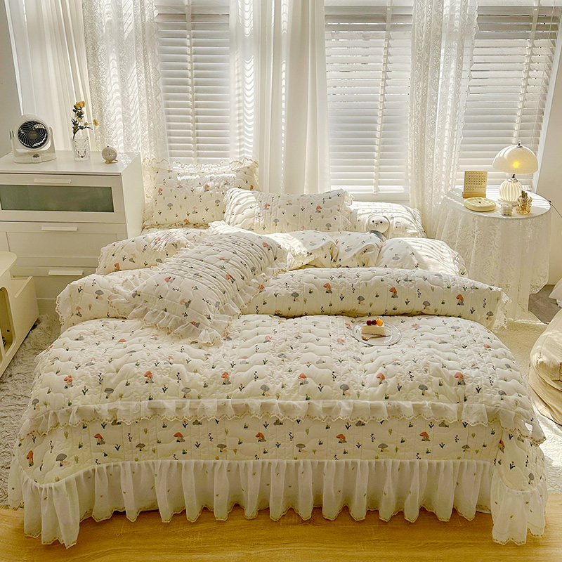 2023新款全棉蕾丝刺绣床盖四件套(夹棉被套) 蘑菇伞