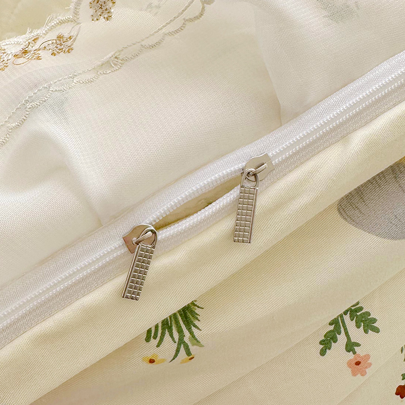 • 91家纺网 家纺一手货源 找家纺  2023新款全棉蕾丝刺绣床盖四件套(夹棉被套) 蘑菇伞