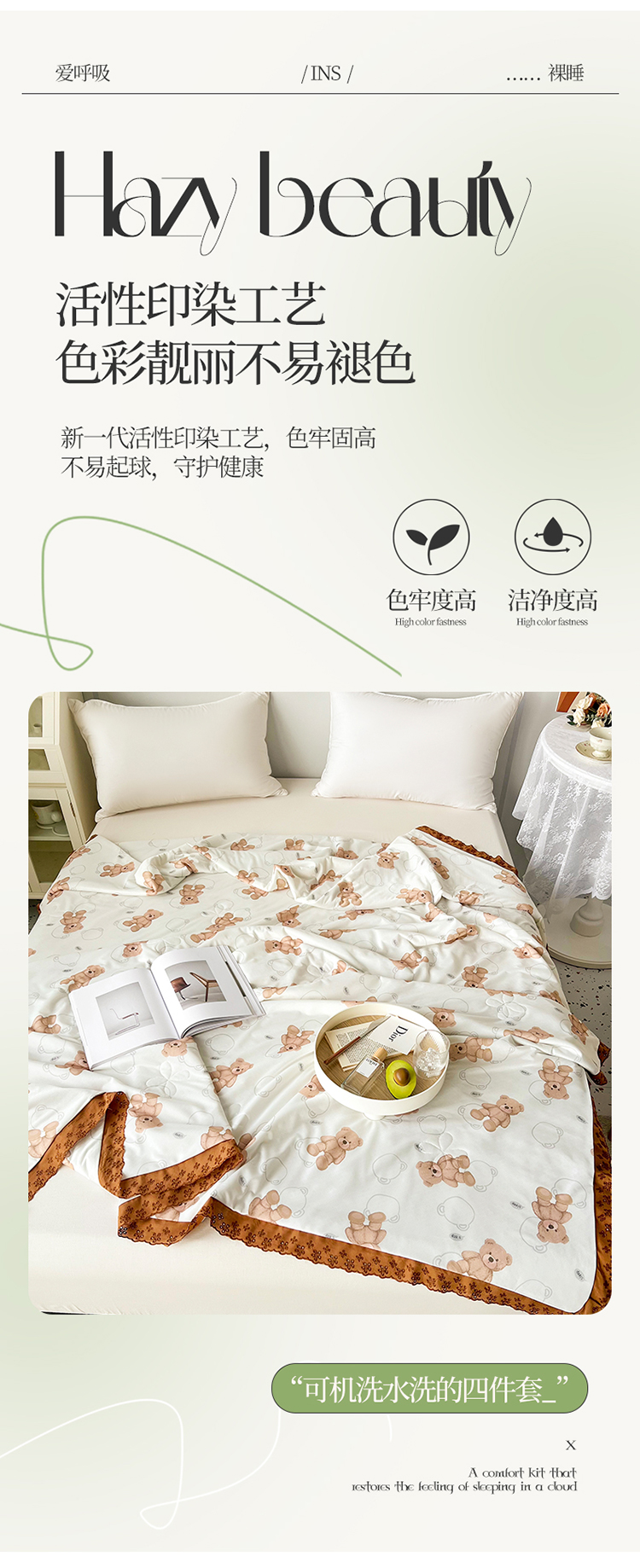 澳洲羽 2024新款A类凉感丝花边夏被 乖乖熊