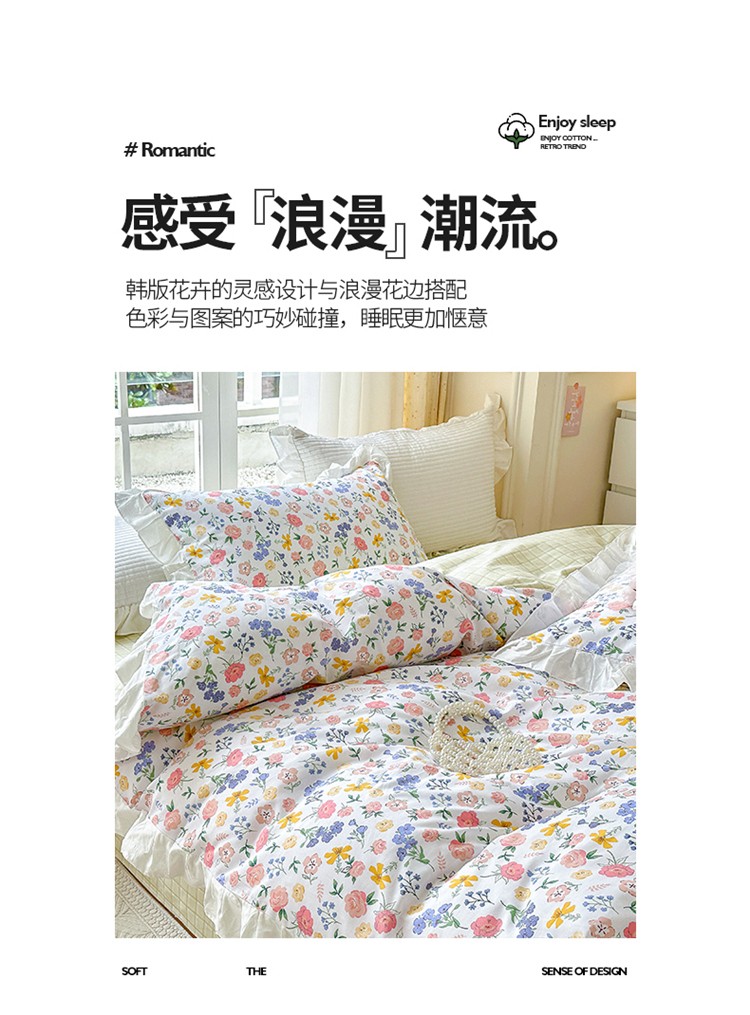 商品名称:清雅福 2024新款全棉13372韩版花边款系列四件套 初遇