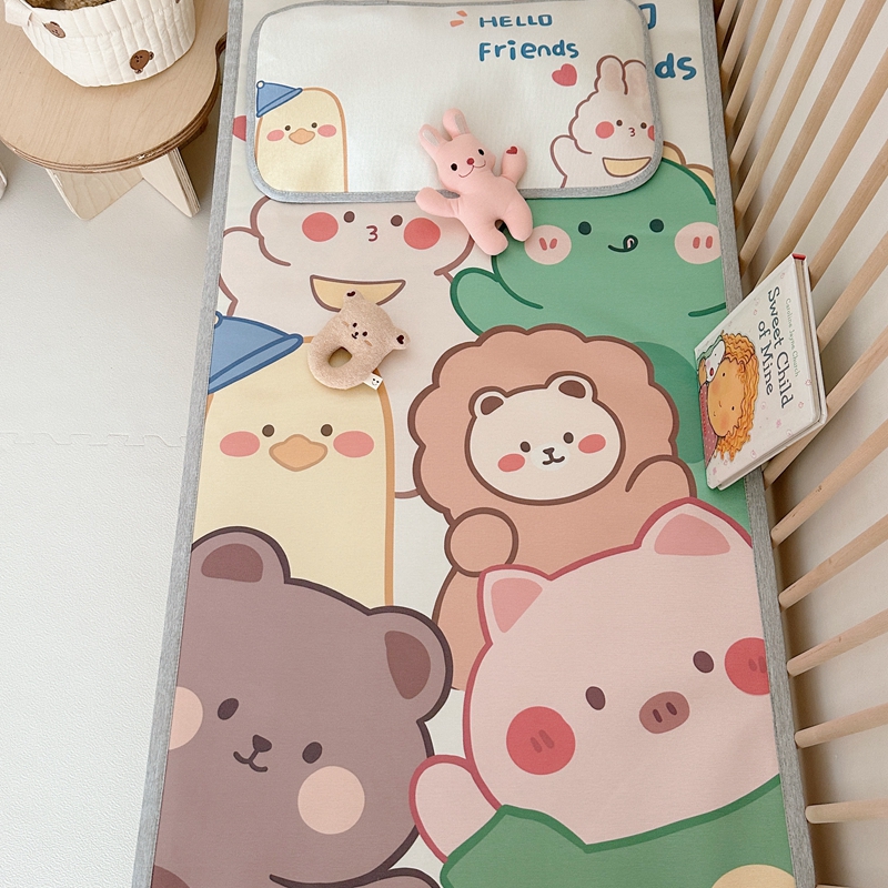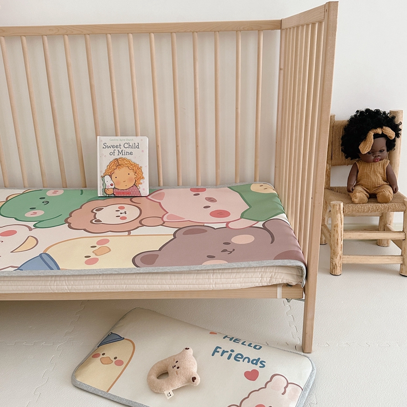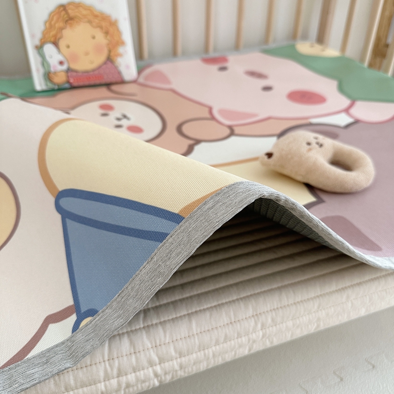 (总)橘滋 2025夏日新款高端A类原创设计婴儿童趣卡通数码印花冰丝席凉席-床席床笠,大眼熊仔,叠叠乐园,蝴蝶结兔兔,欢乐曲奇,木马小熊,太空冒险,熊猫胖达