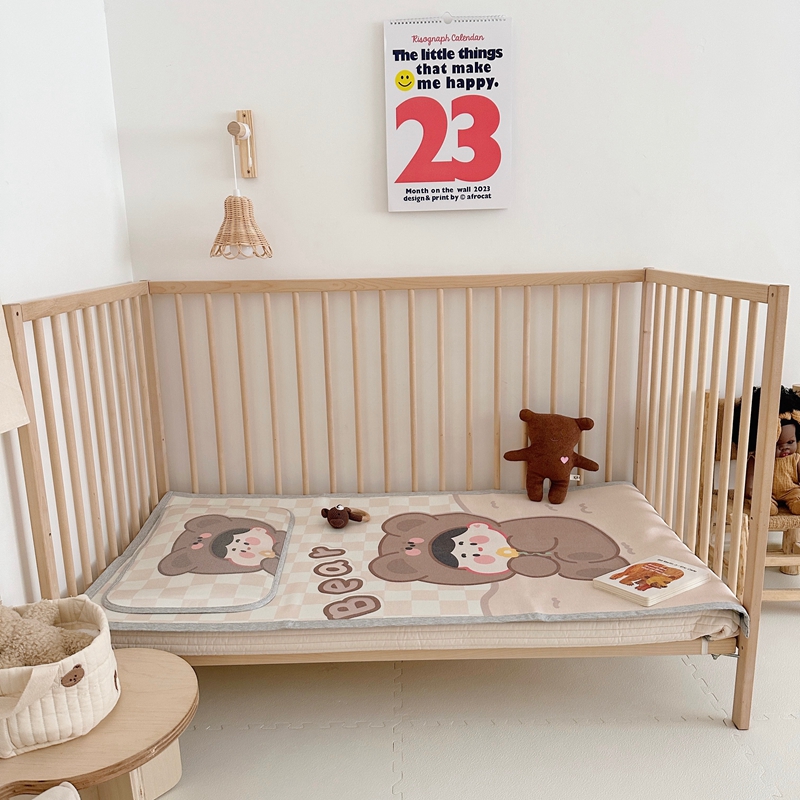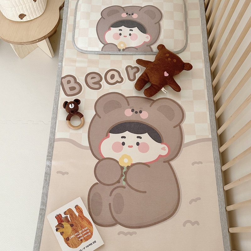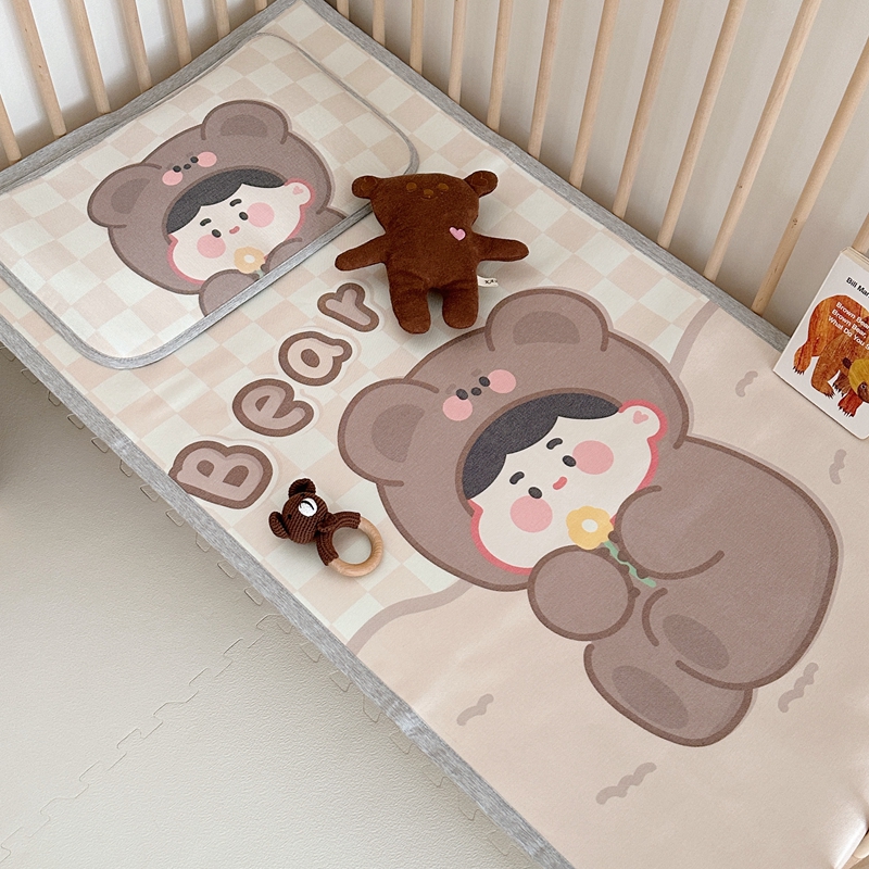 (总)橘滋 2025夏日新款高端A类原创设计婴儿童趣卡通数码印花冰丝席凉席-床席床笠,大眼熊仔,叠叠乐园,蝴蝶结兔兔,欢乐曲奇,木马小熊,太空冒险,熊猫胖达